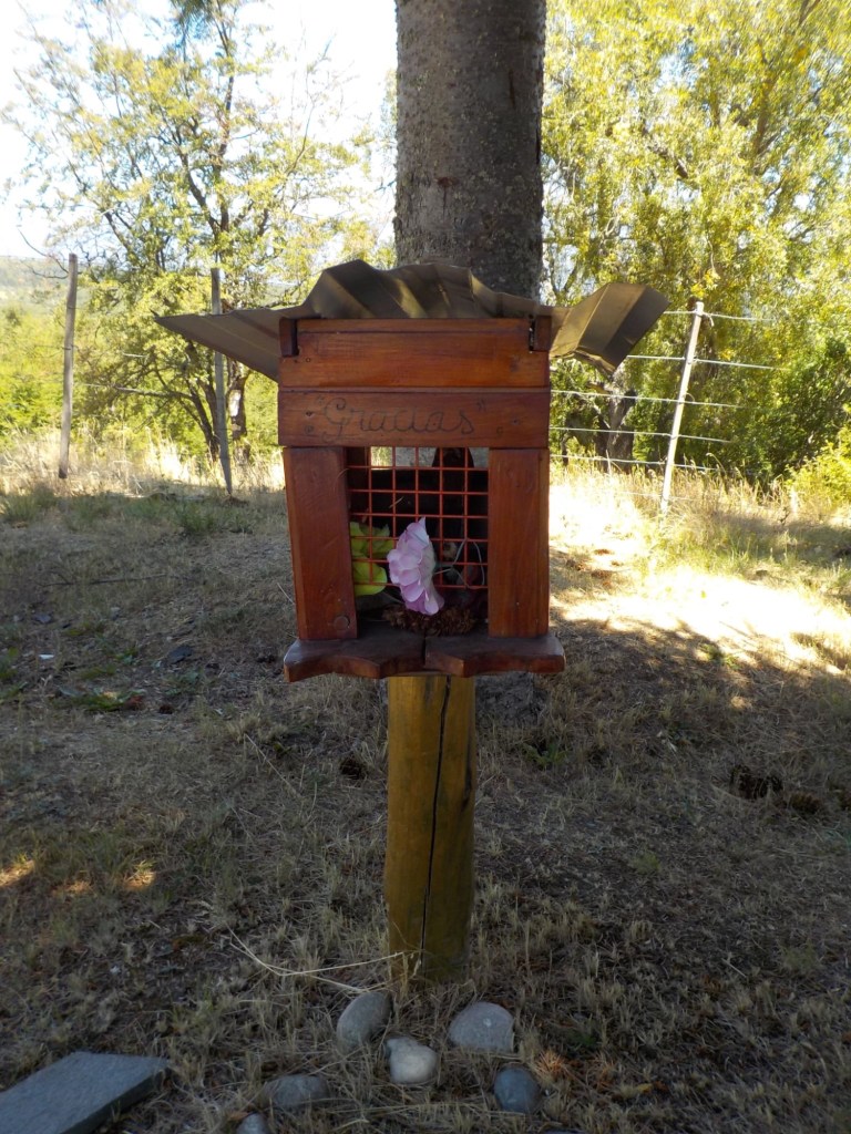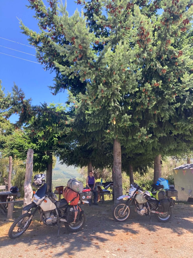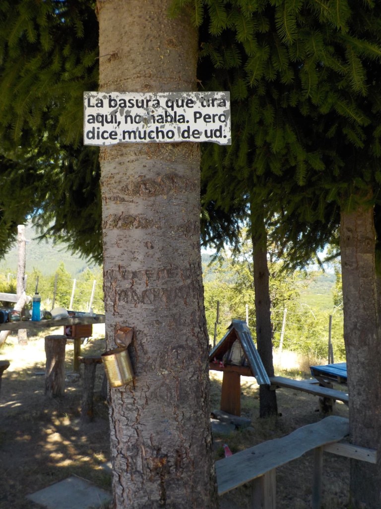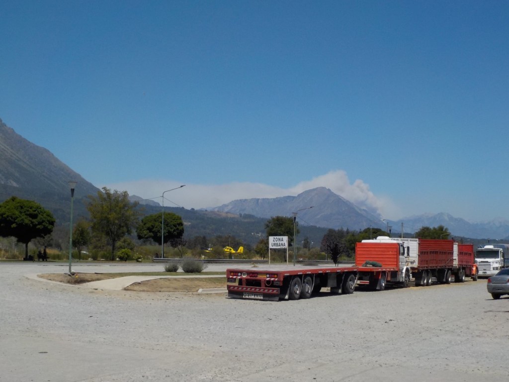 We started the today with a lovely breakfast at our hotel in Bariloche. I got some supplies from a local supermarket for lunch and for camping which we are planning in the next few days. Today was our longest ride so far covering 284 km and it was another very warm day reaching 27 but certainly felt a lot warmer in the sun. After riding past two more incredible lakes, we found the perfect spot for lunch – in the shade with some benches and an incredible view of mountains with snow capped peaks. A cat with blue eyes came and joined us for lunch. I placed our first sticker 😉👍 today at the lunch spot and we continued on to El Bolsón where we fuelled up and had the first good view of the incredible smoke wall from the burning wildfires – we saw waterballon carrying helicopters and planes landing and taking off to fight the fire which was of such a huge scale it is hard to grasp. We continued and were in hazy, eerie and smoky conditions riding for the remainder of the afternoon for more than 100 kms. It was very hot and we were happy to arrive in Esquel by 5:00pm. We payed extra for secure parking of the bikes and took pictures of the signs in front of the hotel indicating the distance to Sydney 😉 and to Ushuaia. The town has a very nice vibe and felt safe and we enjoyed a traditional slow cooked (asado ) grilled beef with salad and tried our first Don Pedro dessert. We have not yet decided whether to continue on Routa 40 South or head East on 26 until we reach the ocean on the East coast of Argentina. We aim to camp and will be remote for a few days if we go East.