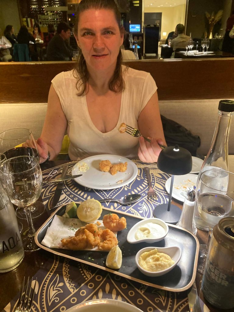 We had an amazing dinner at the hotel restaurant – still trying new Argentinian dishes – this time we had mollejas (golden gizzards) and pork belly and shrimp for starters.