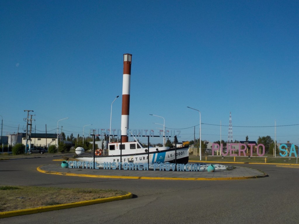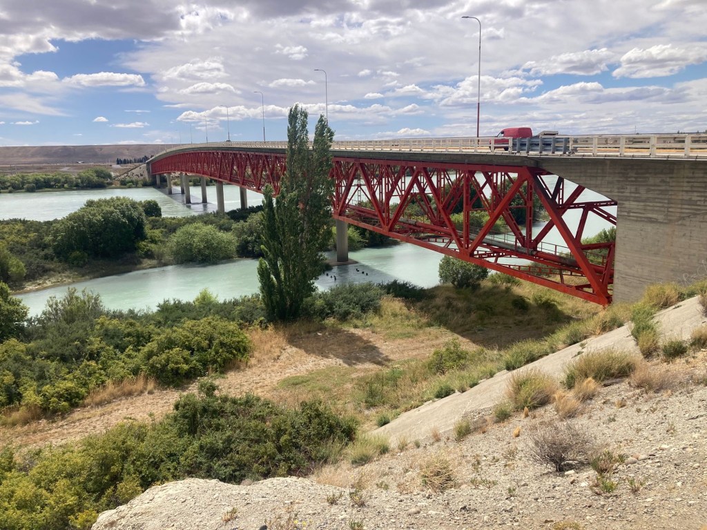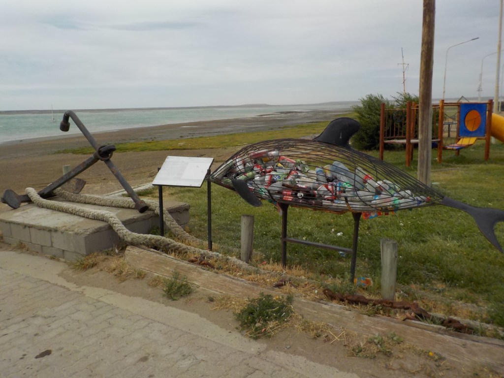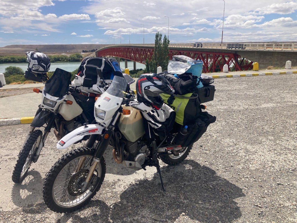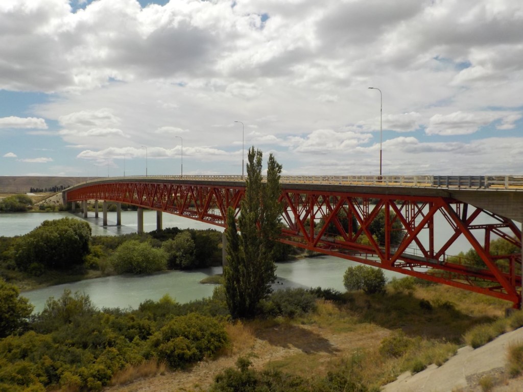 We had not covered our bikes because of the strong wind even in the courtyard where the bikes were parked. In the early morning hours we woke to rain which was not in the forecast. The wind was still incredibly strong and after the rain stopped it was cloudy and we decided to head to the water front and wait until lunch when the wind was supposed to reduce slightly. There was a plaza de immigration commemorating immigrants from many countries. We left shortly after midday with the wind still very strong and riding was difficult to say the least. I had a complete melt down not knowing how to manhandle the bike against the string cross wind as I tried to lean it and steer it into the wind which was exhausting and I could not have done that for the entire way. Andrew showed me how to keep the bike upright but lean the body into the wind sitting way off the bike on the windy side and that worked a lot better and required less strengths. We had put extra layers on after the very cold previous evening but it warmed up quickly and temperature rose to 26 degrees. There are very few spots to stop anywhere along the road and the shoulder is very lose and deep sand or gravel and cambered making it hard to pull off the road – we eventually found a nice spot on Isla Pavon overlooking Rio Santa Cruz only 24 km before Puerti Santa Cruz where we stopped for a snack and took our rain jackets off.