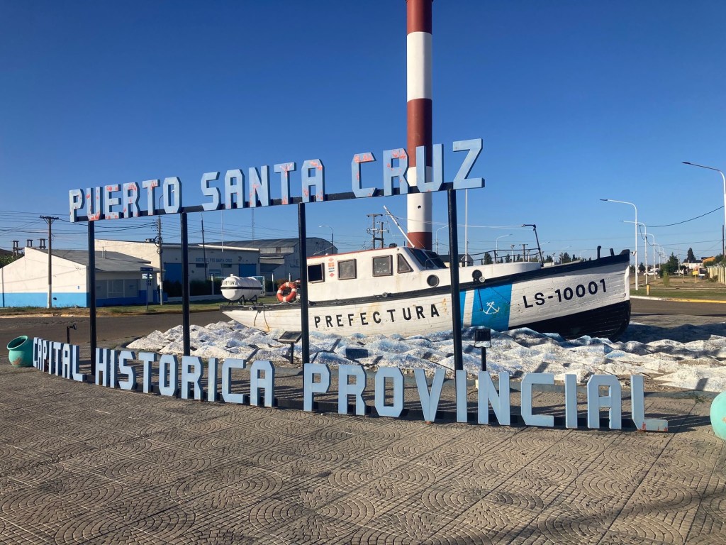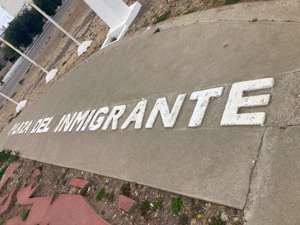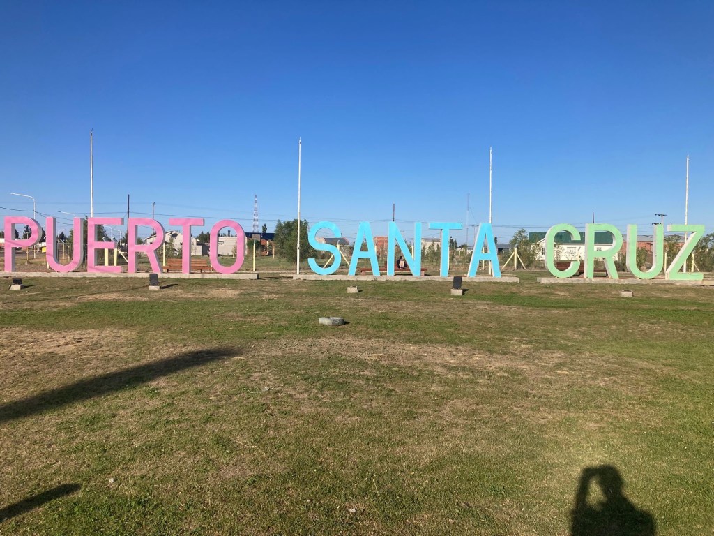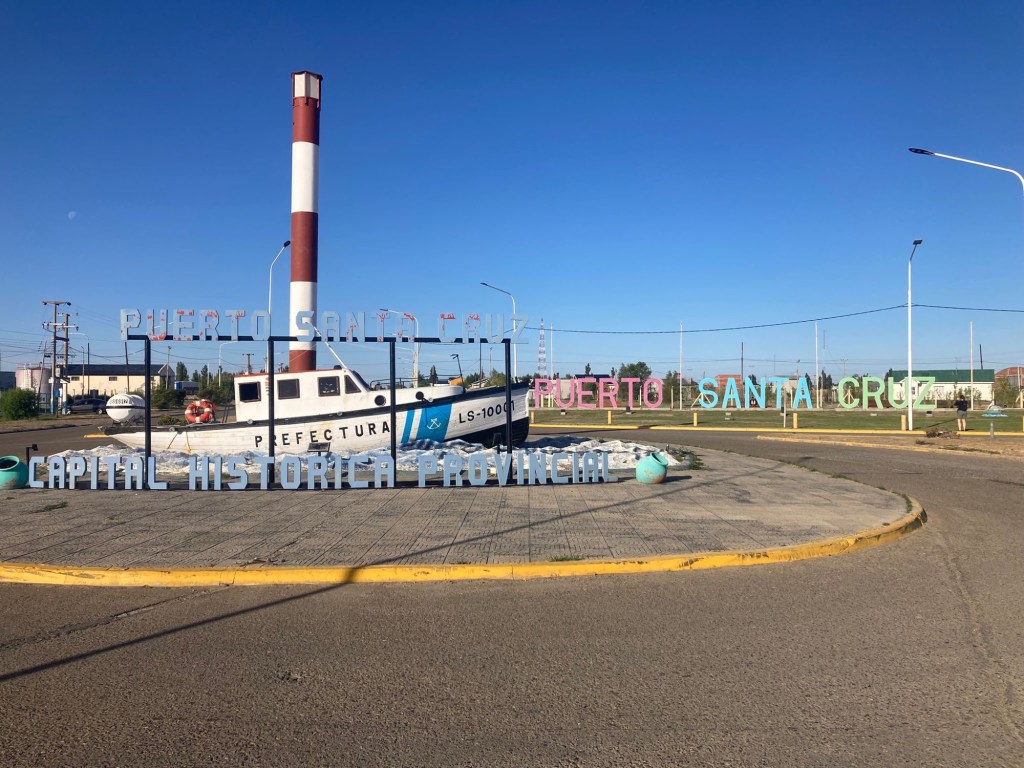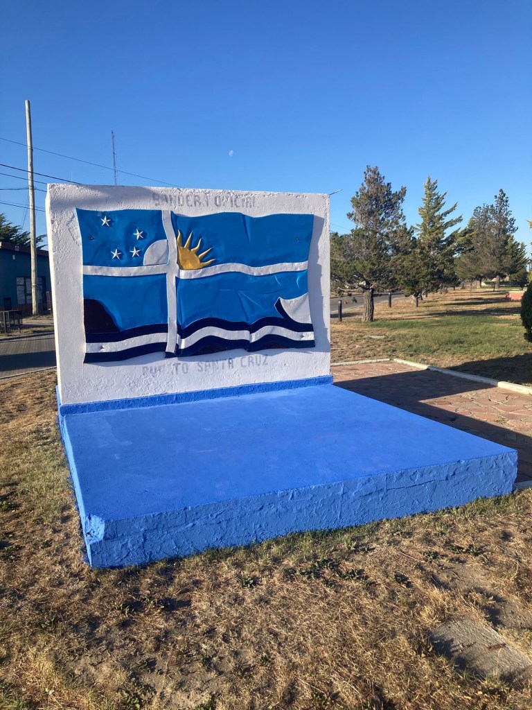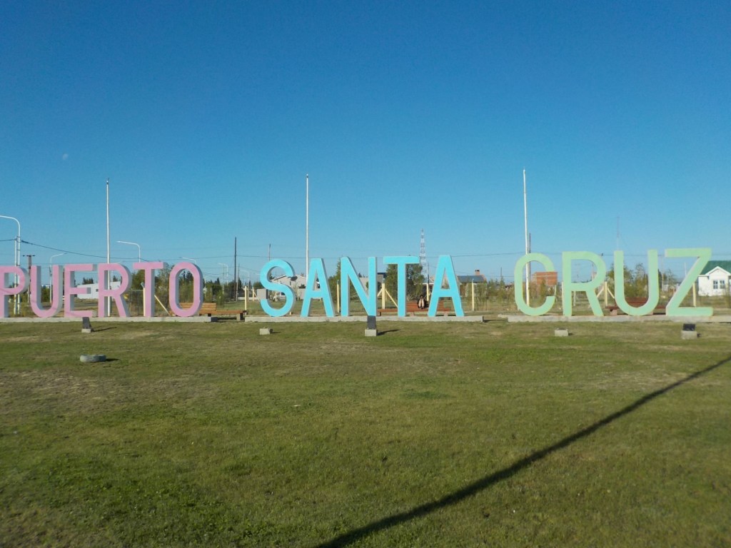 We had not covered our bikes because of the strong wind even in the courtyard where the bikes were parked. In the early morning hours we woke to rain which was not in the forecast. The wind was still incredibly strong and after the rain stopped it was cloudy and we decided to head to the water front and wait until lunch when the wind was supposed to reduce slightly. There was a plaza de immigration commemorating immigrants from many countries. We left shortly after midday with the wind still very strong and riding was difficult to say the least. I had a complete melt down not knowing how to manhandle the bike against the string cross wind as I tried to lean it and steer it into the wind which was exhausting and I could not have done that for the entire way. Andrew showed me how to keep the bike upright but lean the body into the wind sitting way off the bike on the windy side and that worked a lot better and required less strengths. We had put extra layers on after the very cold previous evening but it warmed up quickly and temperature rose to 26 degrees. There are very few spots to stop anywhere along the road and the shoulder is very lose and deep sand or gravel and cambered making it hard to pull off the road – we eventually found a nice spot on Isla Pavon overlooking Rio Santa Cruz only 24 km before Puerti Santa Cruz where we stopped for a snack and took our rain jackets off.