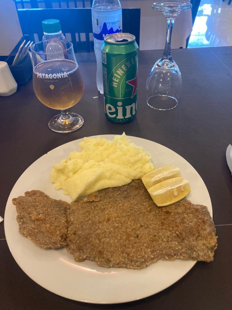 We rode into town in the afternoon- all towns have nice monuments and the town name displayed in large colourful letters. We fuelled up and have a video of the fuelling – each station had attendants who do the filling for you and most places you pay at the pump with credit card. This one I had to go inside to pay by card. We also realised that Argentina’s petrol has 12% ethanol added to all fuel – we are filling up with 95. We arrived by 4pm at the very nice hotel and after being shown everything, we were offered to use the laundry to wash and dry our clothes. We walked into town to a small supermercado and stocked up on a few items before heading back to the hotel for dinner. Andrew ate his first Schnitzel and I had grilled sea bass which was amazingly tender and nice. The staff had put our washing in the dryer for us and after dinner when we went to get it they had already folded it all for us – we seem to be the only guests here.