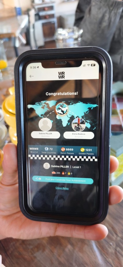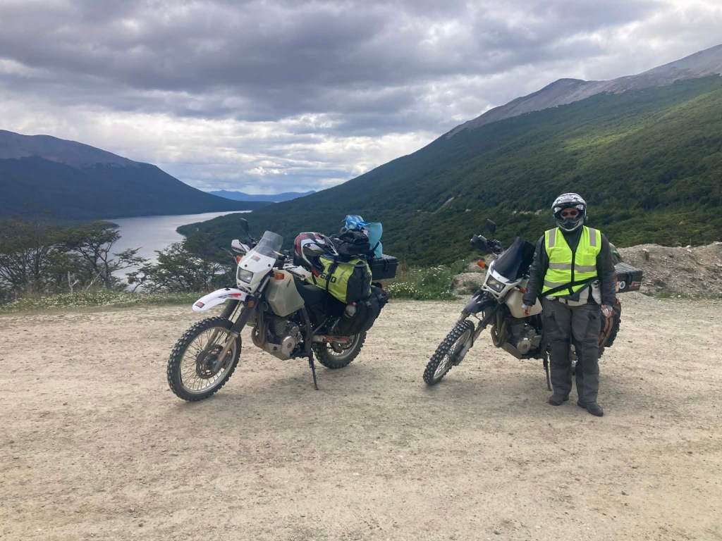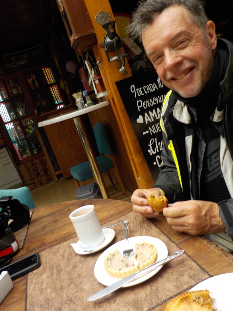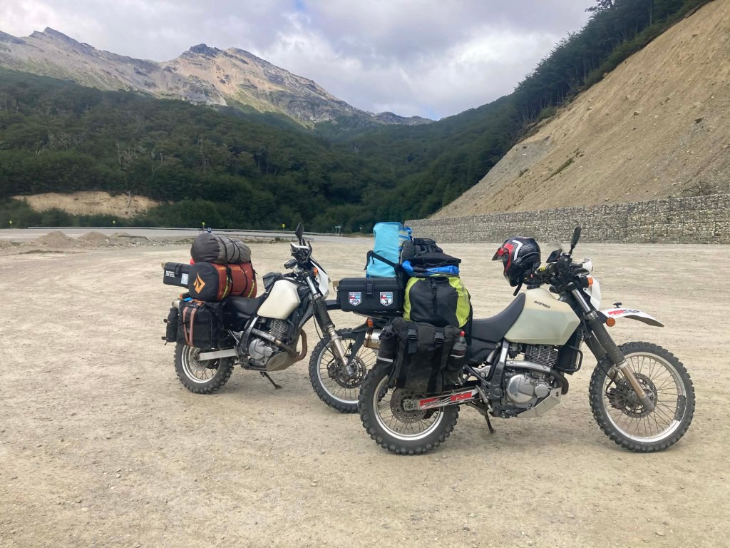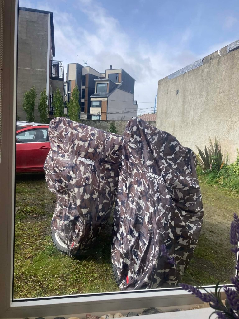 We had a wonderful morning in our dome cabin and our host made lovely breakfast and we listened to Luis Alberto Spinetta who is considered the founder of Argentine rock and he was a poet and songwriter and his birthday January 23 is celebrated as the National Musicisn’s day. While we were at breakfast Elena and her partner (whom we met on the ferry from Punta Arenas to Povenir) rode past on their way back from Ushuaia and stopped by so we could do our baton exchange on the WRWR app and Elena also did a short interview for her fb site. It is very exciting to have now completed the first baton exchange for the year long world relay of women riders – Australia is on top of the leader board with the number of baton exchanges by the way 😉🇦🇺🏍. Our host was so nice and made Elena and her partner coffee as they were cold and he did not charge us any extra for it 🙏