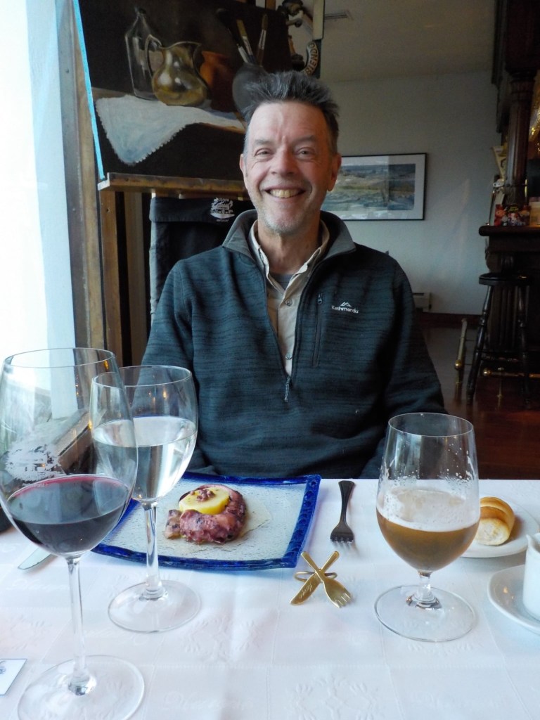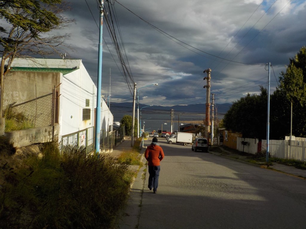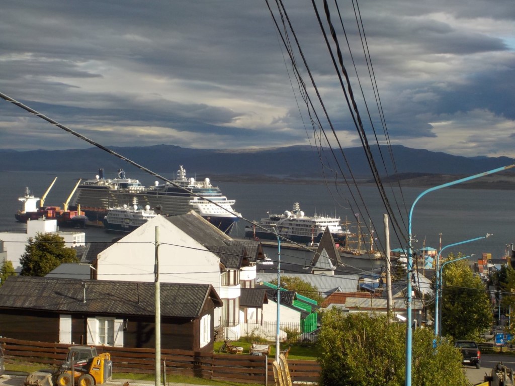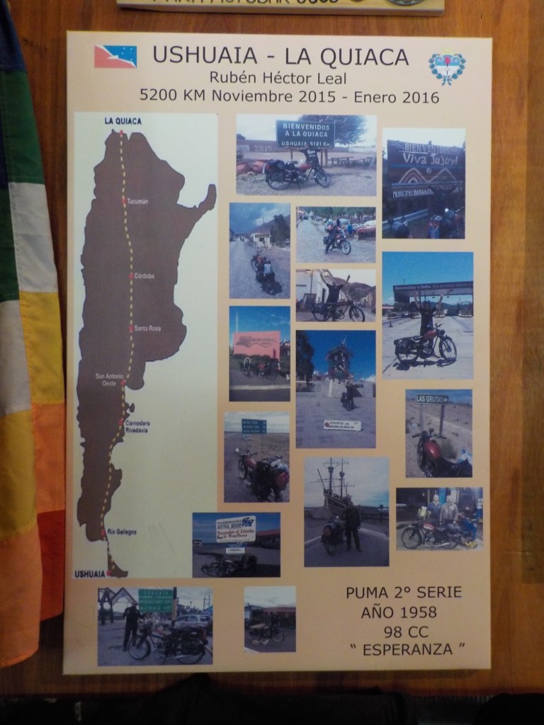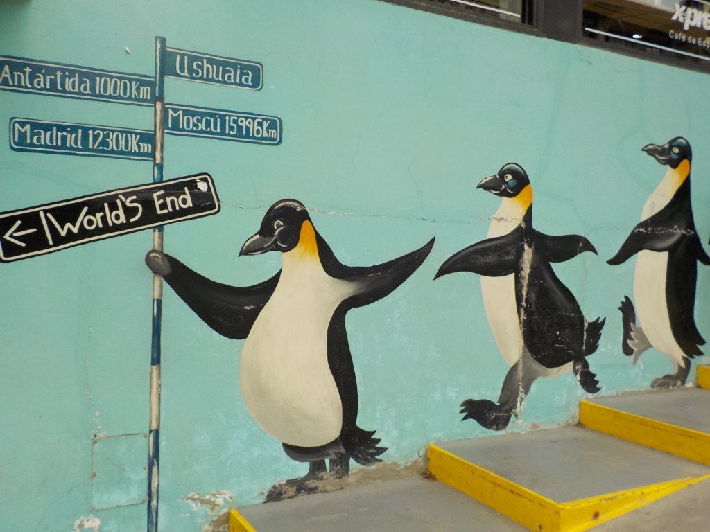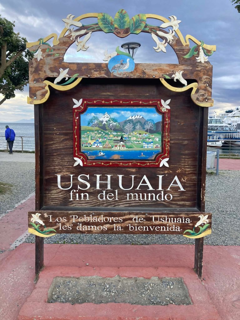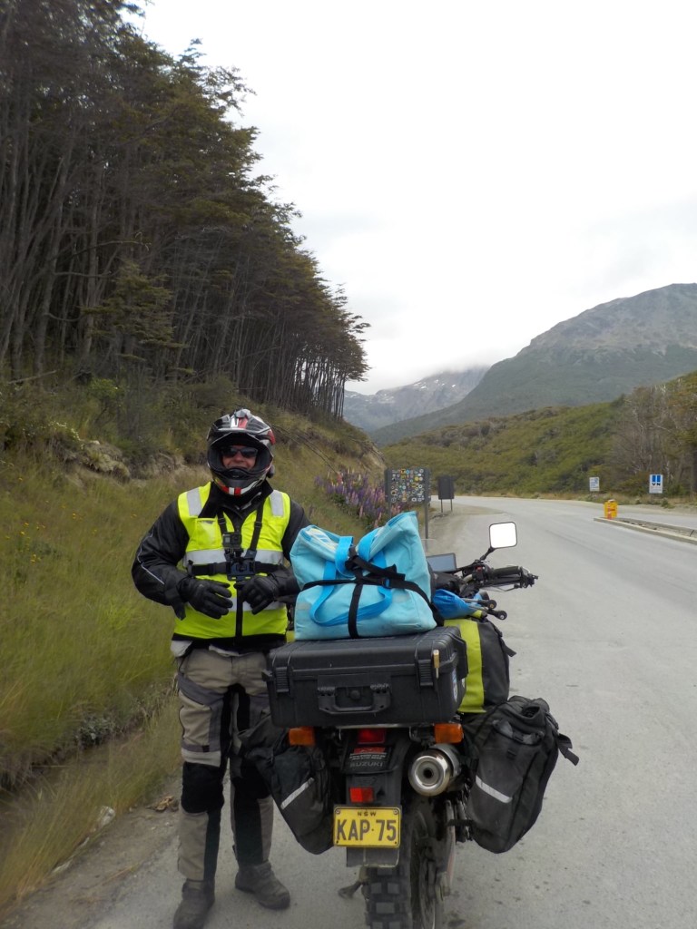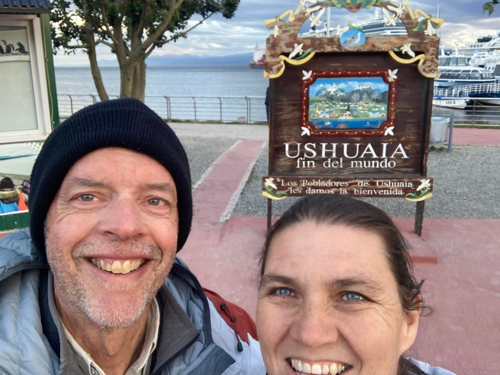 The final section of the road to Ushuaia is lined by peat bogs and red grasses and waterways with towering snow capped mountains in every direction you look – even for an Austrian an impressive view. We arrived at the iconic Ushuaia town entrance in light drizzling rain and the signs that everyone takes a picture with are being renovated 😉 but we still got our obligatory pictures and I did a little dance and we then found our bed and breakfast Isla Bella and negotiated to stay an extra two nights until Sunday – the bikes are parked in a courtyard off the street and the room is small but has a private bathroom and will be perfect for the next 4 days to recover, reorganise and get ready for the next section of our trip.