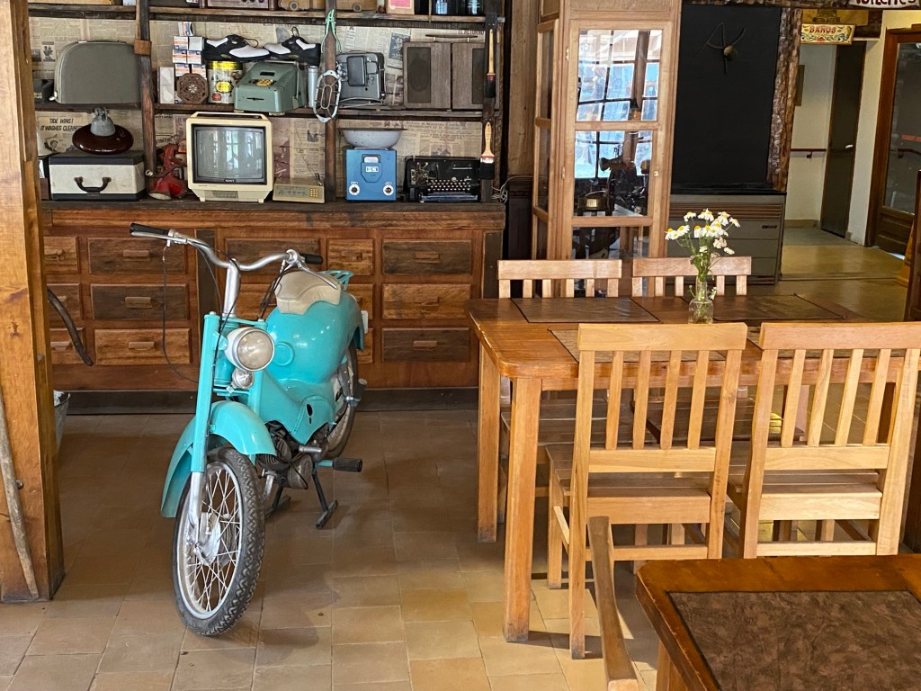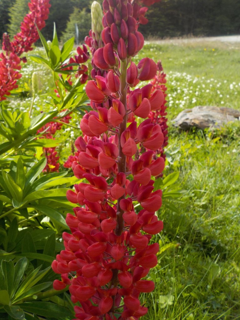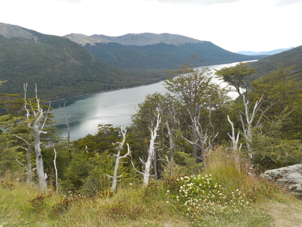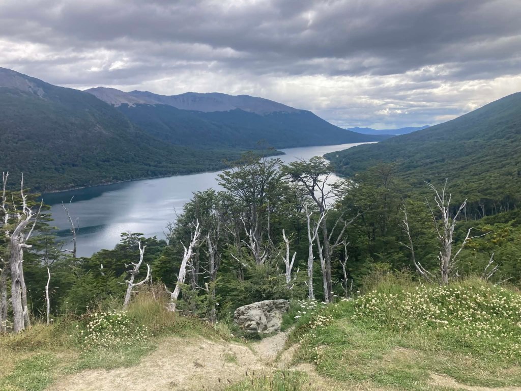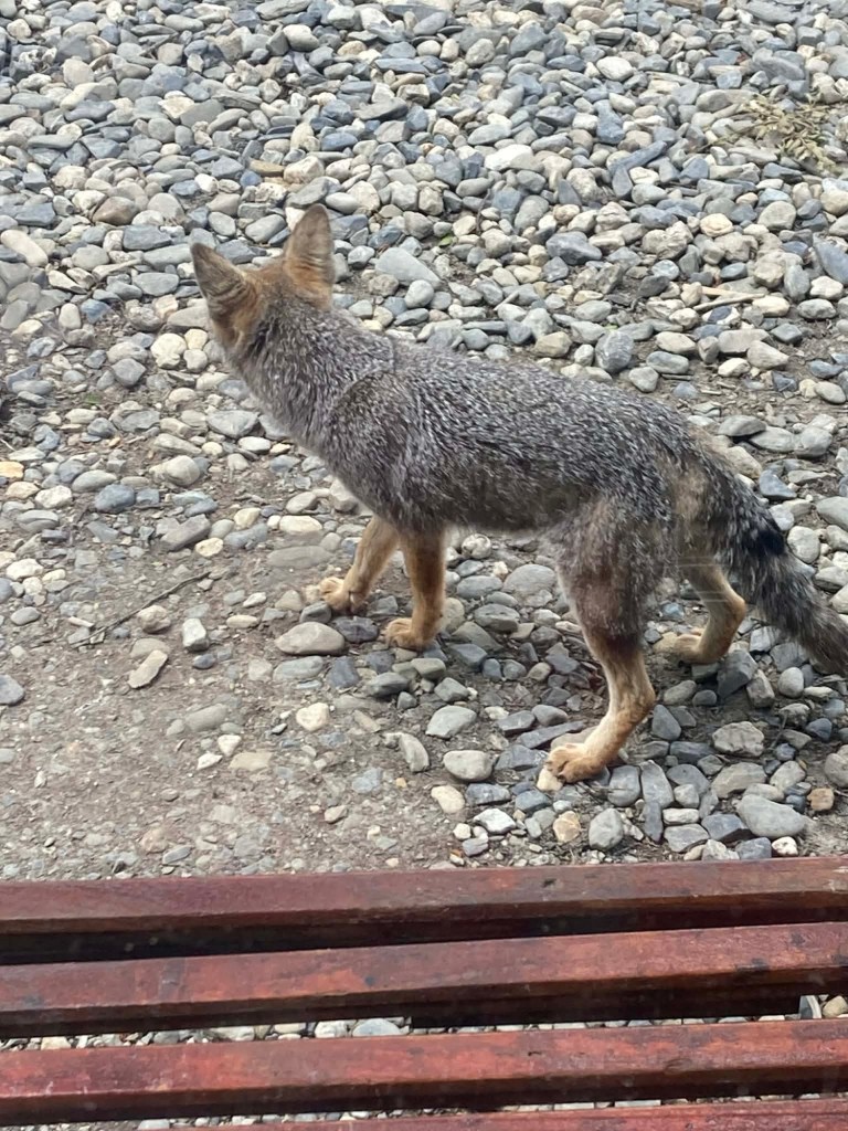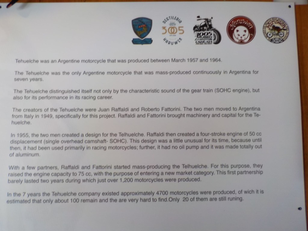 After packing the bikes and putting most of the warm layers of clothing we have with us on, we headed off riding along the entire lake Fagnano and took pictures at a look out where we also left one of our stickers on the sign. We continued on beautiful winding roads over the Garribaldi pass and stopped at the Haruwen motorcycle museum 3005 and moto-café where we had homemade empanadas and cake and a hot chocolate. Lupine flowers in 4 different colours (pink, purple, dark red, and yellow) are blooming everywhere as well as some dark blue corn flowers and we saw bumblebees and one South American gray fox (Lycalopex griseus) wandering around.