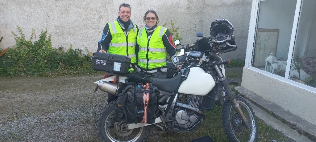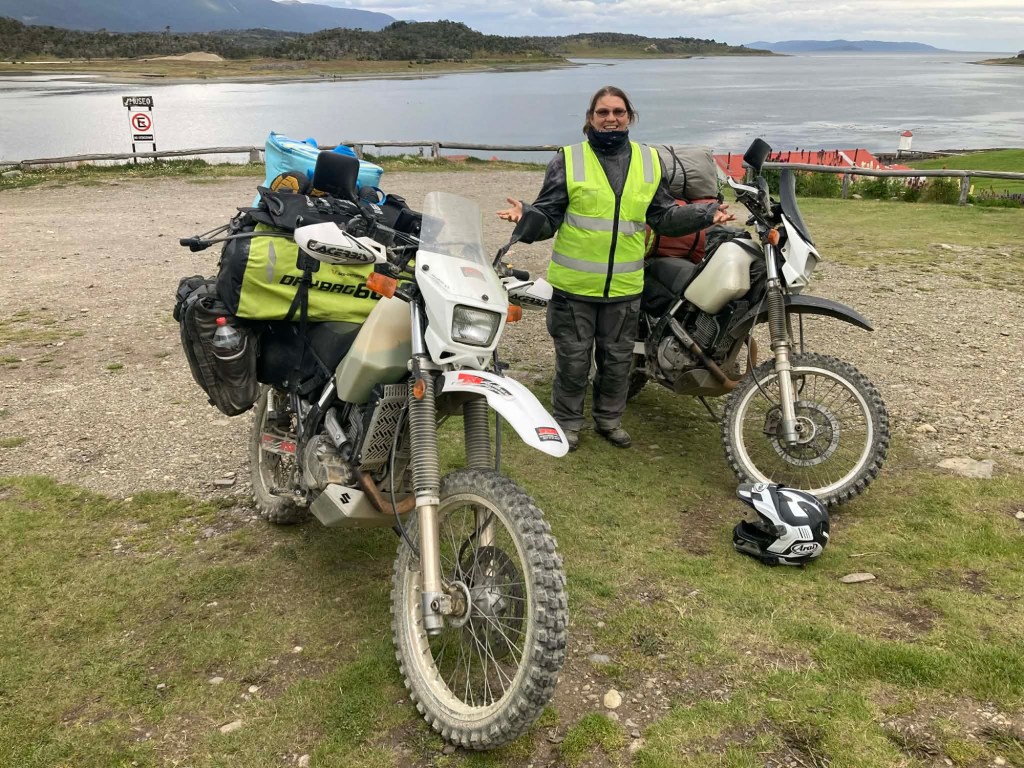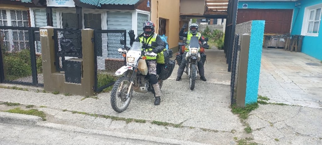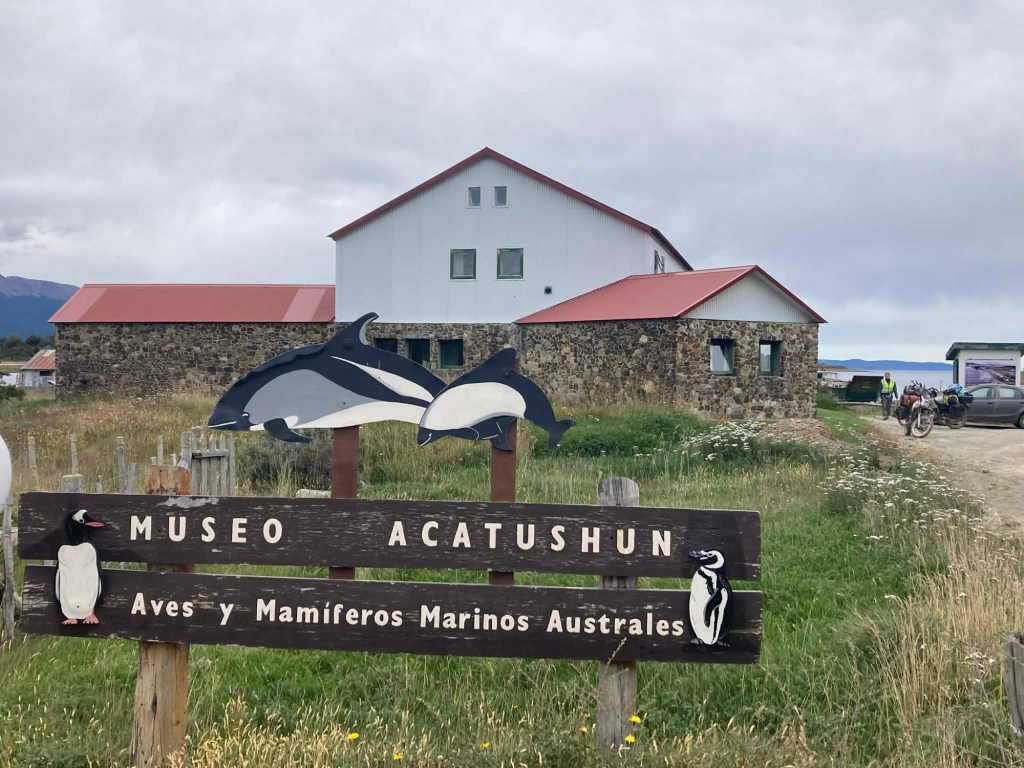 After a day of getting the bikes an oil change, a long walk through town to a Western Union bank that was open on a Saturday to get enough cash to pay the mechanic who did not take credit card and a trip to the mechanic named Gregorio’s house and workshop to get the leaking fuel tap of Andrew’s looked at and fixed 👏- Gregorio is a genius by the way and if you are ever stuck in Ushuaia needing your bike fixed, Gregorio is the man for the job. And he learned English from video games including league of legends 😂 which my son plays too 👍 And after taking some pictures with our host Miguel who turns out is a vintage car enthusiast and Andrew and Miguel bonded over that on the last day 😉 – so after all of that we finally said good bye to Ushuaia and to our lovely host Miguel and headed towards Estancia Harberton – it was a long dirt road to get there and it was very dusty with little wind and myself not feeling 100% having woken up with a very sore throat, I followed Andrew and when we arrived I was caked in dust from head to toe 😂 but what a location right in the Beagle channel. We were hungry and hoped for a late lunch but the next tour just started as we arrived so we opted to do the tour and then get food – 3 hours later 🥹 but the tour of the Estancia and the history about the Yámana people and Thomas Bridges was captivating and fascinating thanks to our amazing tour guide. And you won’t believe what was in one of the sheds – it is red and has 4 wheels – yup a red Ferguson tractor 🚜 😉👍and the tour guide showed us another old machine asking to help him what it could be – that was easy – it was an old washing machine and he was impressed that I knew that but I told him that every woman knows what a washing machine looks like 😂😉👍