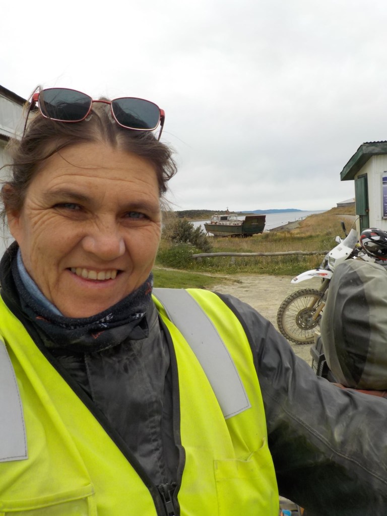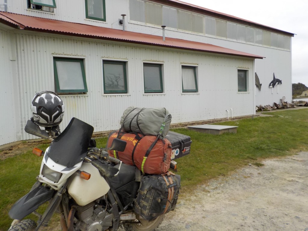 We had a dessert by 6:40pm and I was fading quickly and it was late in the day and we still needed to do 40km dirt and another 80km on the road to reach our destination in Tolhuin. We arrived after 9:00pm – I was cold and exhausted but the bikes were under a car port and we just made it inside when the rain started. We had some hot soup and went to bed- hoping that I would feel better in the morning and only having to ride 100km to Rio Grande the next day.