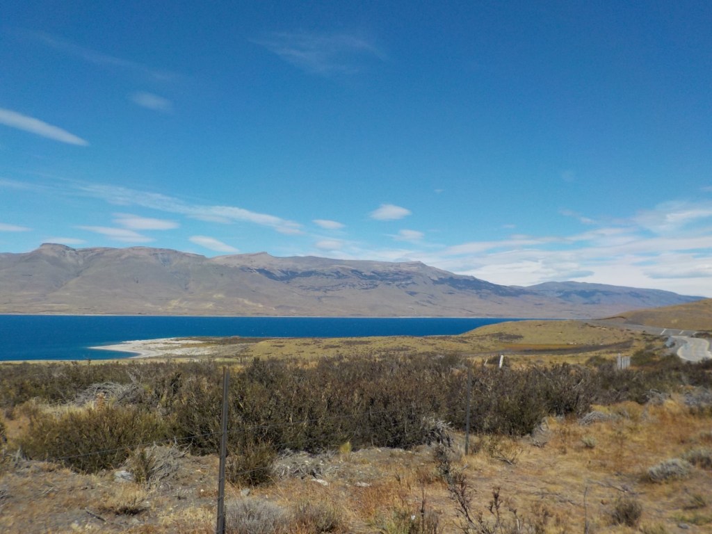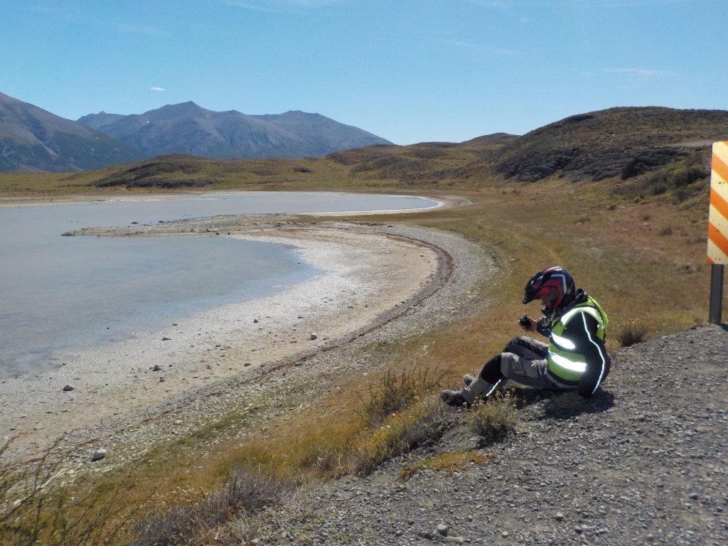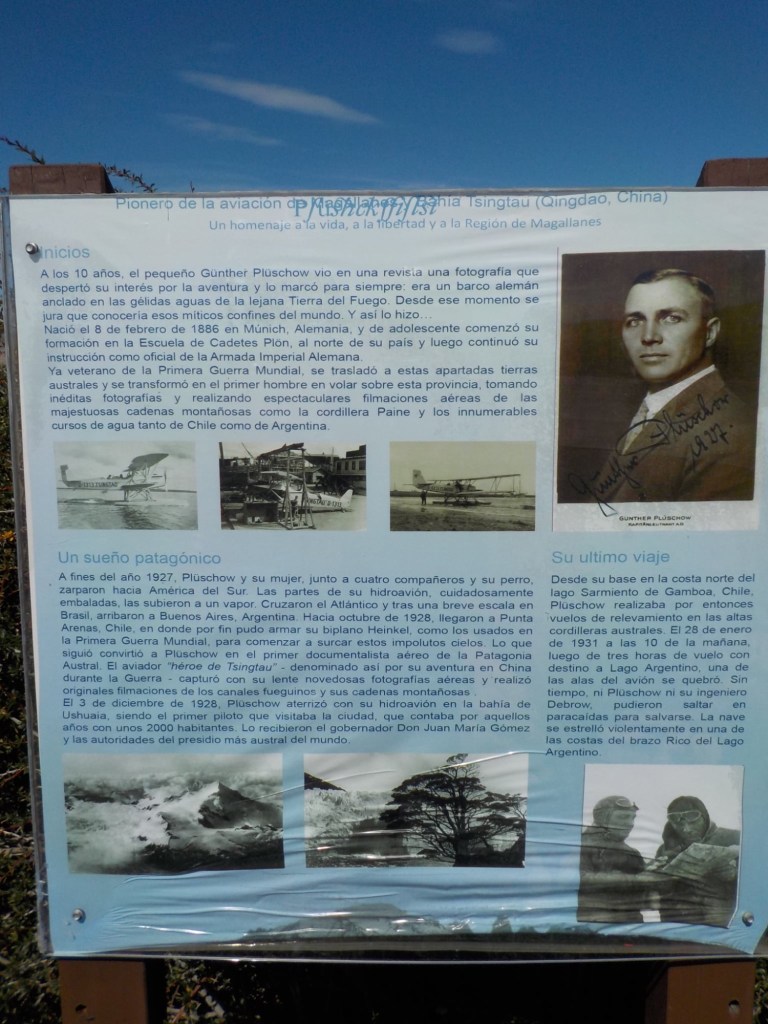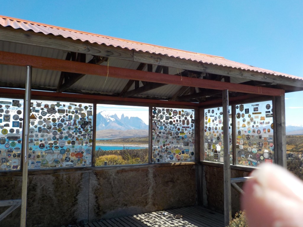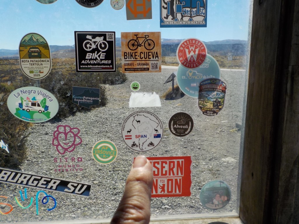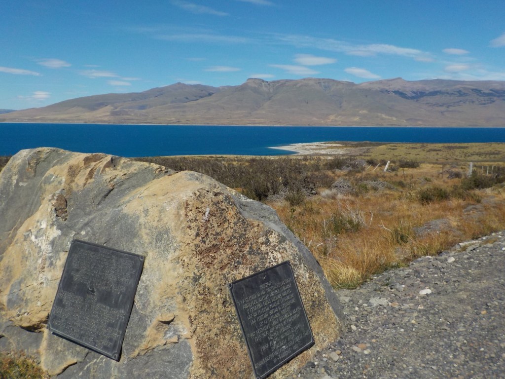 We continued on Ruta Y-150 and stopped at Laguna Amarga where there was a plaque for the Pioneers of aviation and then at Mirador del Lago Sarmiento where we had incredible views over the lake and I left another of my stickers there.