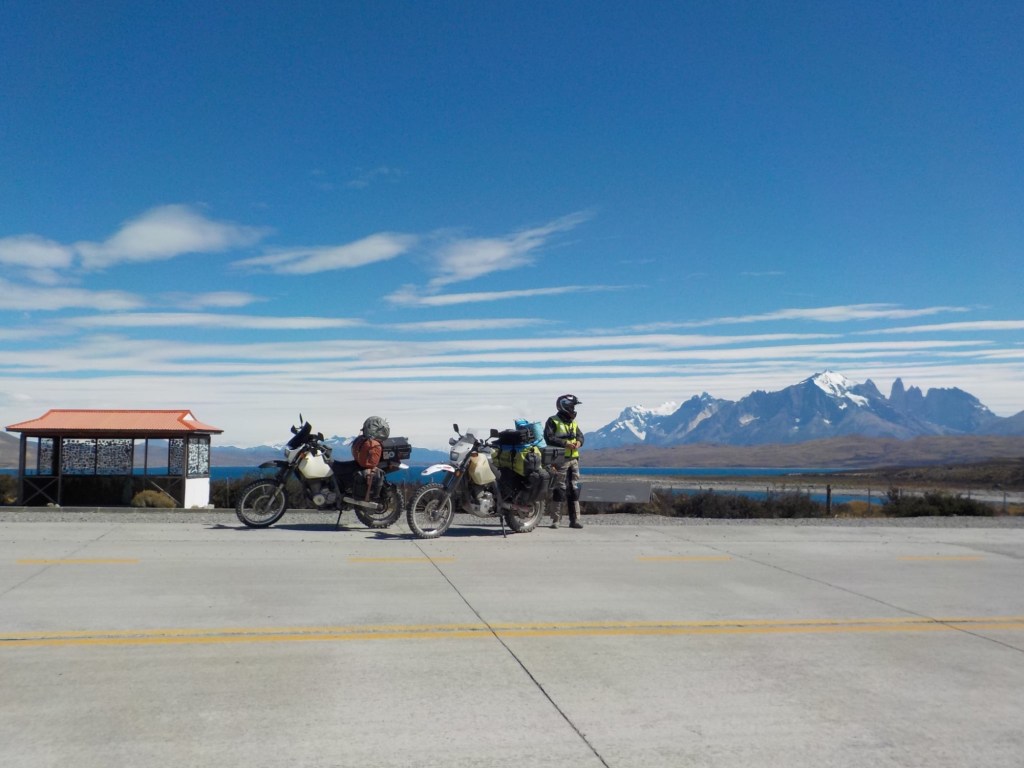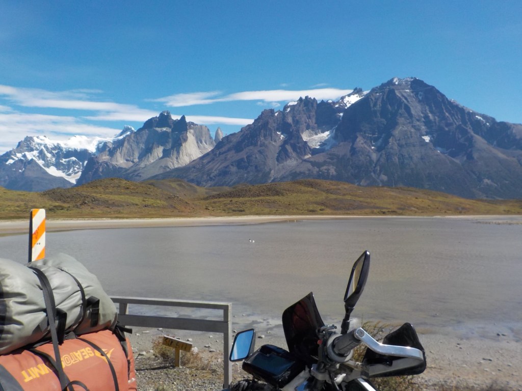 We crossed the border into Argentina at Cerro Castillo and continued into Rio Turbio, a coal mining town, where we had a cabana booked. As we arrived according to our maps it was not obvious that the entry to the apartment was in a building labelled Pilates studio – we were parked on a busy road with dogs everywhere and my phone with the details and the code to enter was about to run out of charge 😞 – as Andrew tried to type in the code that I told him through the intercom from the other side of the road it must not have quite been entered correctly – it was hard to see the keypad in the setting sunlight – so the alarm went on and it said it was now locked – meanwhile my phone was dead and it had been a long day and it was freezing cold and I was not happy 😩 – after getting enough charge into my phone to message the host on what’sapp who told us to wait a few minutes and try again, we eventually managed to gain entry – we also asked about where we could park the bikes and he offered we could park them at a neighbour but by the time we had received that message we had managed to ride both bikes onto the footpath and park them right in front of the apartment stairs.
