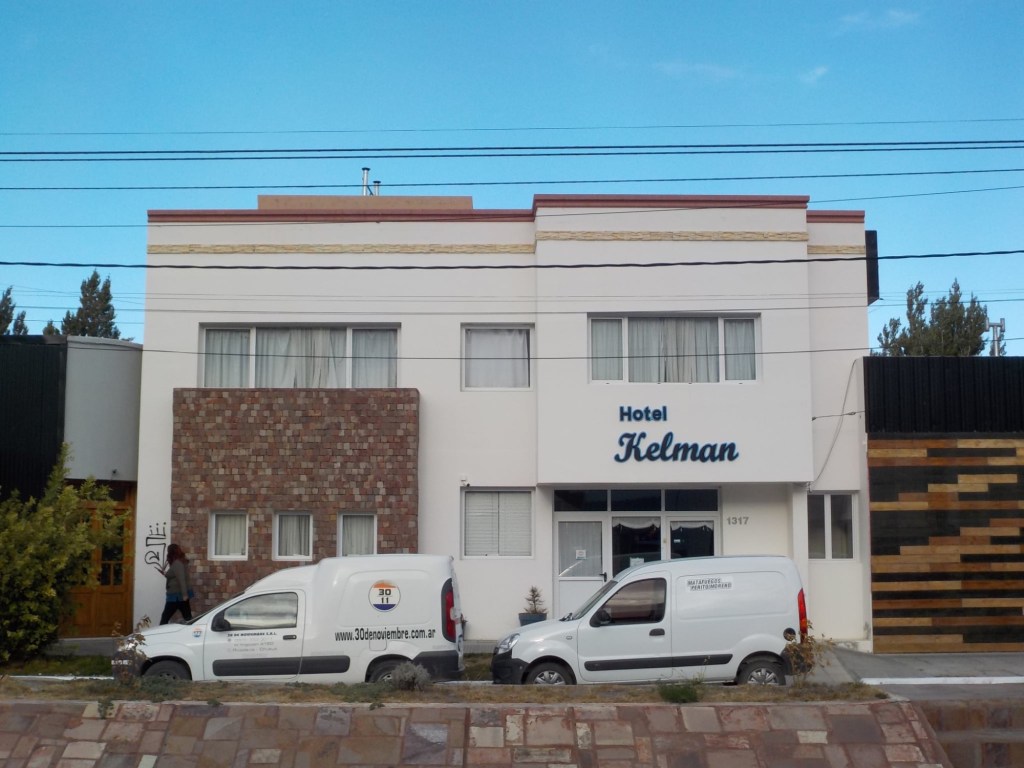 We rode into Perito Moreno and my phone, which we use for navigation, had no charge left and we parked on the side of the road trying to charge it from the solar panel and the wind was so strong that everything blew off, the bikes almost blew over and I lost my cool – annoyed with myself that I did not charge the phone while we were at the petrol station chatting with other riders earlier and not being able to remember the hotel name or having sent it to Andrew whose phone always lasts the entire day without running out of charge. We were literally only two blocks away from the hotel I had booked on the same street. We parked in front of the hotel and before I went to check in, Andrewβs bike fell over and petrol poured out. He had to get all the luggage off before we could attempt to pick it up – I realised that the petrol was leaking from the fuel cap and tightened it which stopped the petrol leak – as we had the luggage off a guy came over from across the street to help us pick the bike up. We checked into the hotel and were directed to a gravel back yard to park the bikes. The room was small and the only window in the room was into a storage room with an exercise bike. The other peculiarity about the room was that the water in the bathroom sink would leak out at the floor – so all the water used when turning on the tap, accumulated on the bathroom floor – strange way to encourage saving water π.