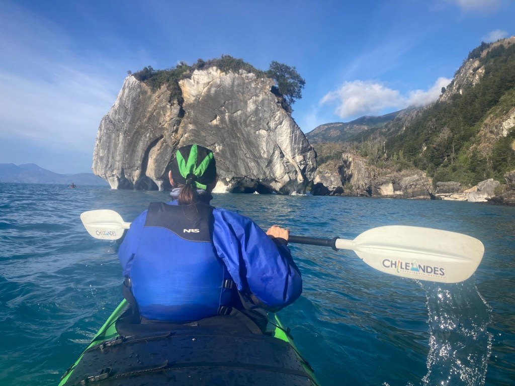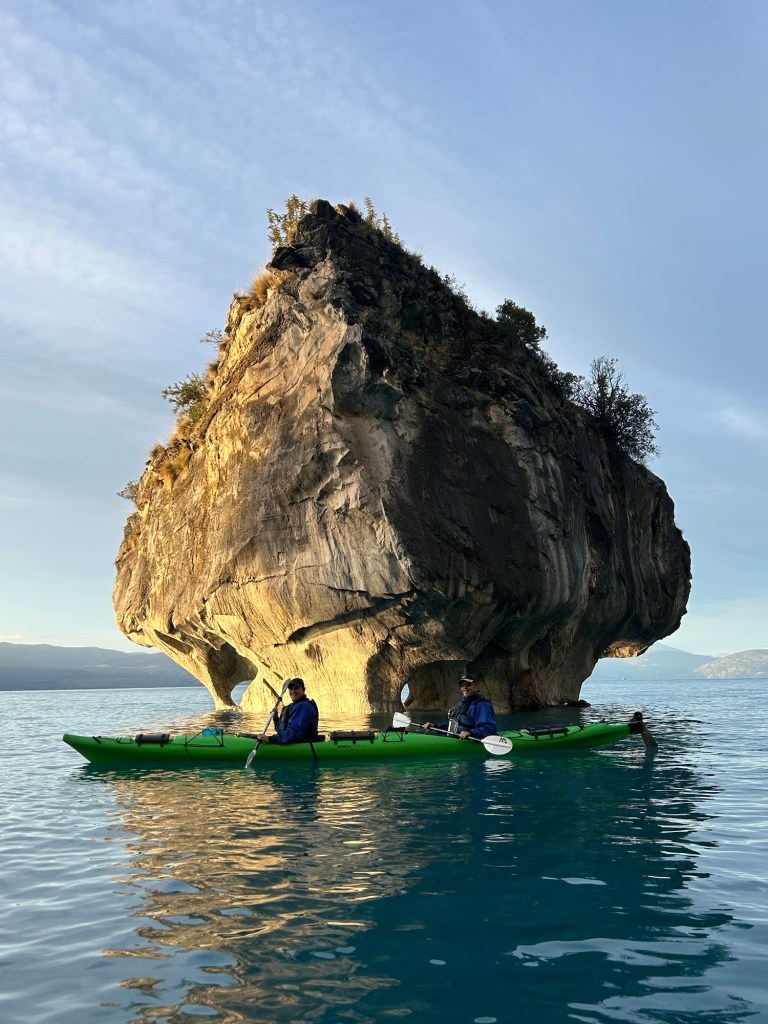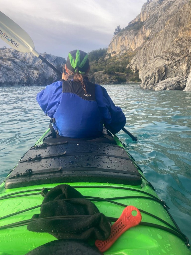 We had a very early start in the dark at 5:30am (just as we had run out of wood for the stove) to meet for a 5 hour kayaking tour at 6:55am. For our “day off”, I had booked this kayaking tour to see the iconic marble caves, the marble chapel and the marble cathedral. The meeting point was just one block away from our cabana and our tour guide Matías was already waiting for us and let us know that we were the only ones on the tour 🤗
