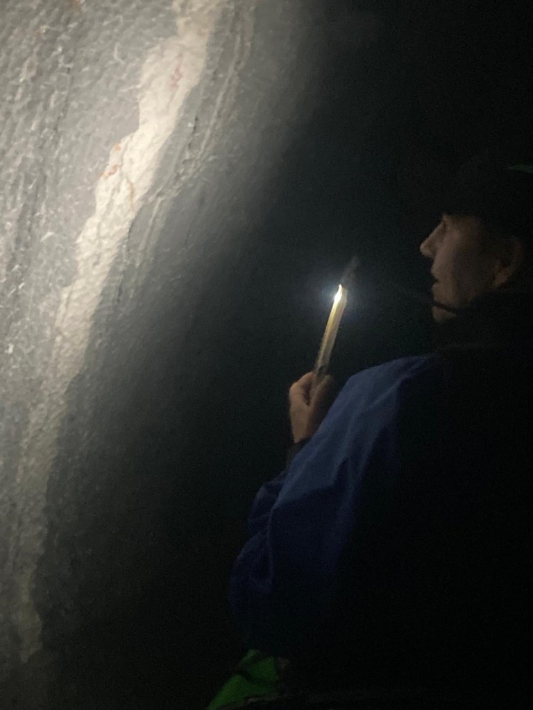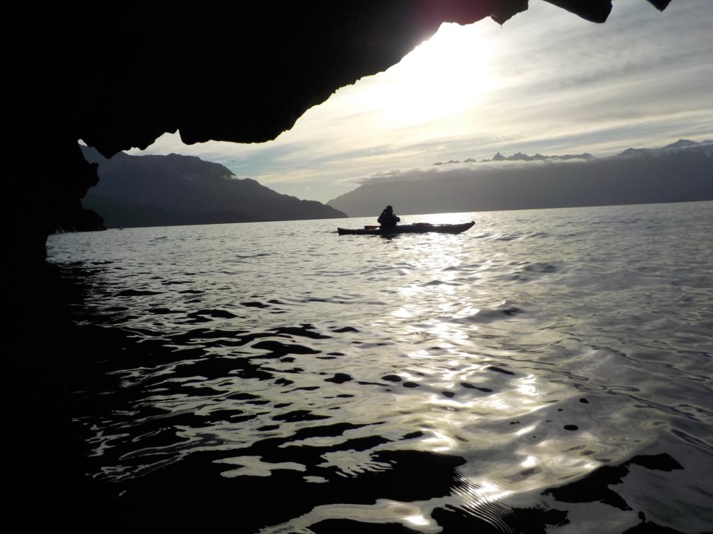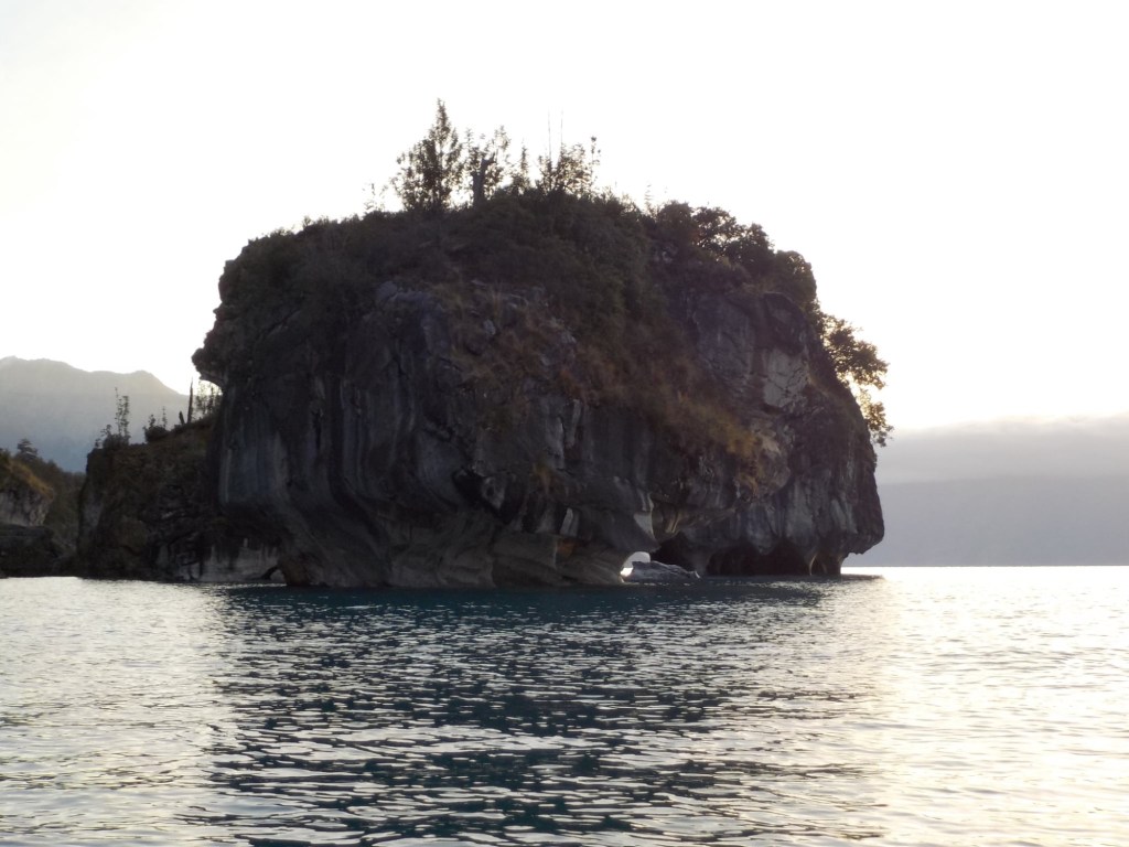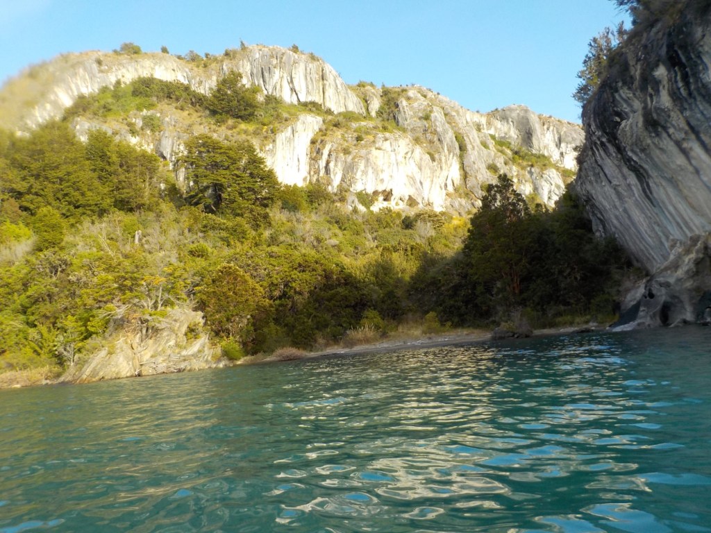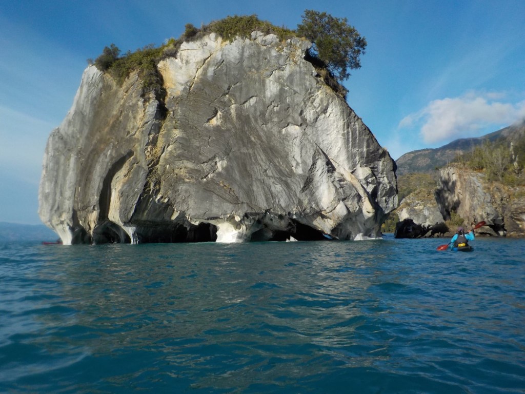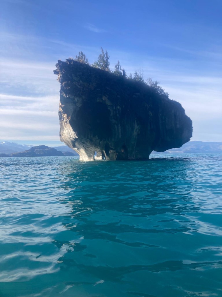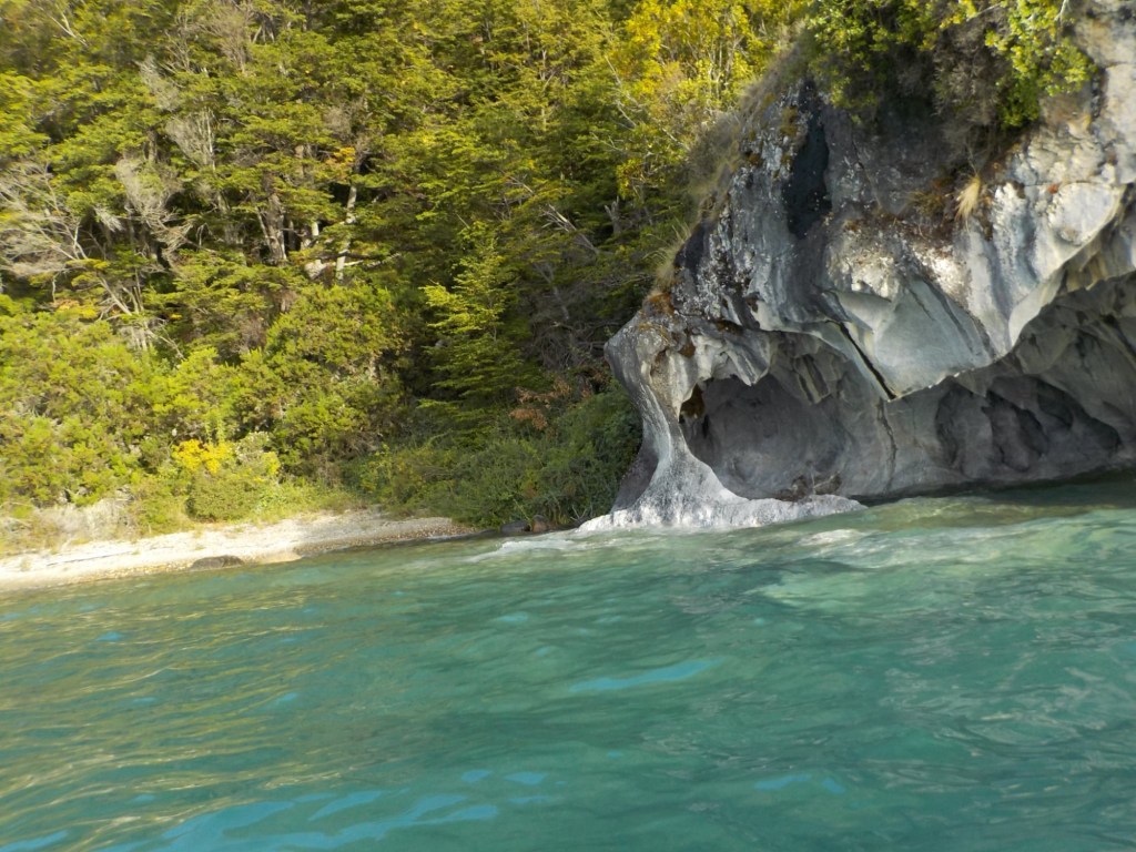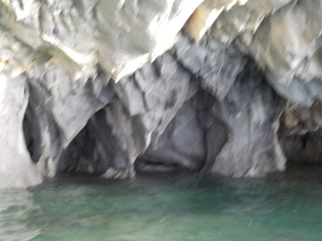 After taking a few pictures, we continued to the next structure called “cathedral” because it is a larger formation than the “chapel”. The shorter tours only make it to these two structures and our tour provider is the only one that offers the longer 5 hour tour to the caves which are further away. We paddled to the caves where we were allowed to paddle into dead end caves, through tunnels and get really close to the marble rock. There were stalactites hanging from the roof and it was amazing to be able to get that close and manoeuvre an almost 6 m long kayak through the narrow passages. As a bonus, Matías pointed out a condor nesting in the sheer cliff face high above the lake, some rock formations in the shape of various animals (a Labrador, a seal and an elephant) and a large white rock that had recently broken off and fallen into the lake . We paddled back and now several small tour boats were at the cathedral and chapel as well as groups of other kayakers and we were glad to have been there early to gave it all to ourselves. We marvelled over the amazing marble structures one more time before heading back to shore. It was such a great experience – yet another highlight of our trip and Matías had so many stories and gave us some great recommendations for good places to eat in town. Both of our legs felt like jelly and we had to get our land legs back when we got out of the kayak 😂