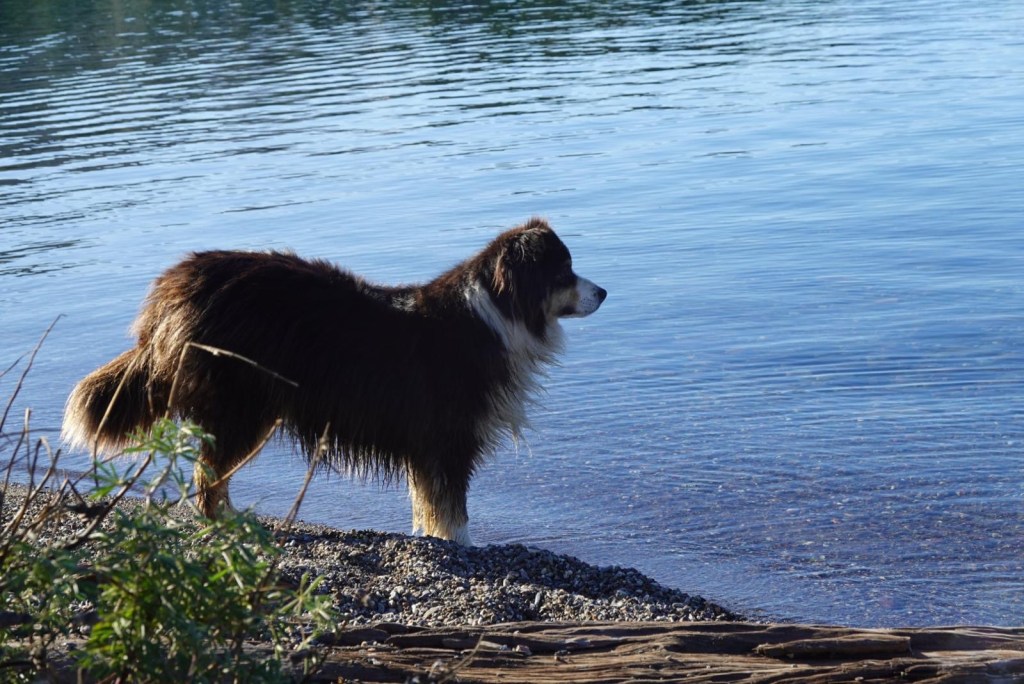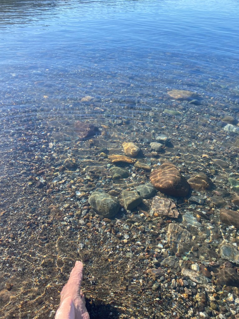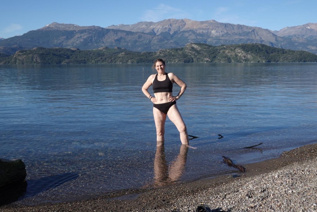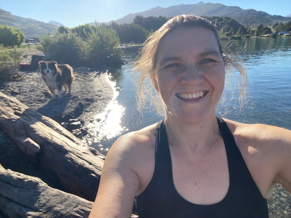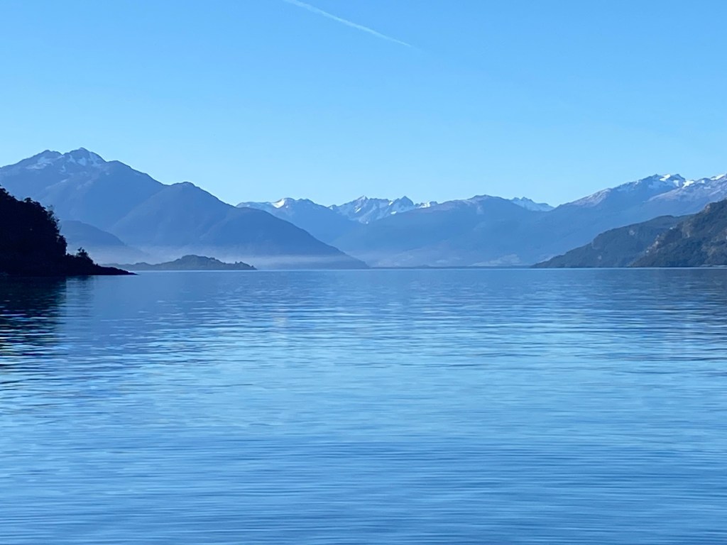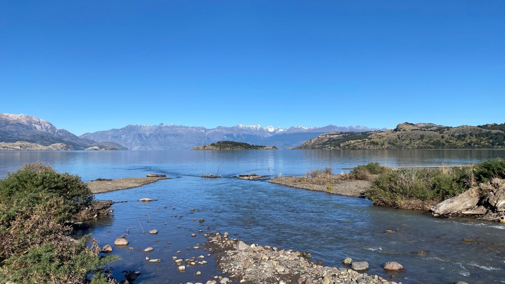 We had a rest in our Cabana before heading into town for lunch at one of the places Matías had recommended. We then shopped for some groceries and fruit for our next camping stay. The day was so lovely warm and sunny and totally wind still that we went to the lake shore and sat by the water enjoying the views of the surrounding snow and glacier covered mountains. I had to take most of my clothes off and at least get my legs wet 😉😂 in the water and a dog came over to see what was going on.