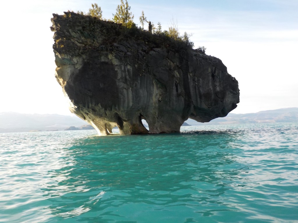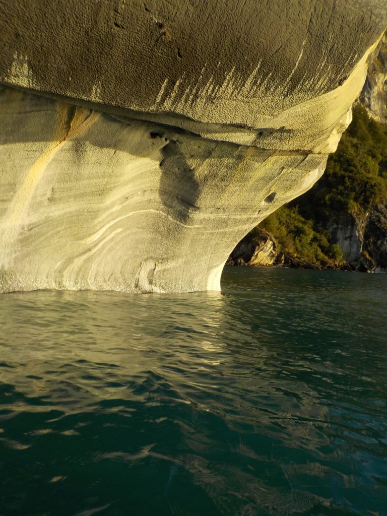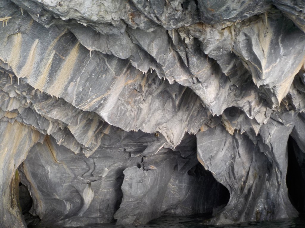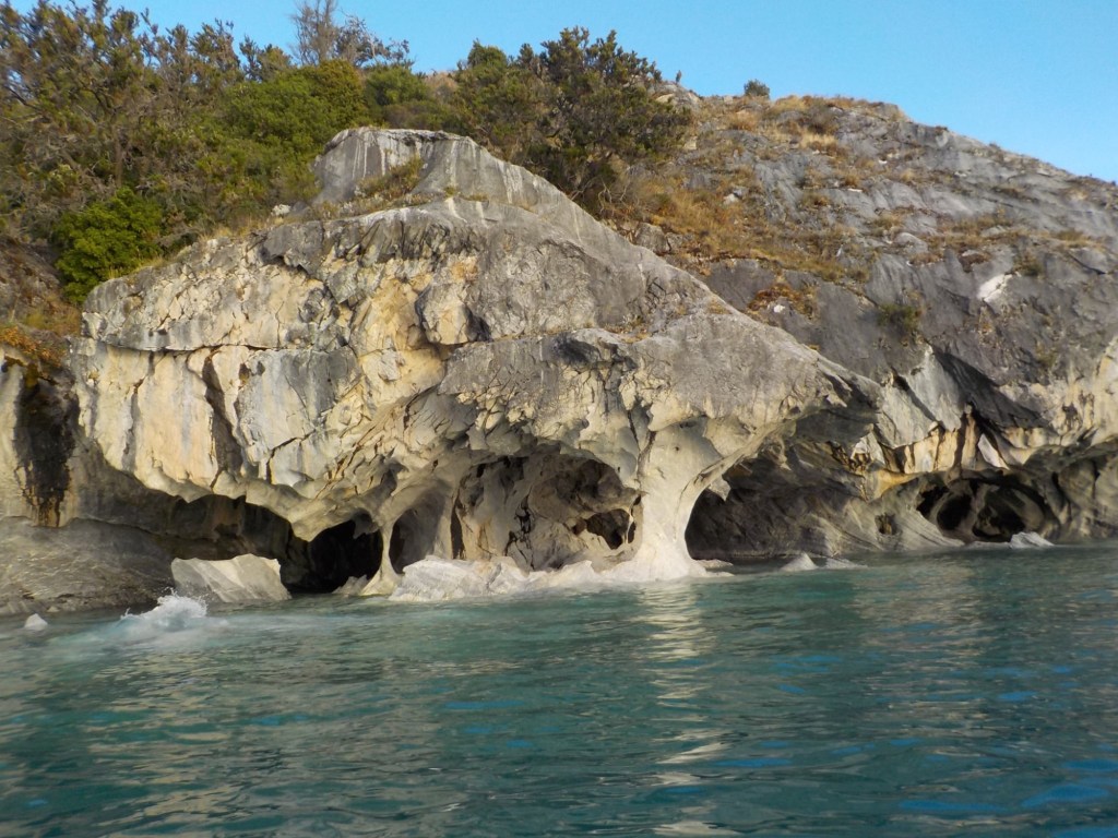 The marble formations and caves have been formed over more than 6000 years by the glacial water, waves and wind. The carbon dioxide in the mineral-rich waters of lake General Carrera over the years has dissolved the mostly calcium carbonate marble to form the amazing structures and the blue colours are reflections of the colours of the lake on the white walls.