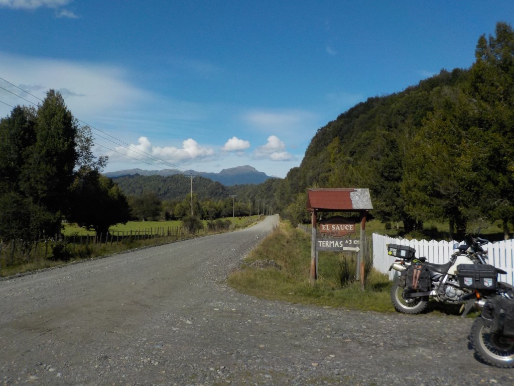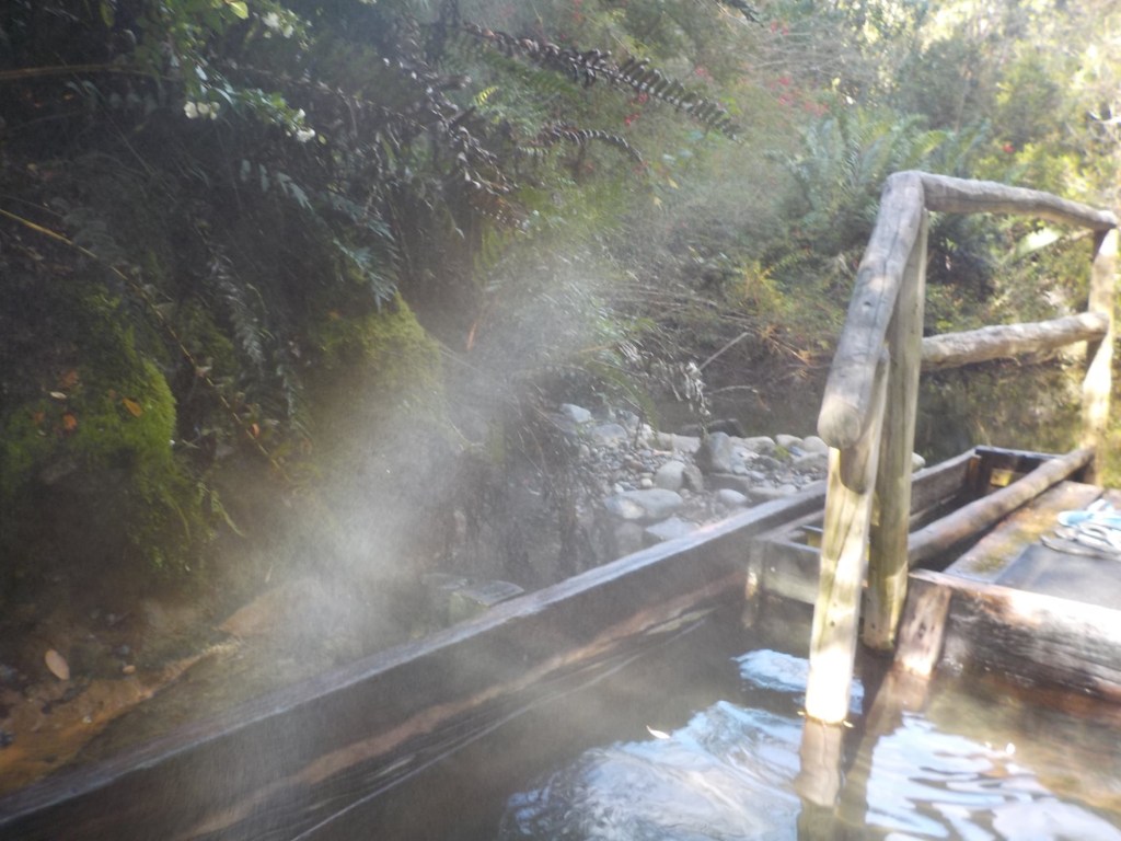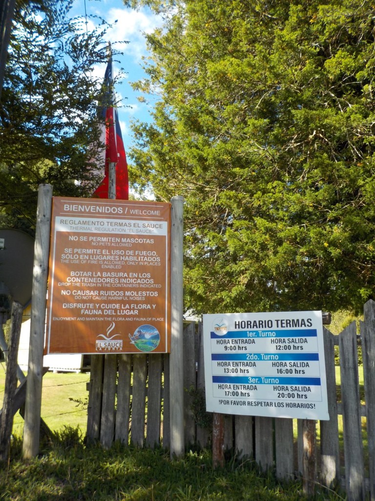 We did some cloth washing and then headed off to the thermal baths in the late afternoon. It was another gravel road along the river Río Palena which had all kinds of surprises in store for us – in addition to the usual potholes, corrugations, and deep gravel, we also encountered a herd of young cattle in the middle of the road, sheep that escaped from a paddock and goats 😂