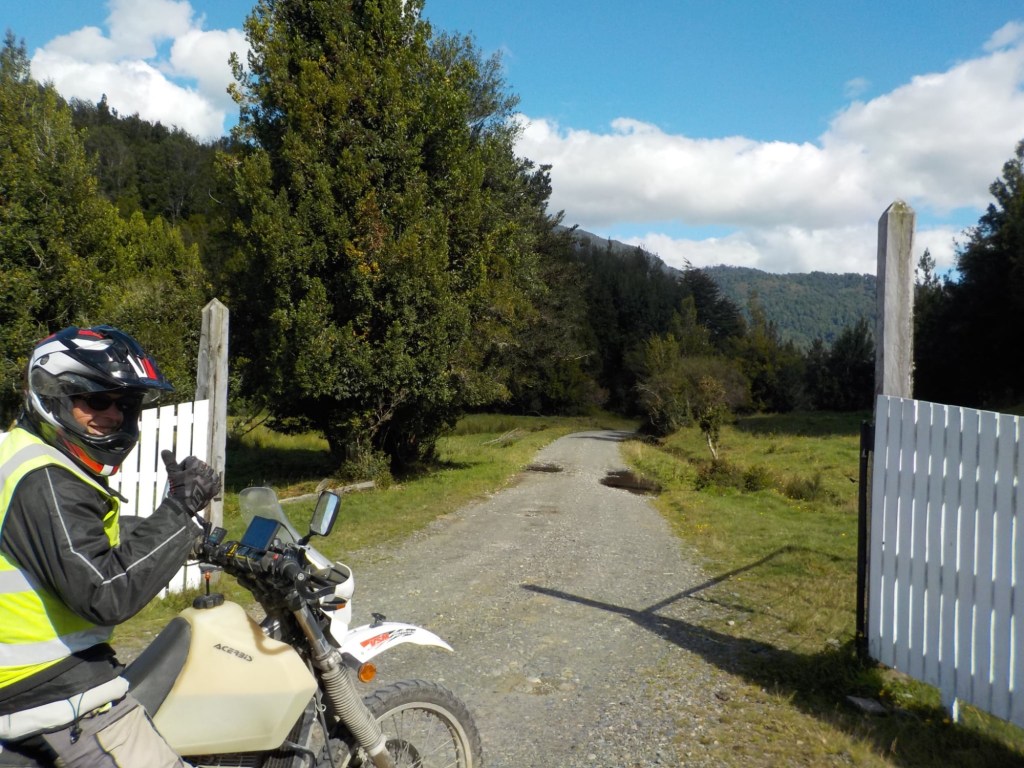 The driveway to the private property was 3 km long and a single lane track with one large puddle to cross and up steep hills but otherwise the road was in good condition and our bikes were unloaded and lighter than when we travel with all our gear on it.