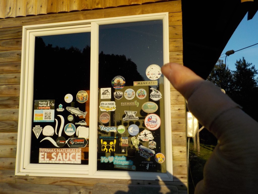 We got out of our motorcycle gear and hopped into the warm water – it was very relaxing and after a while it felt quite warm and I got out and entered the 8 degrees waters of the cold stream before returning to the warm water. I alternated between the cold river and the hot pool frequently but Andrew stayed in the warm pool just sitting outside and only sticking his legs in when he got too hot. We both really enjoyed the relaxing warm water and stayed until 7:00pm in the water and we left one of our stickers on the window. We really wanted to leave in time to not have to ride home on that gravel road in the dark.