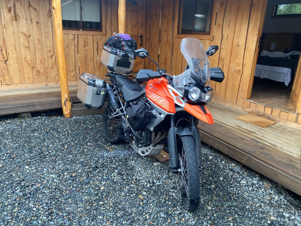 The rest of our stay was too wet to do anything and we had an entire day of torrential rainfall with >60mm of rain falling in 24 hours. A couple from Argentina (Ilio and Natalia) both riding on one Triumph Tiger 900 also stayed Saturday in the motel and they gave us lots of tips about where to go in Northern Argentina – hopefully we will make it there as we are spending a lot longer in the Southern parts of Chile than we had anticipated partially due to the rain which we are avoiding to ride in when it is ridiculously wet.