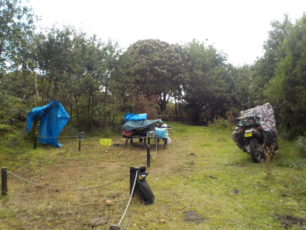 The next day was another torrential rain day and after breakfast in the hotel (grumpy Chaitén hotel lady was there muttering something in Spanish to us before leaving), we stayed in our small room with a view over the water and caught up on the blogs. I was just sitting and working on the computer when I felt something crawl on my hand and looked and it was a European wasp 🥺 – I have no idea where it came from?? Possibly was in my clothes bag which we emptied on the bed earlier trying to get the hotel to do a load of laundry for us but they said they don’t do that even though it said they offered laundry service on booking.com 🙁 We got the wasp off my hand on a piece of paper and out through the window- there have been so many of these wasps everywhere -mostly flying around the bike with all the splattered bugs on it and I always worried that I would get stung but luckily that has not happened (yet). And while on the topic of bites and stings, I can report that my spider bite has finally healed without having been to a doctor or antibiotics 👍 And since we could not get our laundry done we hand washed socks, undies and the bottoms of the zip-off pants which had gotten dirty on our epic hike. The heater was good in the room and we got everything dried over the two nights.
