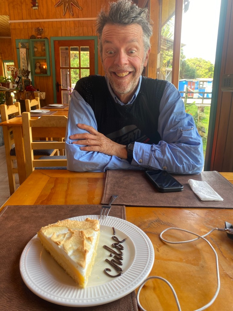 We ventured down the road for dinner to a very nice restaurant and enjoyed pasta dishes. When we returned to our hotel, I had to turn my heated grips off which I had left on (again!!) and from the carpark we could see into the restaurant area of our hotel. One lady sat by herself at a table looking grumpy – when we walked into the hotel she looked at us and grumpily nodded and we worked out it was the grumpy old lady from the hotel Mi Casa in Chaitén. What are the chances??!!😂 And Pat, thanks for introducing me to Fawlty Towers (which I had never heard or seen before – watched a few episodes and Basil was way nicer than the grumpy lady from Chaitén 😂)