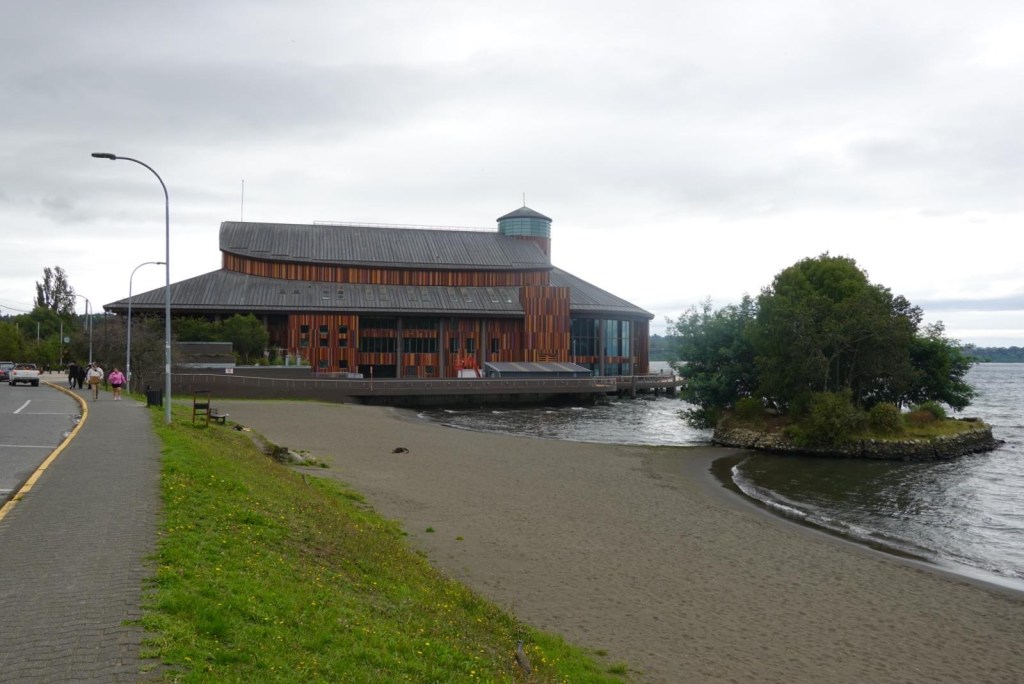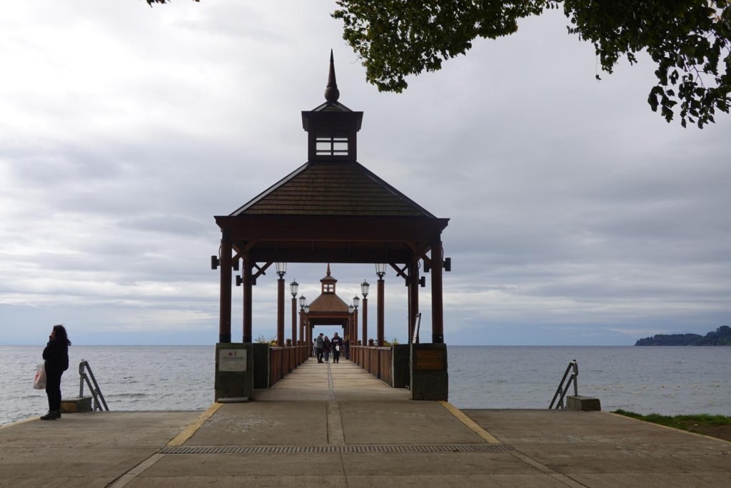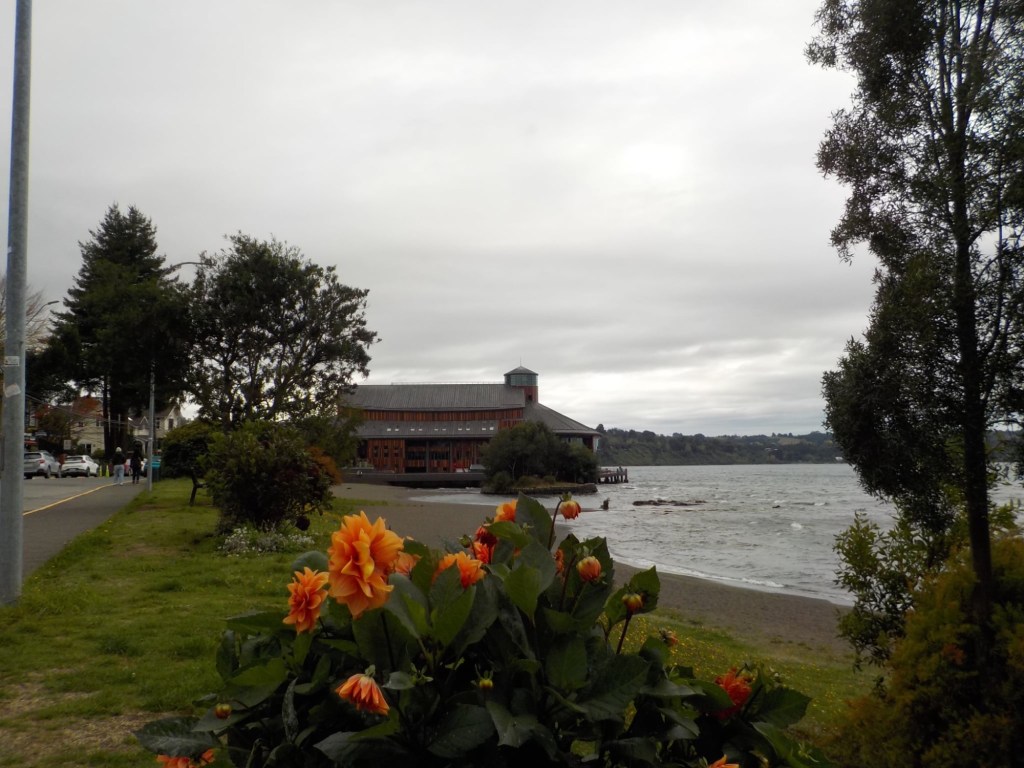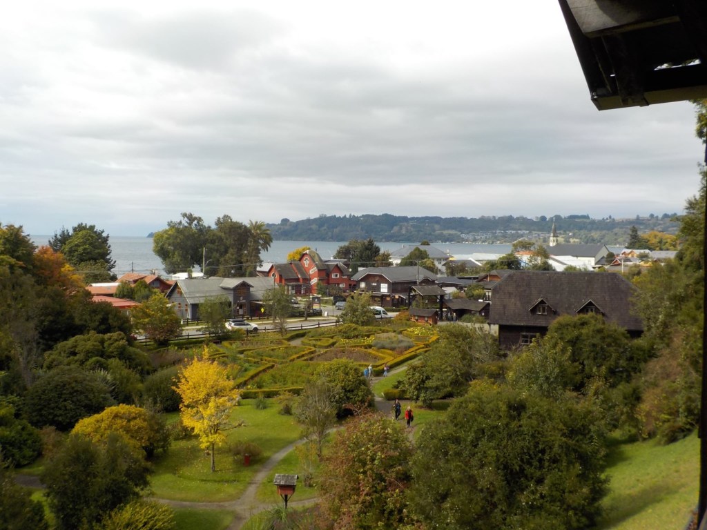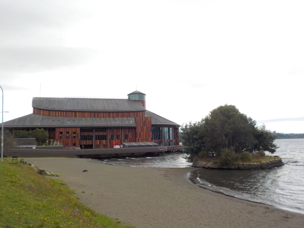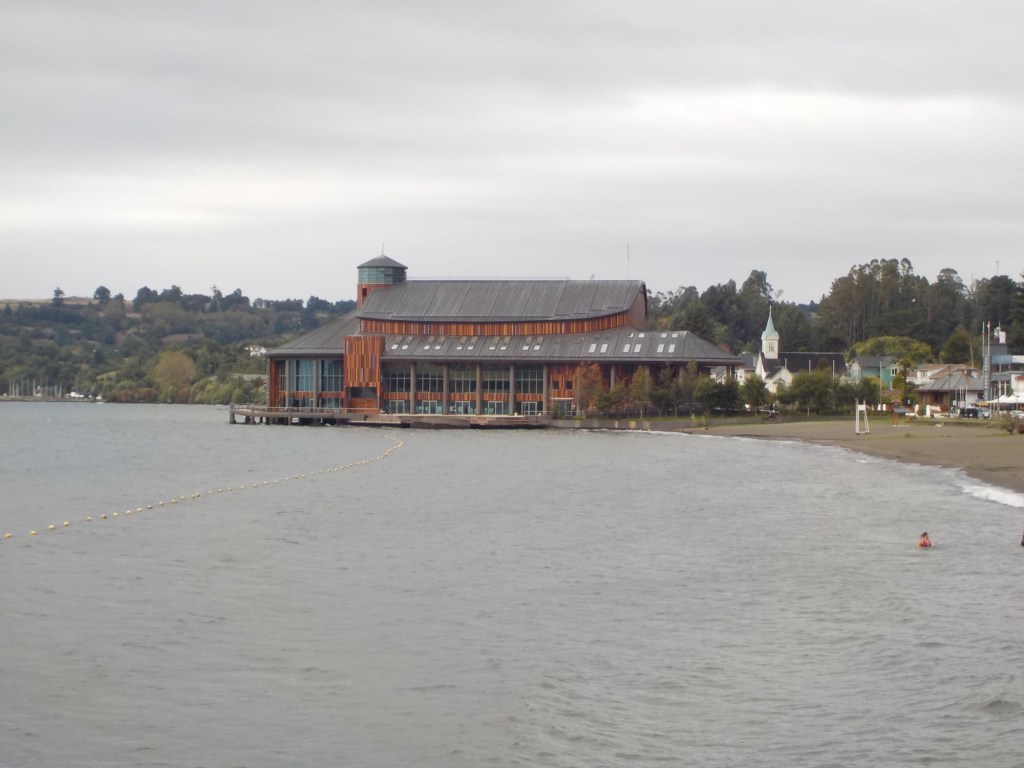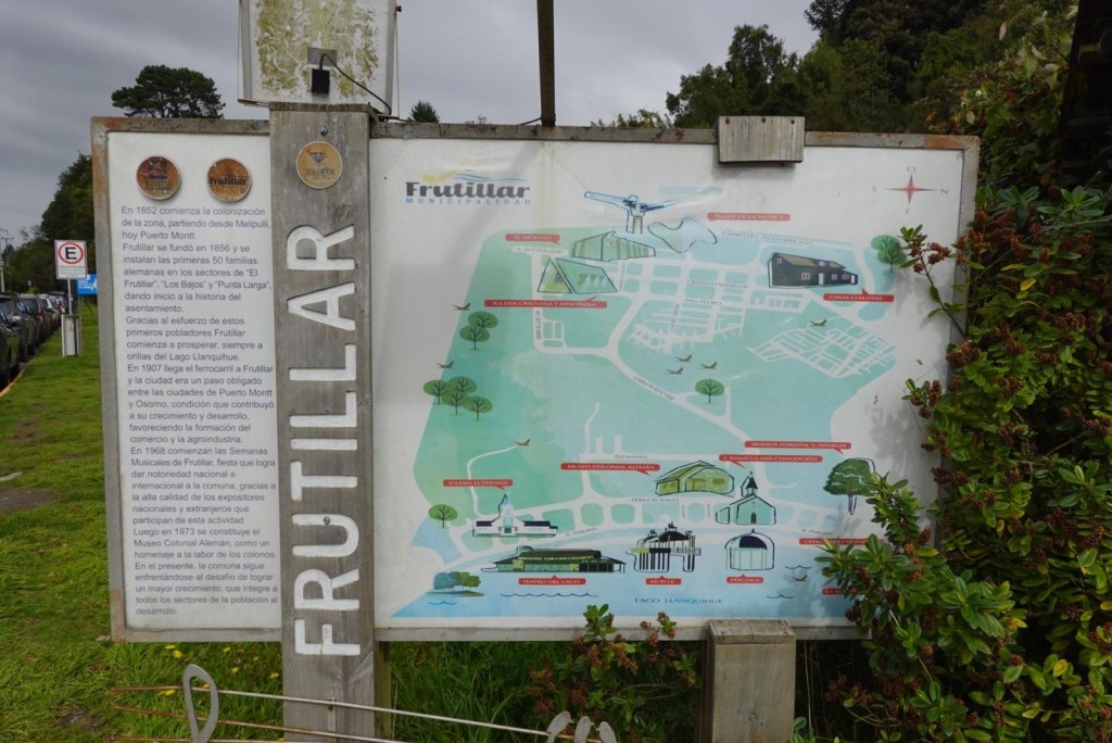 After a nice breakfast, we were able to leave our laundry to be done at the hotel and decided to head into town as the forecasted rain had not arrived – it was very cloudy and we could not see the volcano on the other side of the lake, but it did not rain. We first went to the iconic theatre on the waterfront (Teatro del Lago) and heard music in the distance and saw runners with medals – we followed the promenade and saw a big running event (run Frutillar) with the last competitors arriving at the finish line. We continued along the foreshore, visited the Catholic Church and then an open air museum of German settlement (Museo Colonial Akemán) which was very nice but everything was only in Spanish – no English or German signage. We had lunch in a nice art café and met a couple from Switzerland (Raphael and his partner from Finland) and exchanged whats’app details.