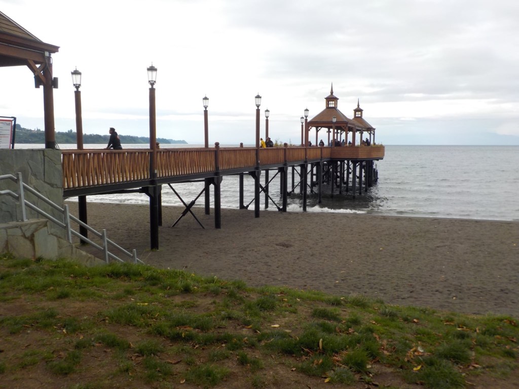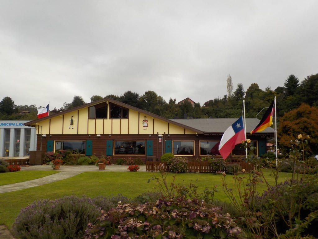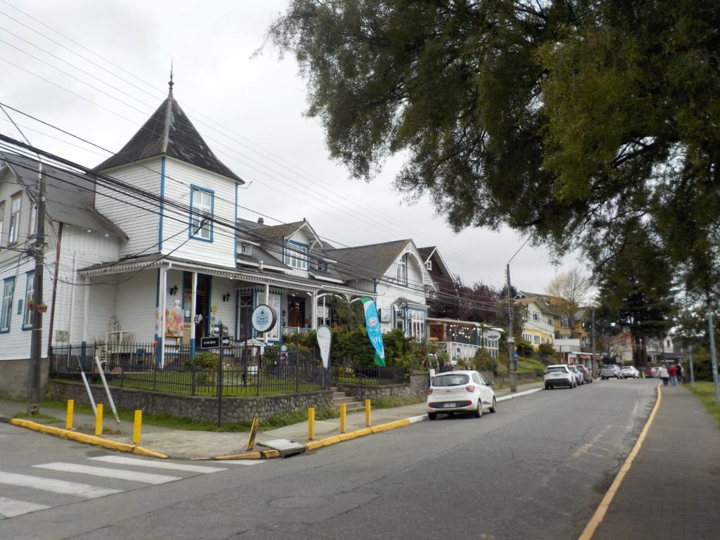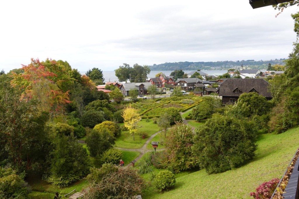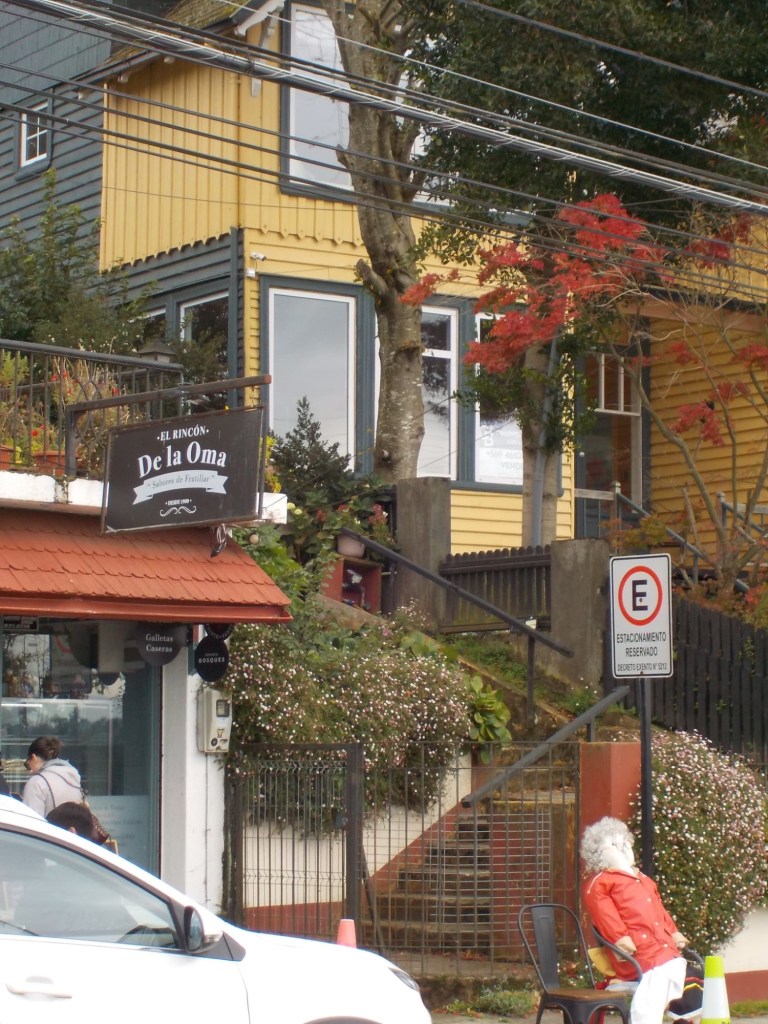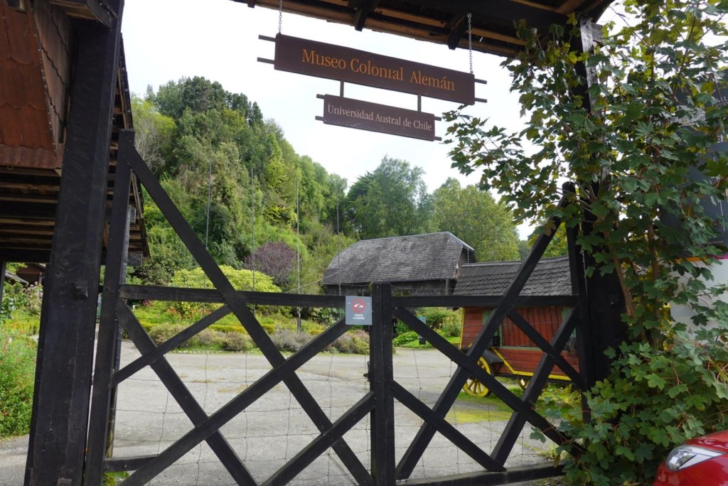 After a nice breakfast, we were able to leave our laundry to be done at the hotel and decided to head into town as the forecasted rain had not arrived – it was very cloudy and we could not see the volcano on the other side of the lake, but it did not rain. We first went to the iconic theatre on the waterfront (Teatro del Lago) and heard music in the distance and saw runners with medals – we followed the promenade and saw a big running event (run Frutillar) with the last competitors arriving at the finish line. We continued along the foreshore, visited the Catholic Church and then an open air museum of German settlement (Museo Colonial Akemán) which was very nice but everything was only in Spanish – no English or German signage. We had lunch in a nice art café and met a couple from Switzerland (Raphael and his partner from Finland) and exchanged whats’app details.