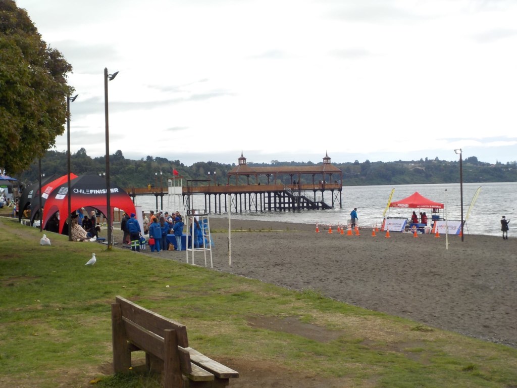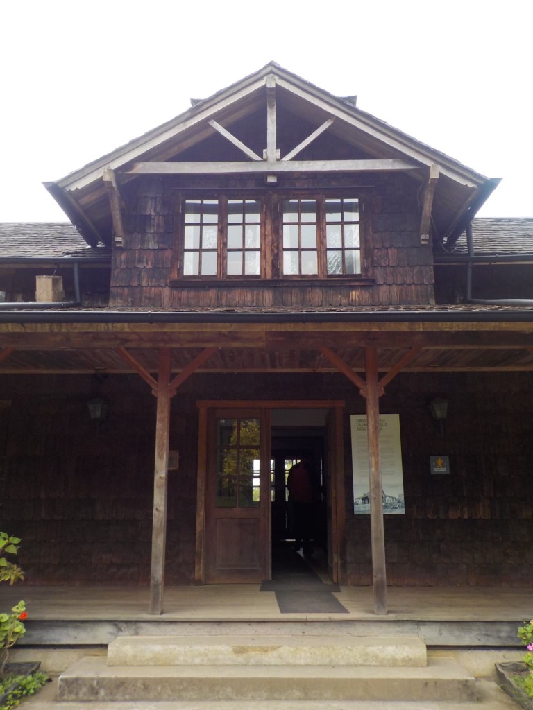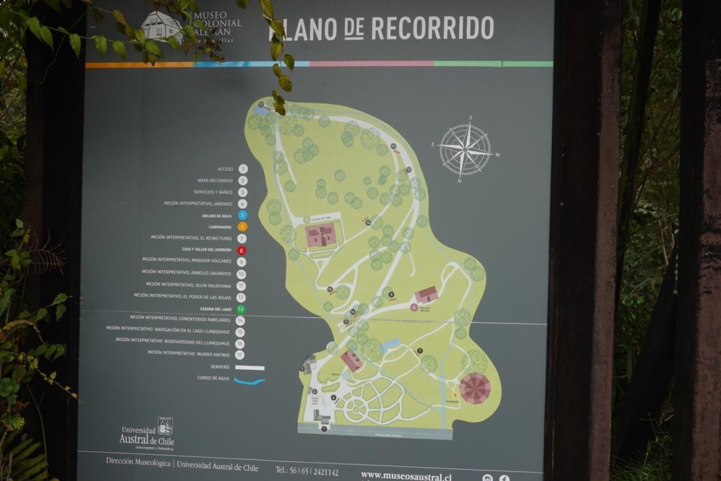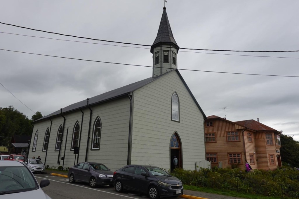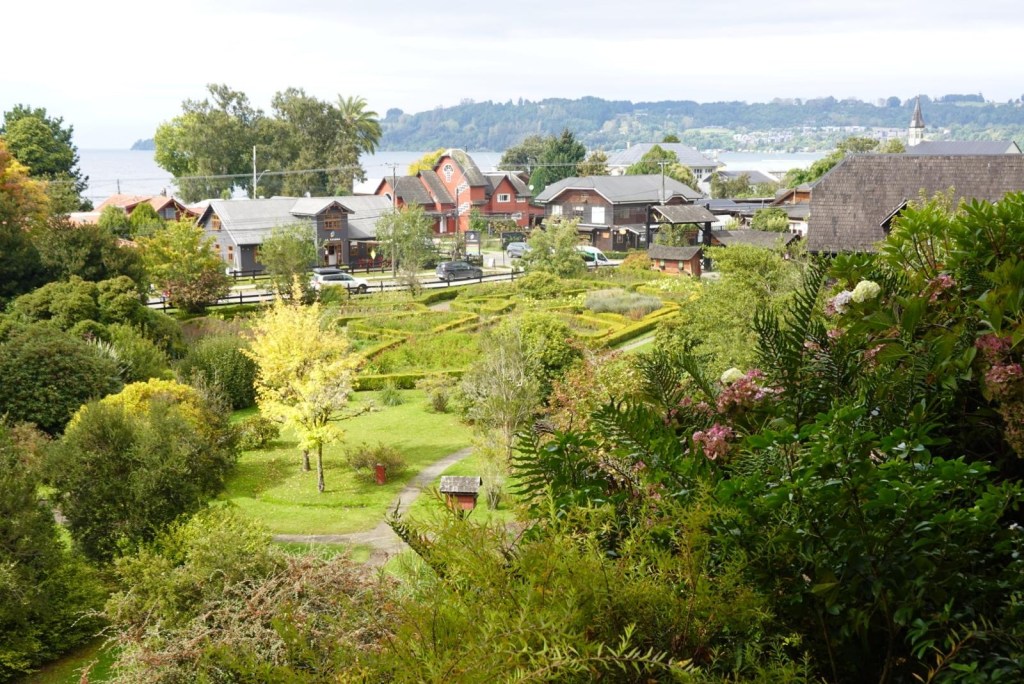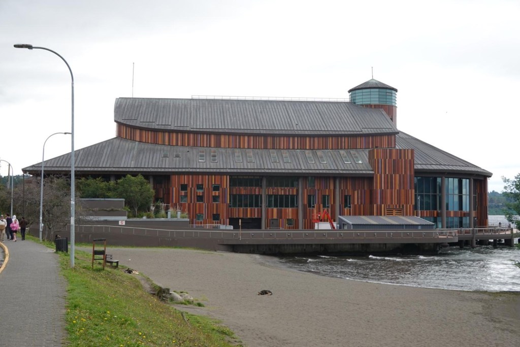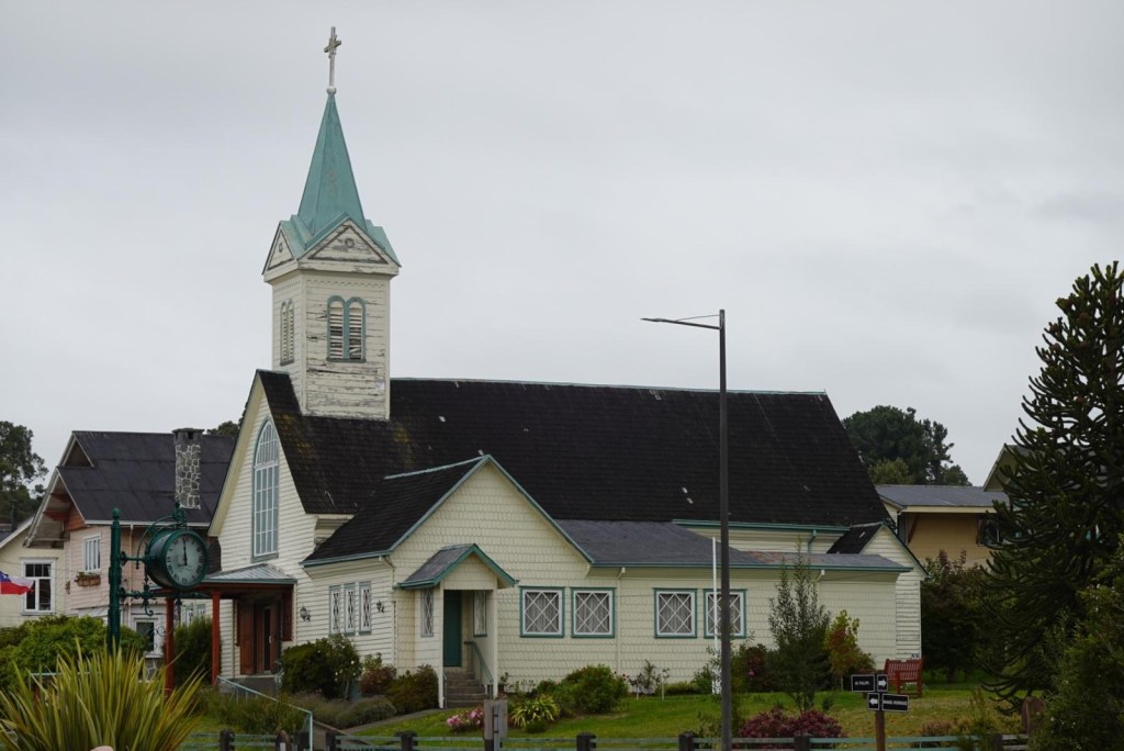After a nice breakfast, we were able to leave our laundry to be done at the hotel and decided to head into town as the forecasted rain had not arrived – it was very cloudy and we could not see the volcano on the other side of the lake, but it did not rain. We first went to the iconic theatre on the waterfront (Teatro del Lago) and heard music in the distance and saw runners with medals – we followed the promenade and saw a big running event (run Frutillar) with the last competitors arriving at the finish line. We continued along the foreshore, visited the Catholic Church and then an open air museum of German settlement (Museo Colonial Akemán) which was very nice but everything was only in Spanish – no English or German signage. We had lunch in a nice art café and met a couple from Switzerland (Raphael and his partner from Finland) and exchanged whats’app details.