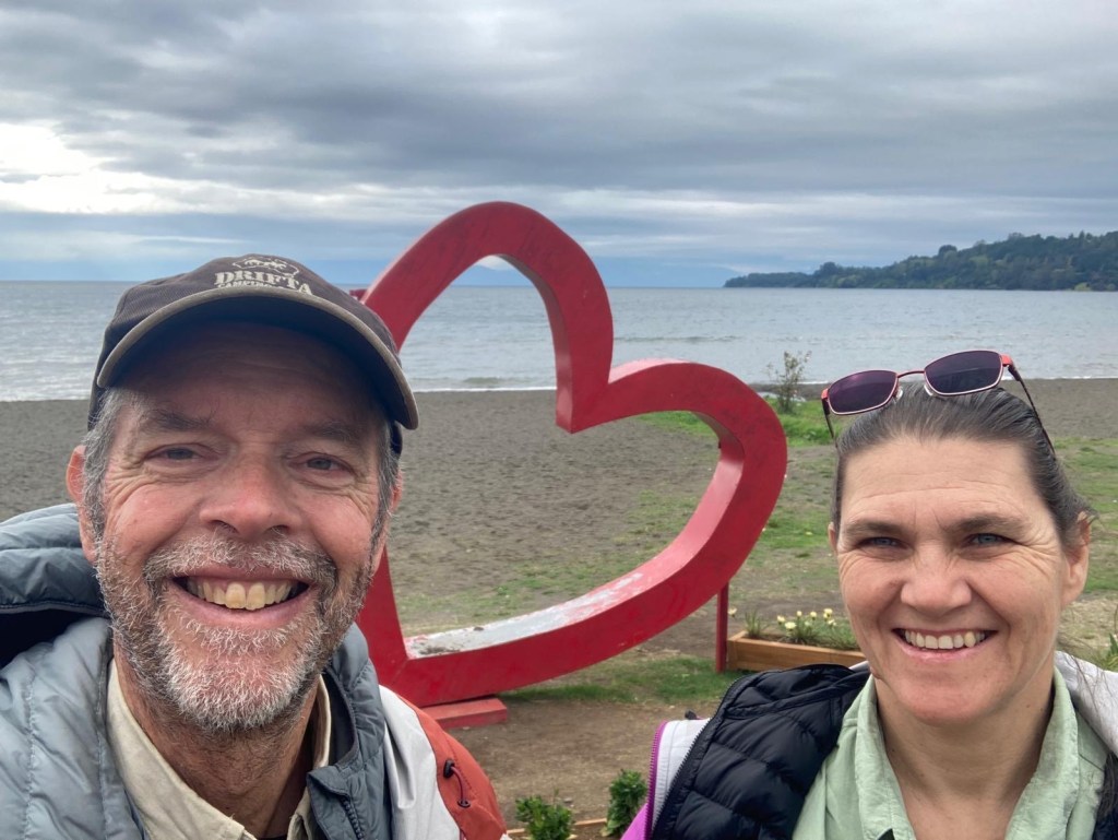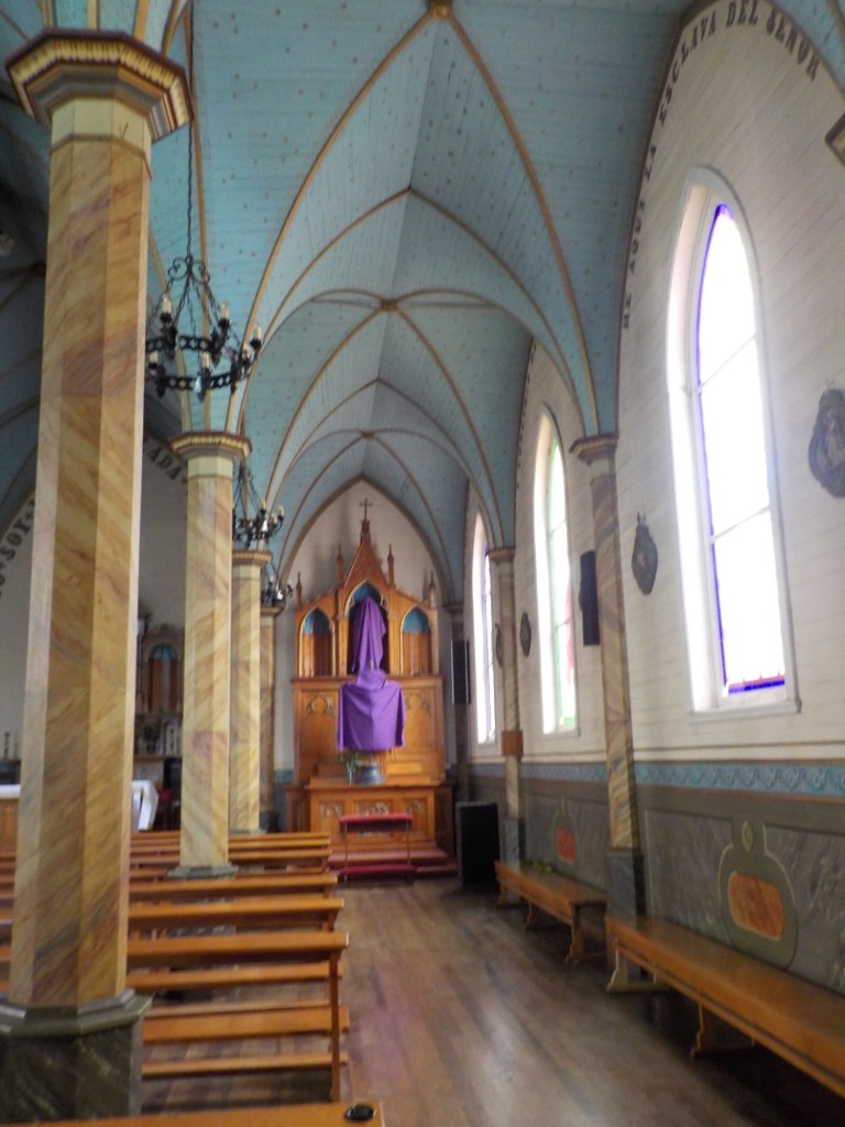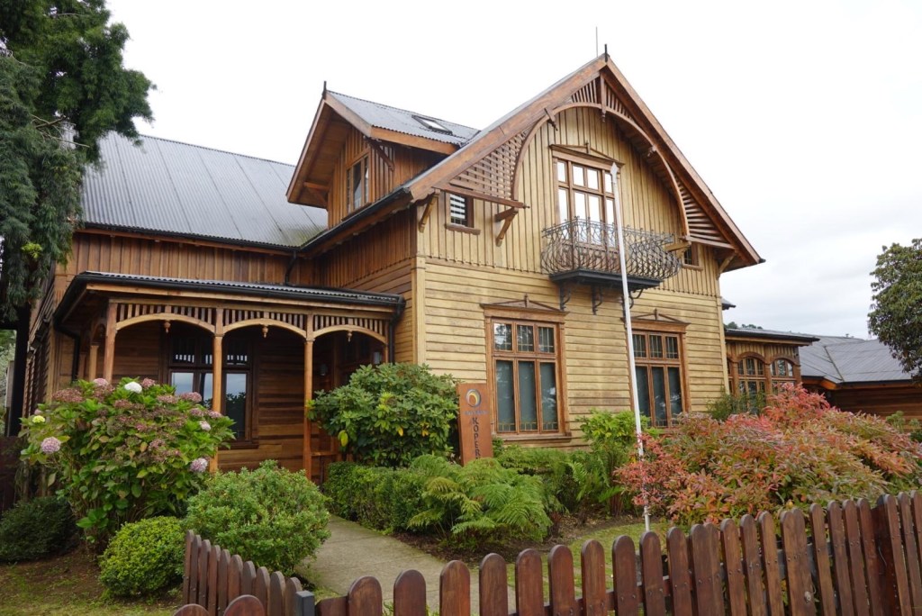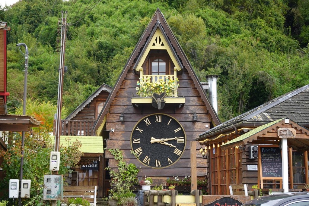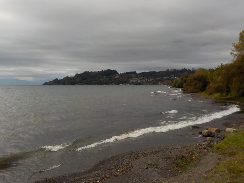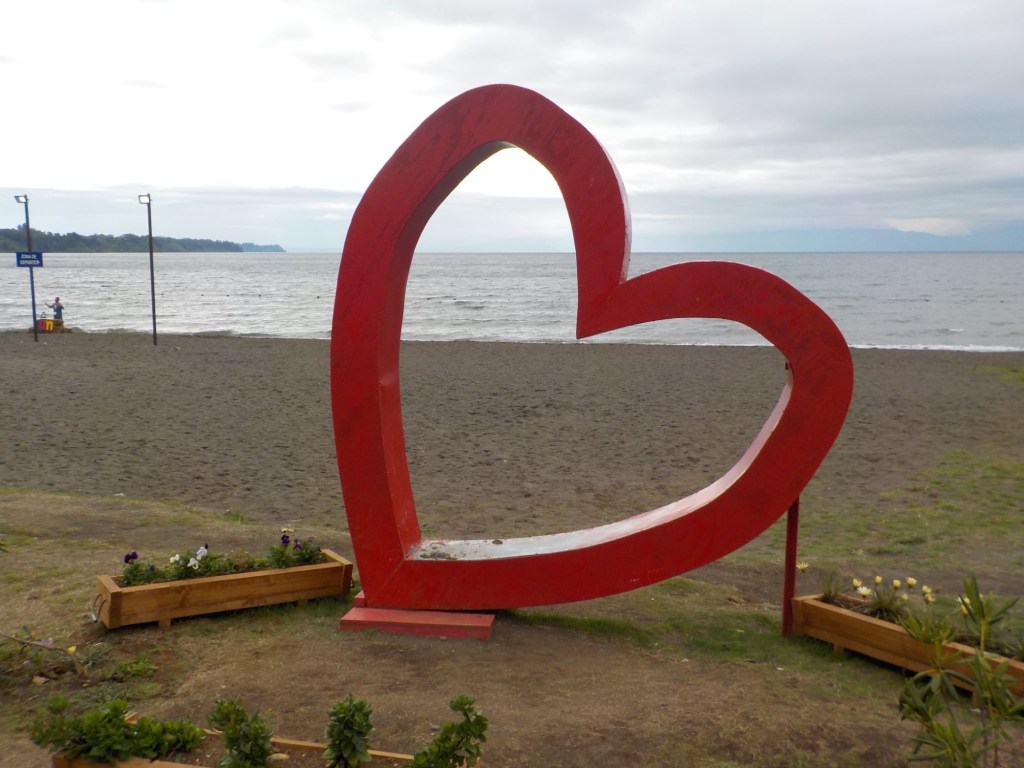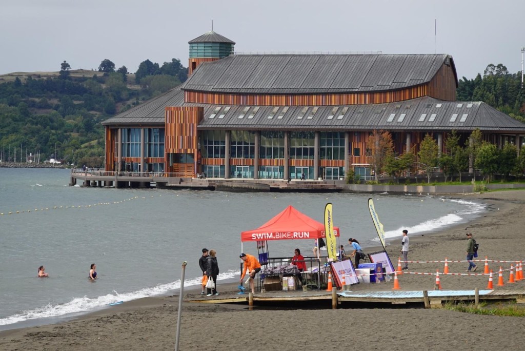 After a nice breakfast, we were able to leave our laundry to be done at the hotel and decided to head into town as the forecasted rain had not arrived – it was very cloudy and we could not see the volcano on the other side of the lake, but it did not rain. We first went to the iconic theatre on the waterfront (Teatro del Lago) and heard music in the distance and saw runners with medals – we followed the promenade and saw a big running event (run Frutillar) with the last competitors arriving at the finish line. We continued along the foreshore, visited the Catholic Church and then an open air museum of German settlement (Museo Colonial Akemán) which was very nice but everything was only in Spanish – no English or German signage. We had lunch in a nice art café and met a couple from Switzerland (Raphael and his partner from Finland) and exchanged whats’app details.
