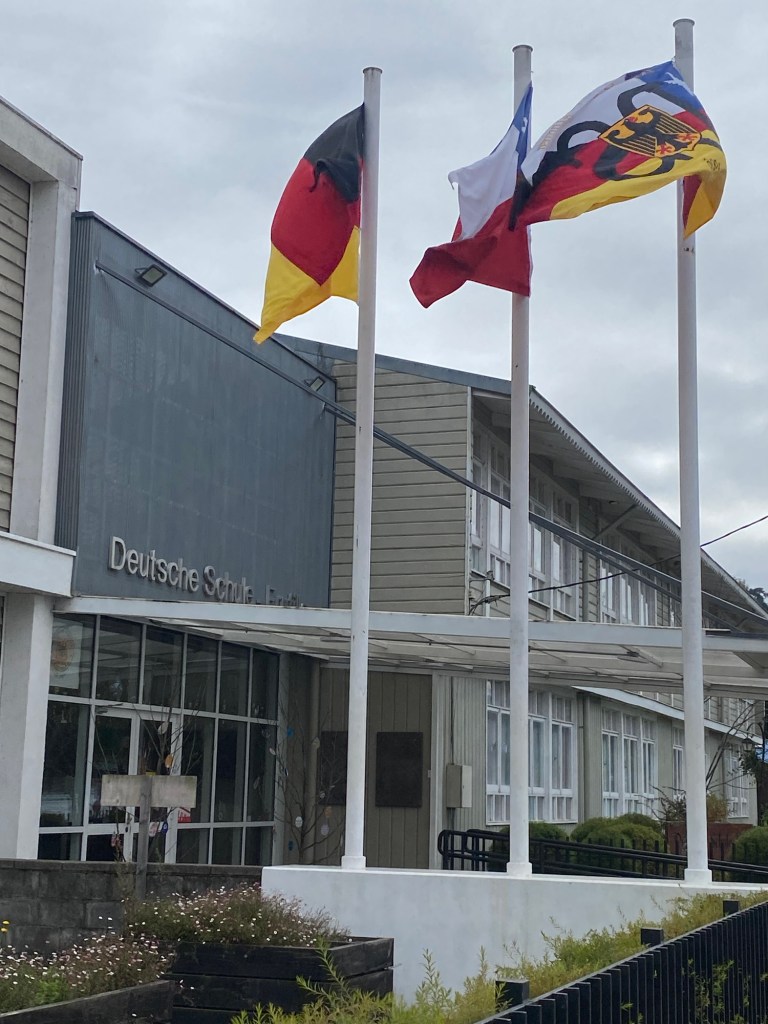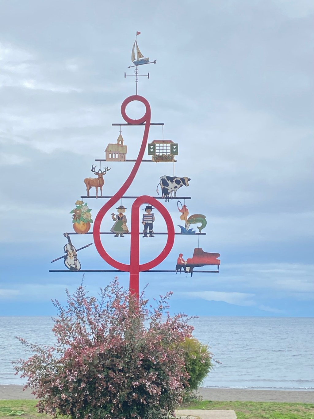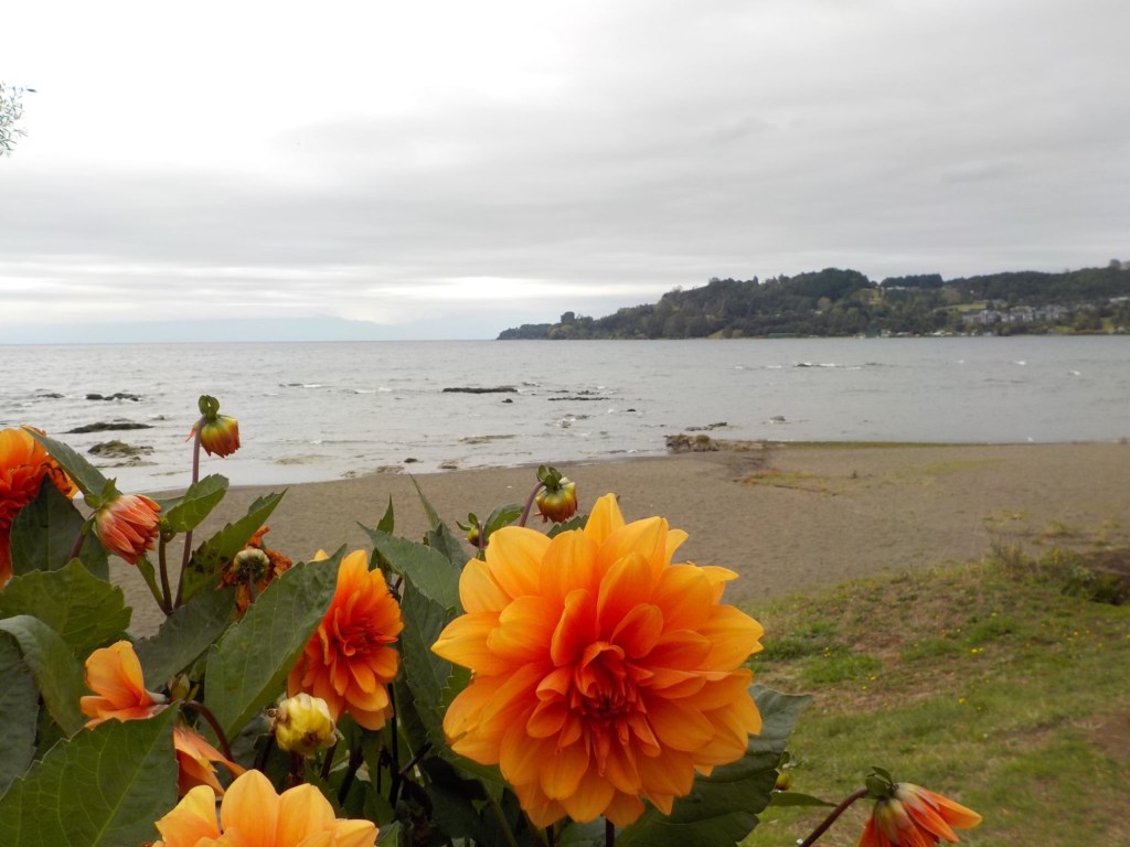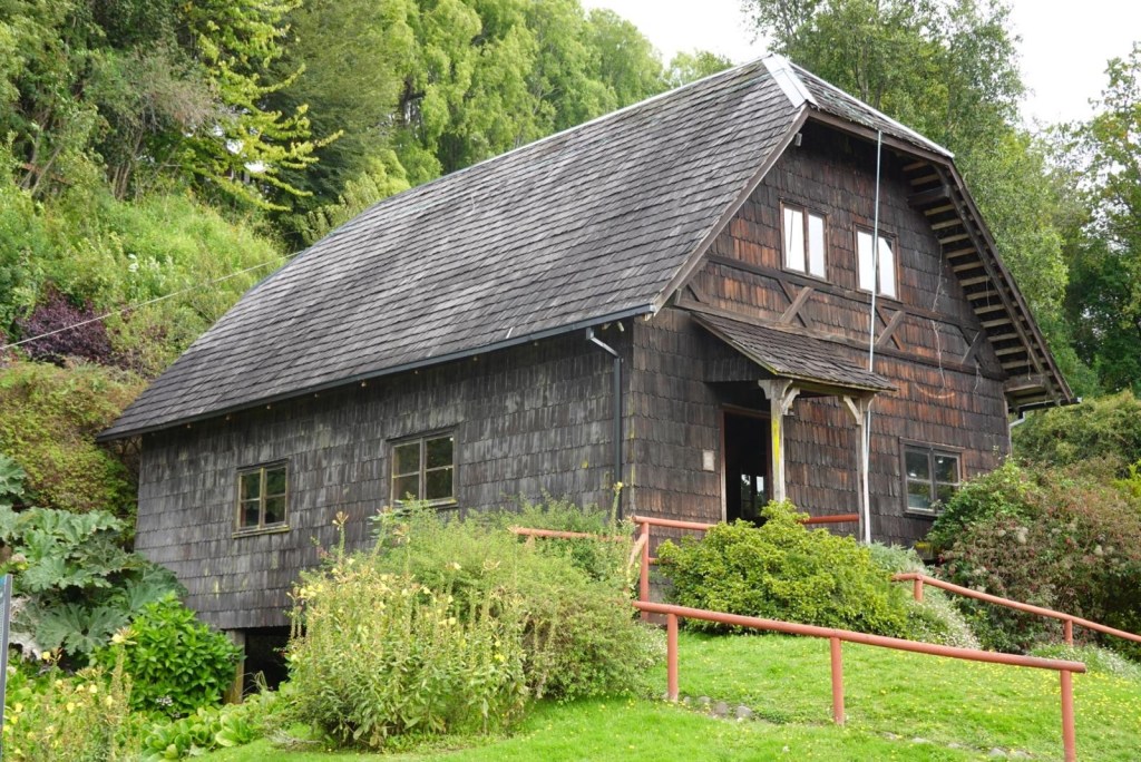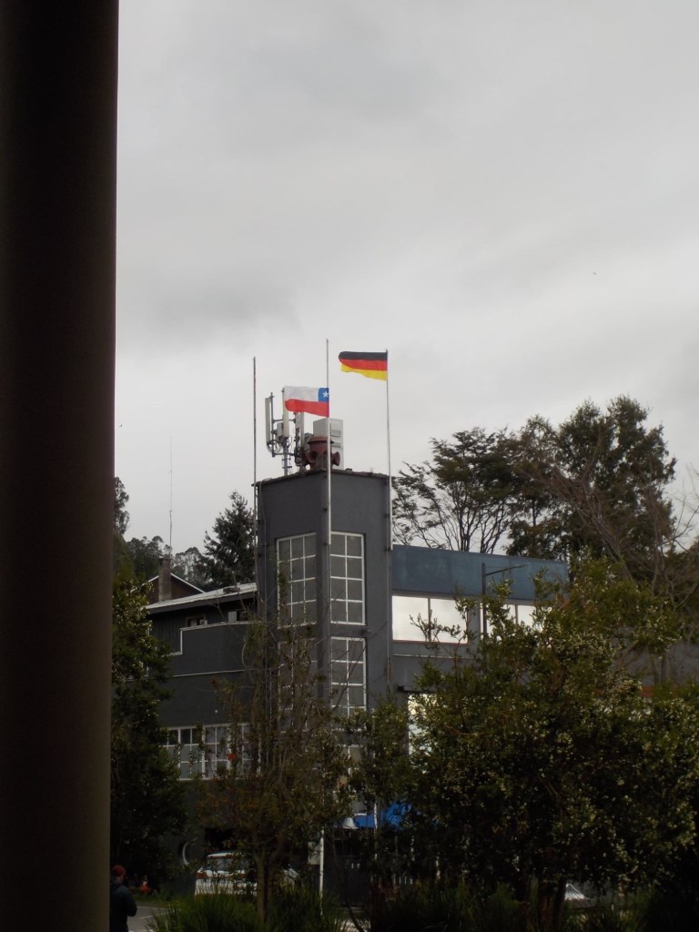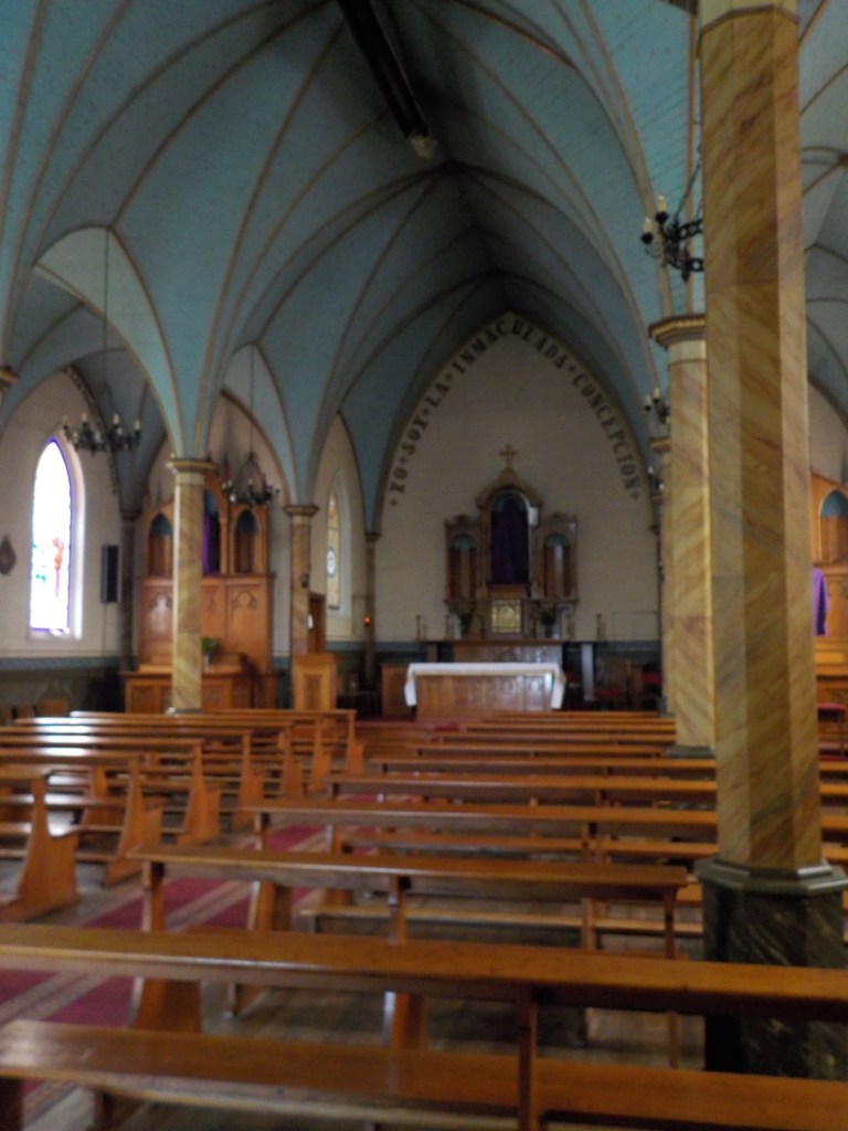 After a nice breakfast, we were able to leave our laundry to be done at the hotel and decided to head into town as the forecasted rain had not arrived – it was very cloudy and we could not see the volcano on the other side of the lake, but it did not rain. We first went to the iconic theatre on the waterfront (Teatro del Lago) and heard music in the distance and saw runners with medals – we followed the promenade and saw a big running event (run Frutillar) with the last competitors arriving at the finish line. We continued along the foreshore, visited the Catholic Church and then an open air museum of German settlement (Museo Colonial Akemán) which was very nice but everything was only in Spanish – no English or German signage. We had lunch in a nice art café and met a couple from Switzerland (Raphael and his partner from Finland) and exchanged whats’app details.