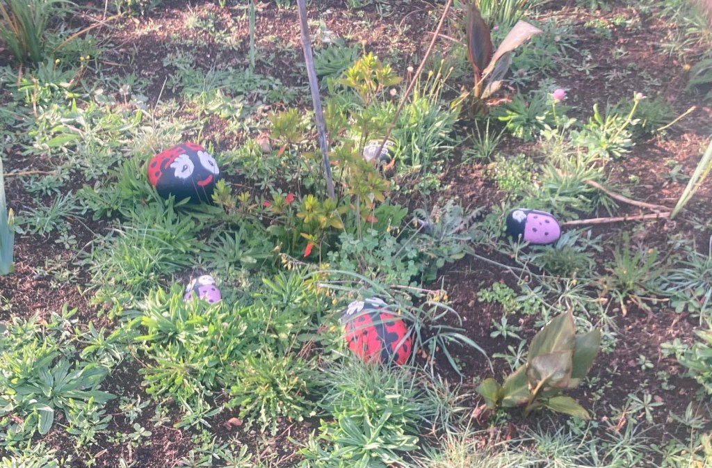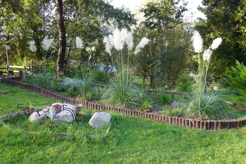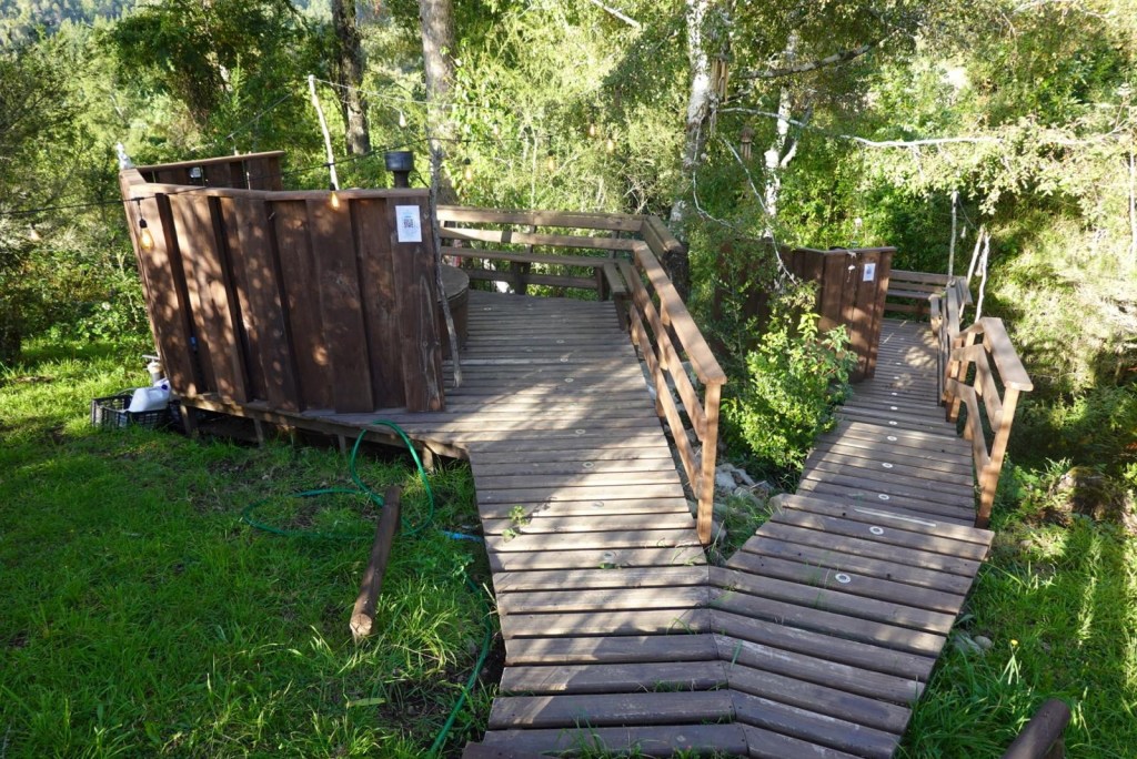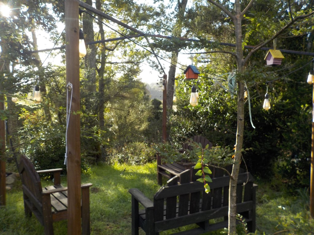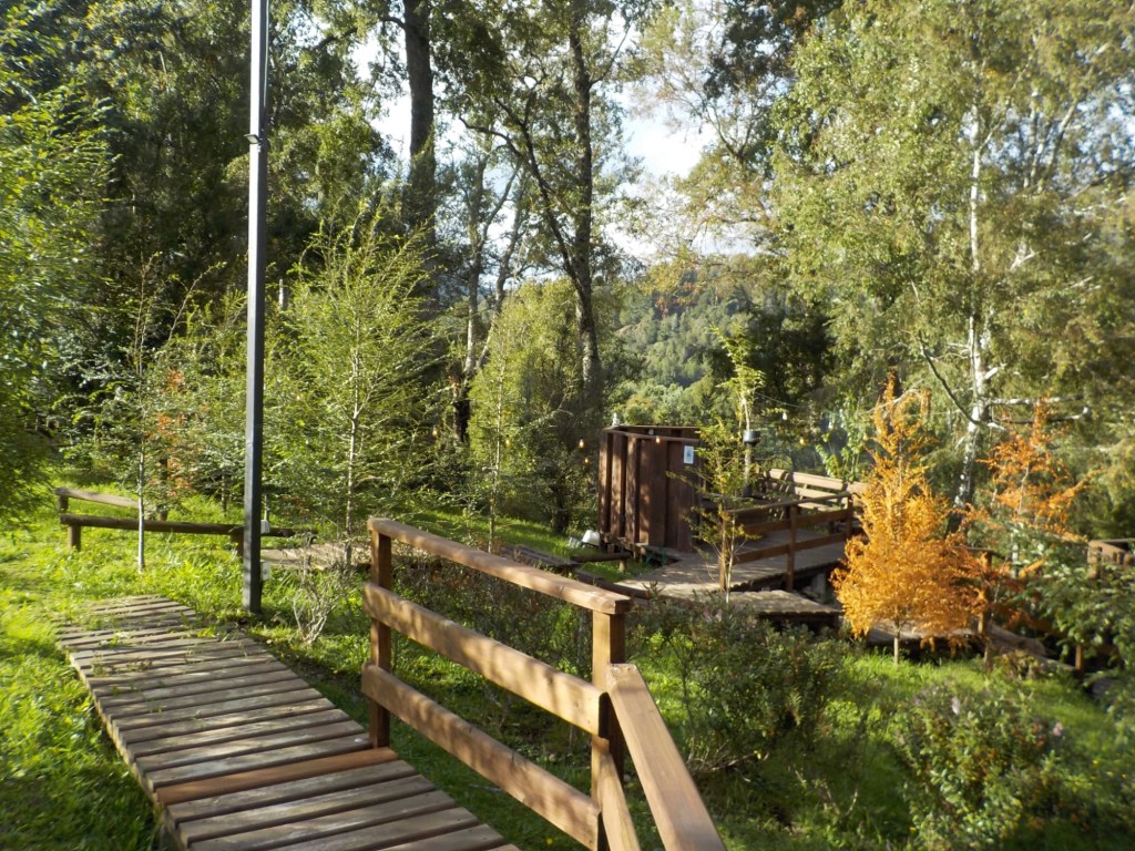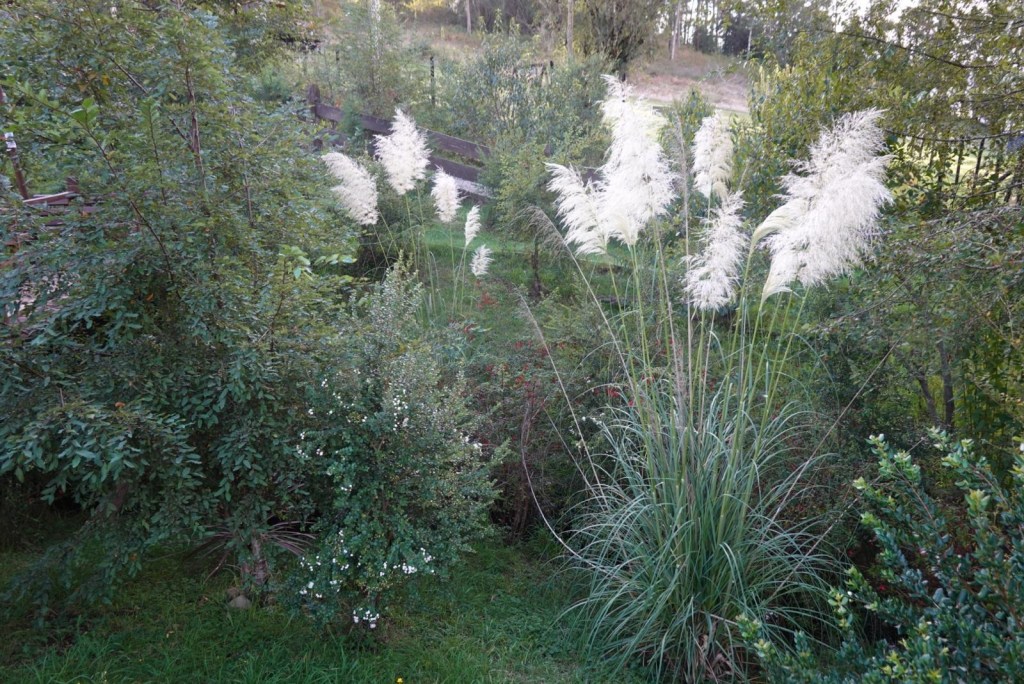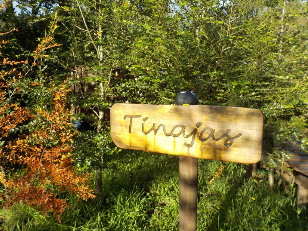 We left the shops, refuelled and hoped to find a nice place by the lake to have our bread rolls but in Panguipulli at the waterfront was no parking and we continued to Mirador Pulinque where we stopped briefly and then decided to continue straight to the Cabañas only a few minutes further. We turned at a sign of a Mapuche comunidad, up a steep gravel road and the cabanas were behind a locked gate. We waited until Hernán came to open the gates and we rode to where Valentina showed us to park the bikes. They welcomed us warmly and showed us our Cabaña which had a large window looking over the forest and was built over a stream and you could hear flowing water underneath. We had arranged for them to get an outdoor hot tub ready for us for the evening – same style as we did not get to use in Chaitén with the unfriendly old grumpy lady. It took 6-8 hours to get the water heated with a wood-fired stove. We unpacked and had our lunch outside and walked around the lovely garden and I found another Fuchsia bush with hummingbirds which they call “colibri” – same as the German word and I took more video footage – they are becoming my favourite birds on the trip so far – together with the pink flamingoes 🤗 And I am yet to see one of the colourful kingfishers🤞.