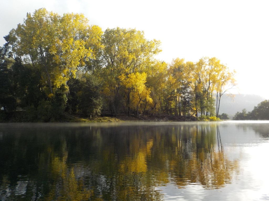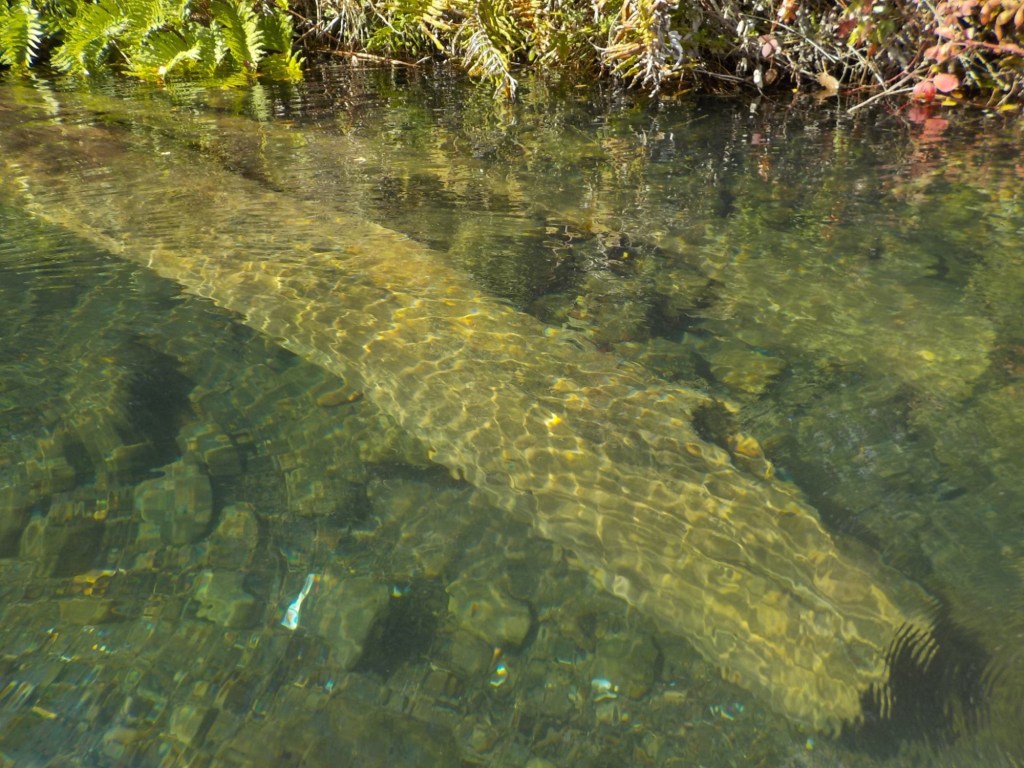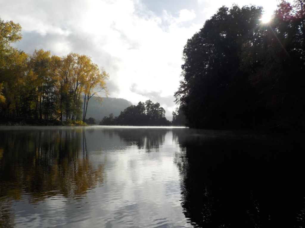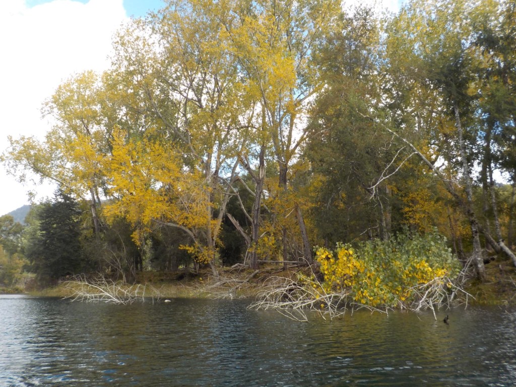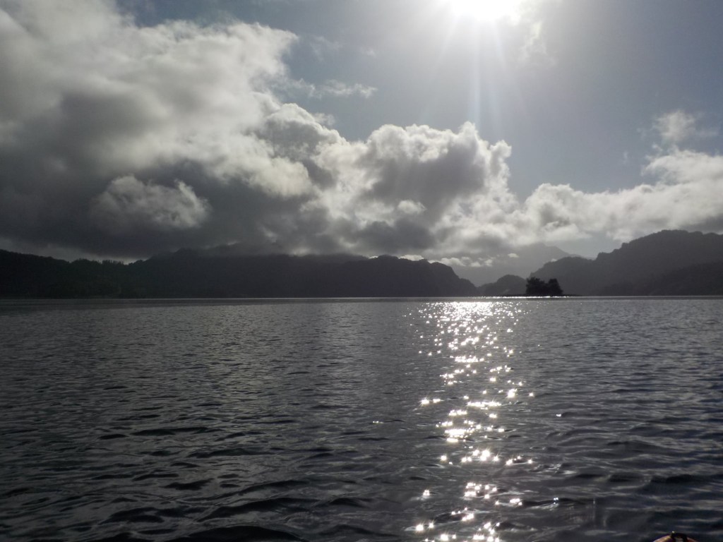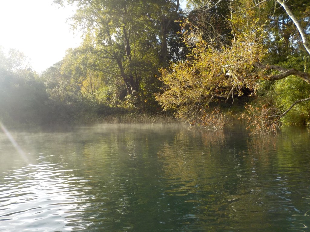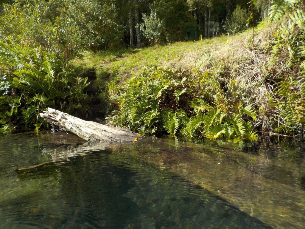 After breakfast, we got a lift in the Ute of our hosts to the same lookout where we had stopped on our way to the Cabañas the day before where we put the open double kayak in the water. We had two hours to explore the lake on our own. It was magical with steam rising over the lake, autumn coloured leaves falling and we really enjoyed the two hours on the water. We paddled 6km in total and made it a fair way across the lake and we managed to get a glimpse of the top of volcan Villarrica when the clouds lifted enough to briefly see the peak. We were back by 12:00 noon and our lovely hosts came to pick us up.