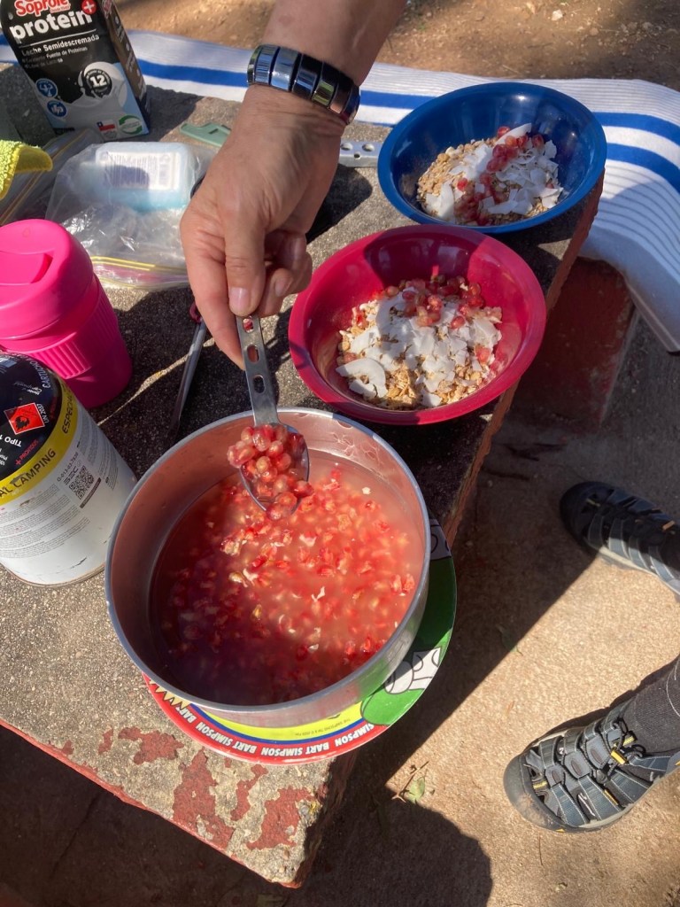 We cooked dinner early and retired to our tent early – we listened to the very loud screeching of the parrots outside and the local kids at their soccer practice on the field nearby and then had a great night sleep in our cozy tent without any mosquitoes inside.