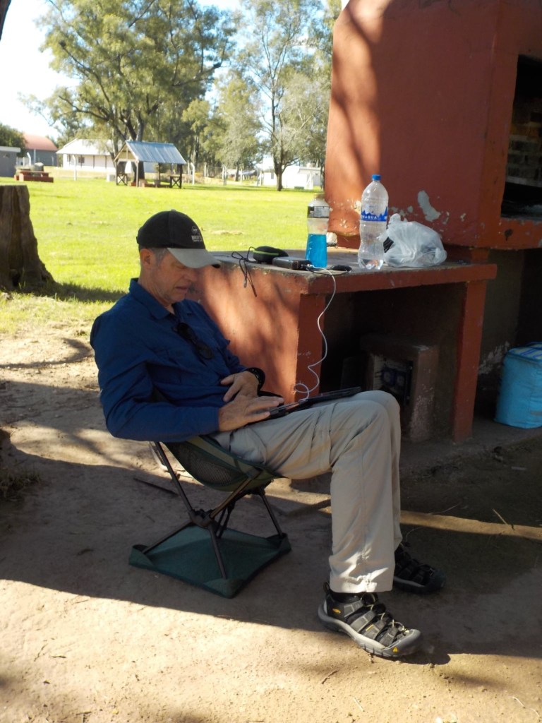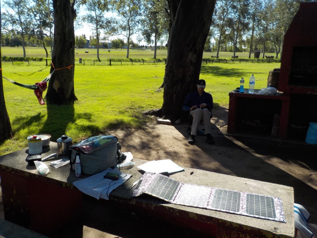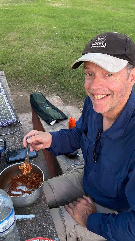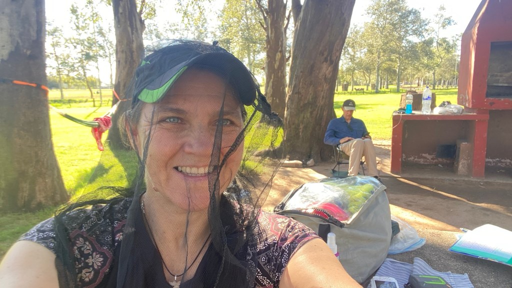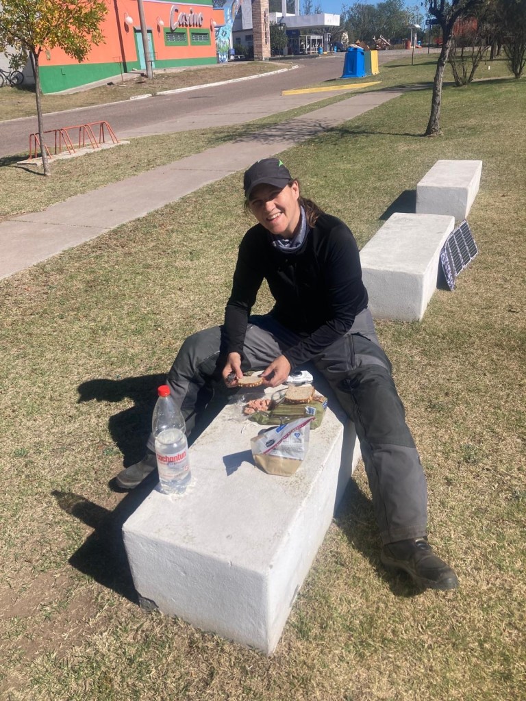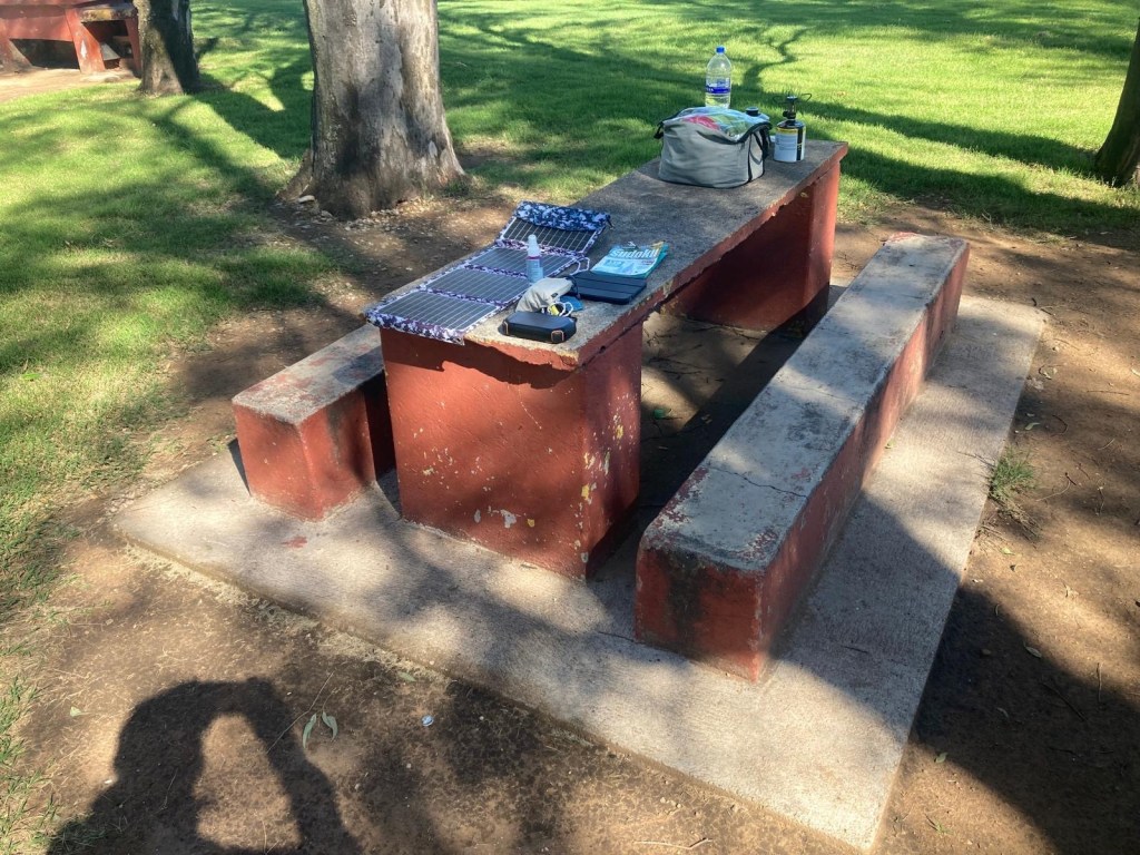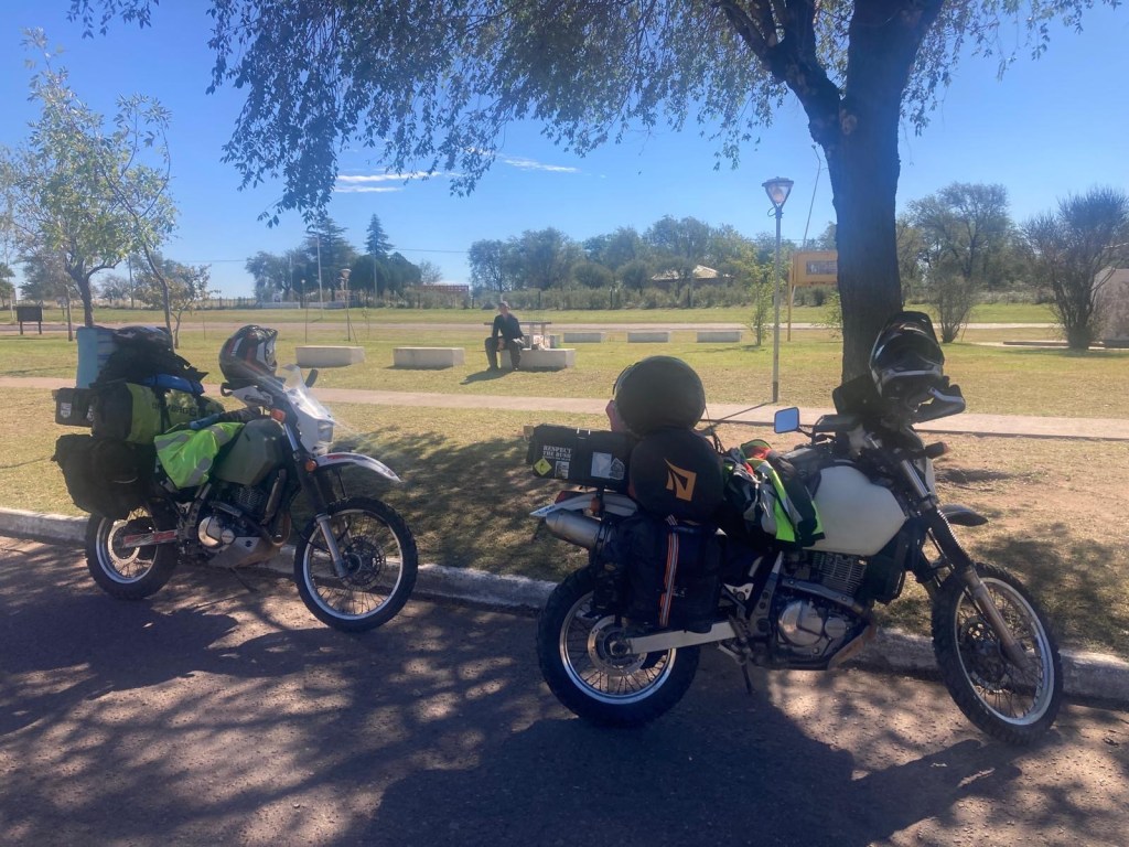 In the afternoon two Argentinians arrived on their adventure motorcycles (one CFMoto and the other one was a RVM) and we walked over to say hello – the caretaker came over to collect money from them and the mosquitoes were really bad – one of the Argentinian riders had a can of repellent called “off” and sprayed my legs and I asked him where I could get one – they said any shop has them. Later on, the caretaker came over to our site on his scooter and brought us a can of repellent for us to keep – such a nice guy 🤗 and much appreciated as I had about used up the entire Australian Rid that I had brought with us during our stay here and I still got bitten multiple times 🥺😳.