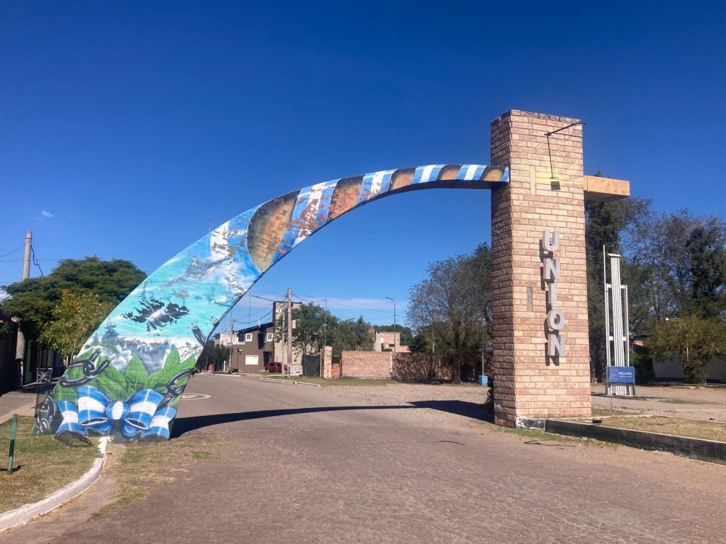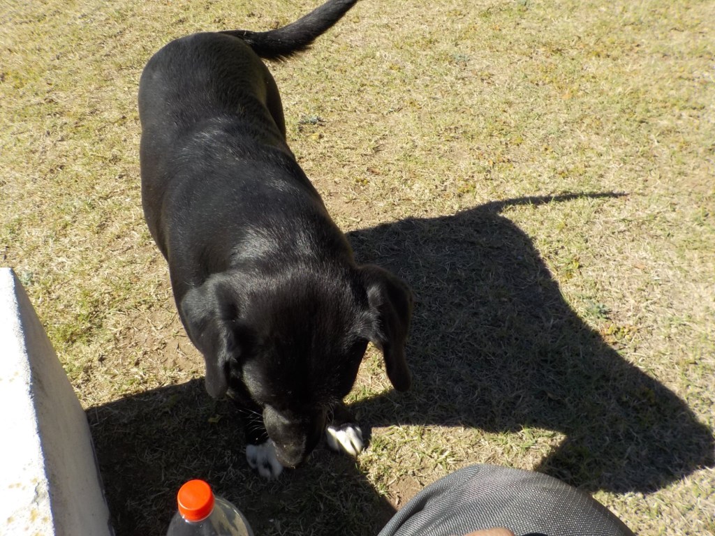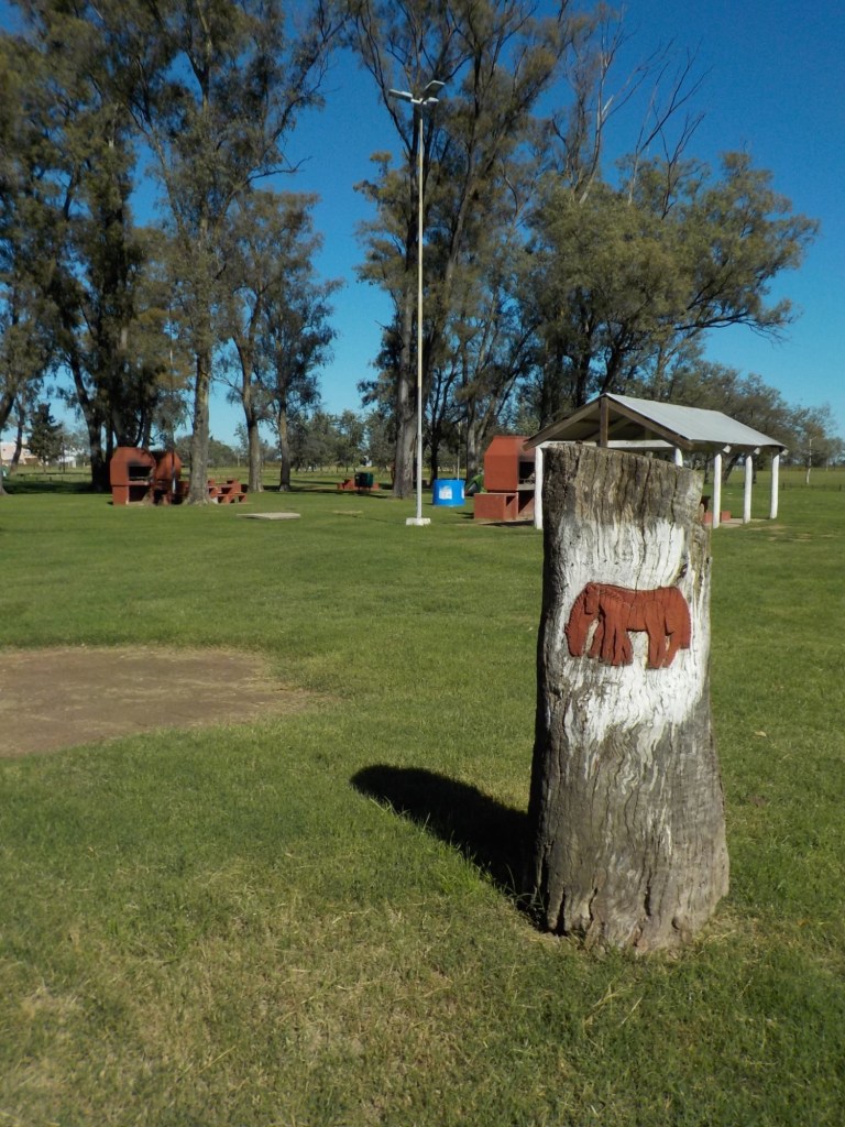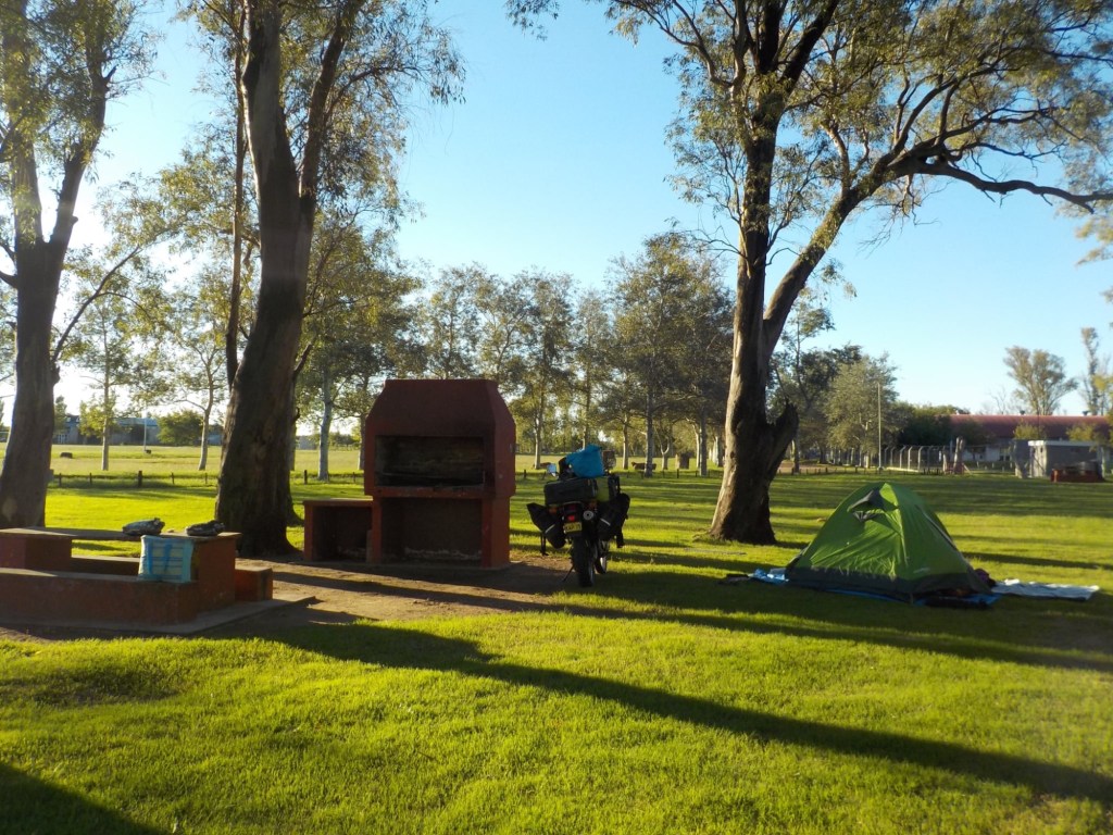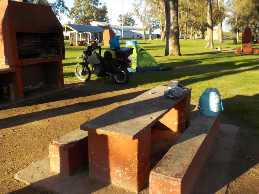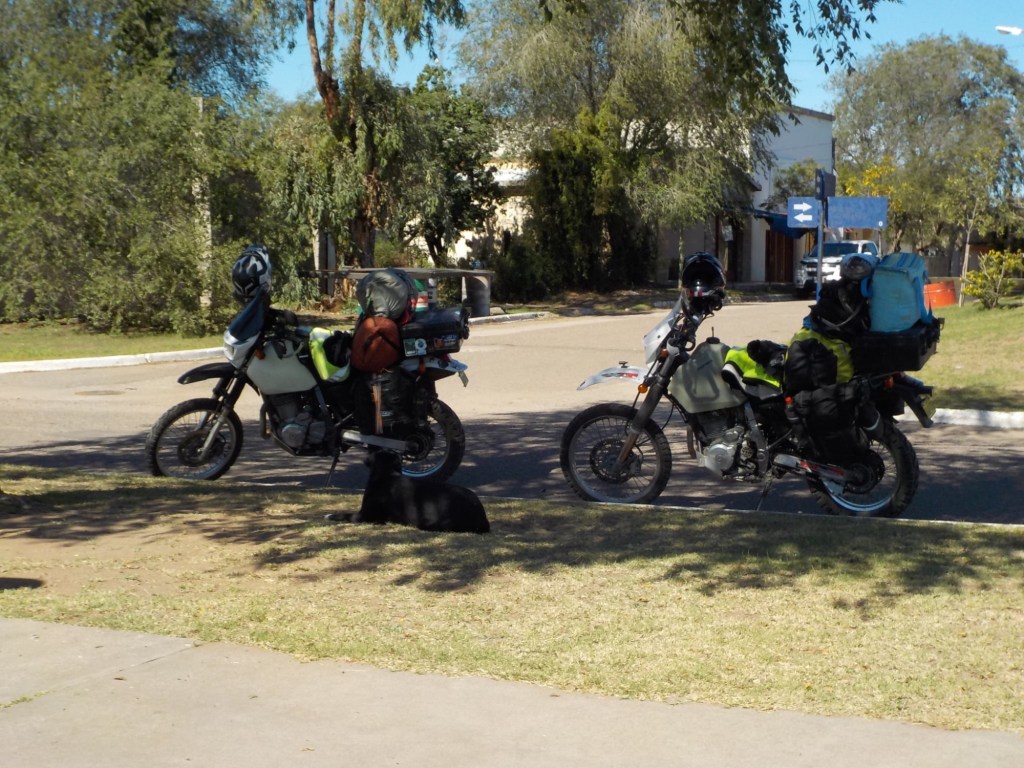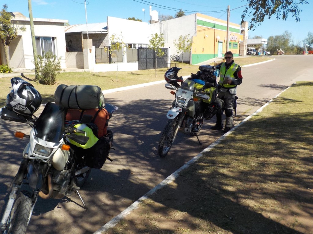 We had breakfast by 8:00 am and the owner gave us two large pomegranates which we fitted in our cooler bag. We left by 10:30am and fuelled up on our way out of town. We rode on the longest straight road for most of the day – through thick brush first and then later in the day it opened up to open grassland with farms and kms of corn fields. We stopped in Union which was about half way to our destination and fuelled up – the petrol station was cash only – luckily we had enough cash as there was no other petrol station and we would not have made the total of 320kms. We stopped for lunch on a side street and a young guy who had been welding on the street came over to say hello and we talked and he told us that a friend of his had been to Australia for a working holiday – he pointed at the house on the corner and said to knock if we needed anything – such friendly people and so many people we meet at very remote places either have been to Australia or know someone who lives or works in Australia – such a small world. After a tuna sandwich, saying hello to the local stray black dog and charging the phone with our solar panels, we continued the second half of our trip. Along the way we saw an armadillo running across the road, the fences on both sides of the road continued and we saw some large bird nests on the power lines and lots of Crested Caracara (Caracara plancus) on the side of the road. We ticked over 10,000km since our start riding in South America on January 7 – a great milestone. One of the little birds that often sit on the road or fly very low to the ground across the road did not make it as I hit it 😞.