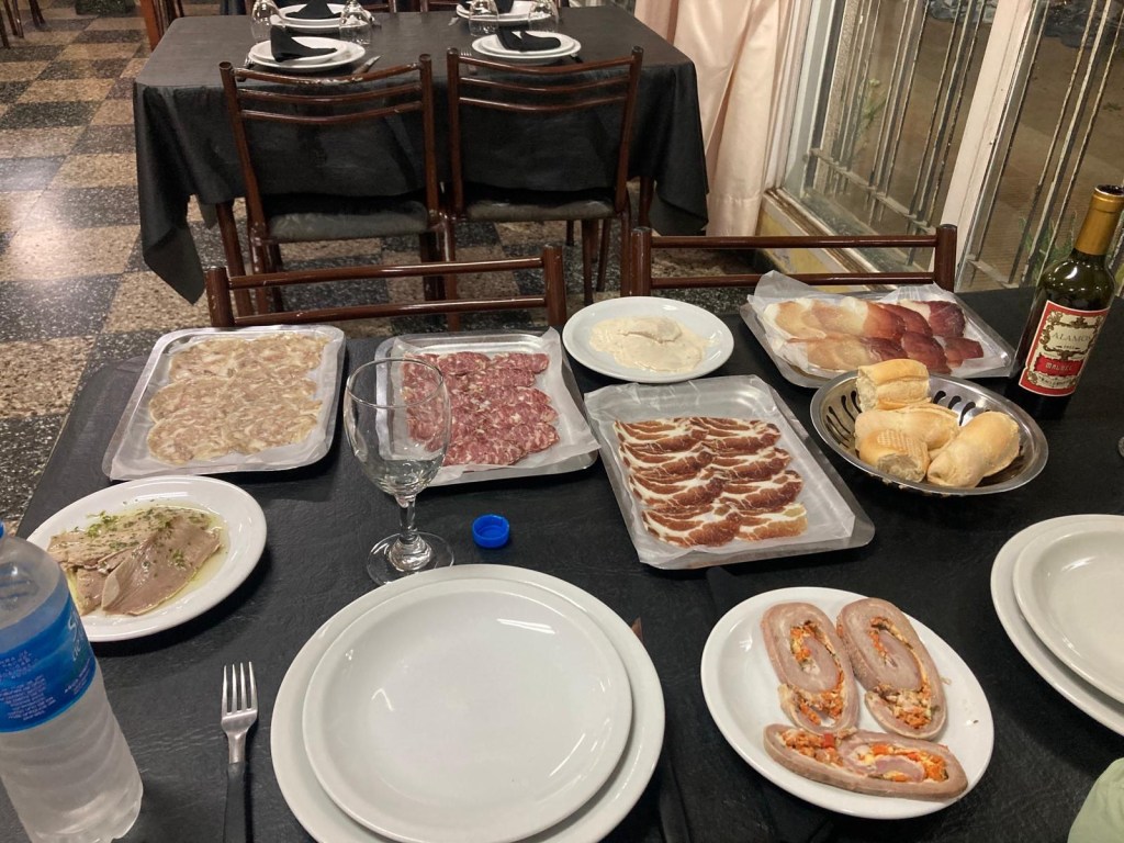 After getting things off the bikes and getting changed, we walked to the closest restaurant – El Flaco, recommended by Alicia. The place was empty and it was a sports club – we walked in and a young waitress told us in very fast Spanish what the meal included – appeared to be a set menu – we got that there were starters, pasta, mains with meat and salad and chips and some dessert included – we nodded only understanding very little of all she told us and tried to order drinks – I wanted a glass of red wine but the smallest they had was a half litre bottle and Andrew ordered a beer and the smallest size they had was a litre of beerπ₯Ήπ. Then she brought out 7 plates with different cold meats on it snd lots of it on each of the plates π₯Ή that was the entree – it could have fed an entire football team π – we were at a sports club after all π then she came to ask us what pasta we wanted and we had to choose from 5 different home-made pasta with either tomato or white sauce. We chose our pasta and it was beautifully cooked homemade pasta but again a quite large serving. Then she came and asked what meat, salad and chips we wanted for mainsπ³- we were so full from the first two courses we politely declined and went straight to dessert skipping the main course. We had fruit salad and flan for dessert. Then Andrew tried to pay and they said they donβt take credit card but cash only or bank transfer – π₯Ίoops, we should have checked that earlier as we did not have enough cash to pay for dinner – not on us and probably not even back in the apartment or if we did pay cash it would have been all of our Argentinian pesos used up and we needed to have some for paying tolls. The owner suggested we get back to the hotel to get some money from an atm but of course we did not stay at a hotel with an atm π- we asked if they accept money transfer and they said yes but for us to be able to pay on their system they have to send us a secure link and then I can pay with my credit card – this then works usually after the third attempt and only if I have wifi – modern technology ππ but between three young waitresses and a girl from the kitchen, we eventually managed to pay for dinner cashless. π