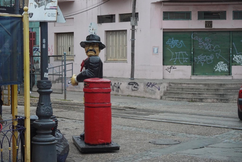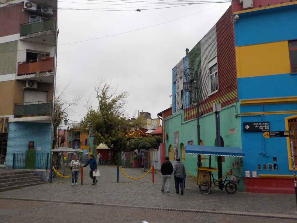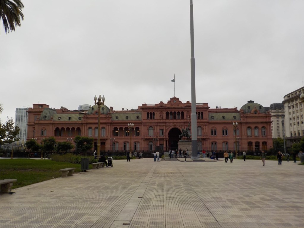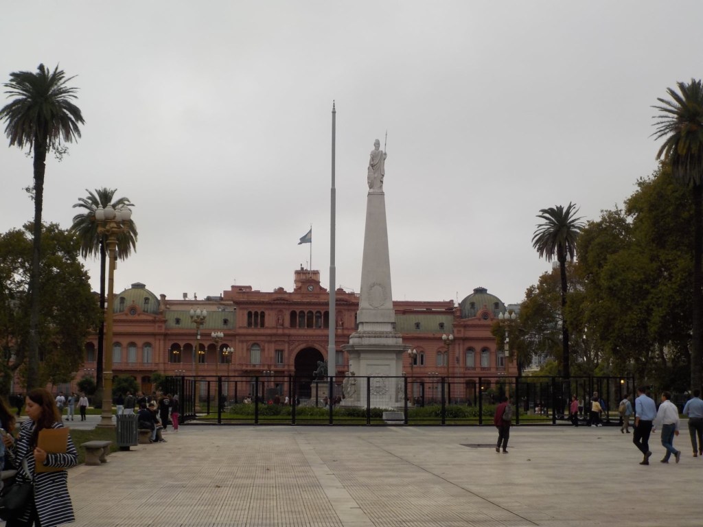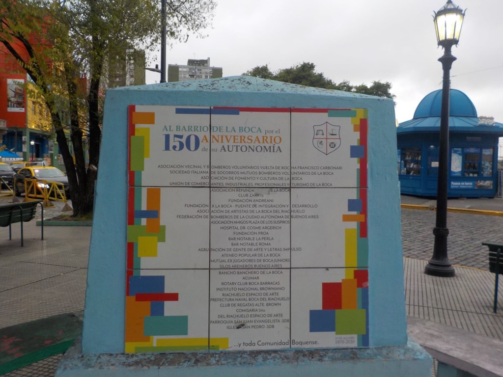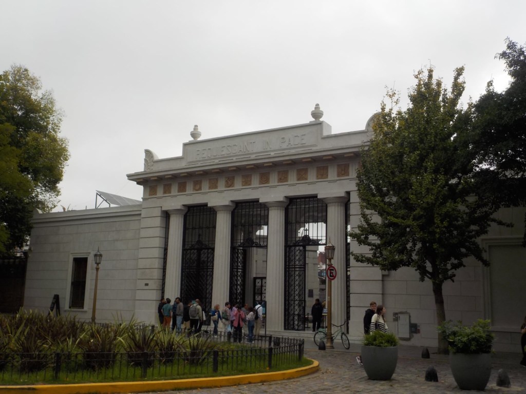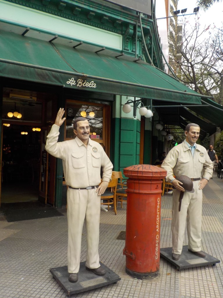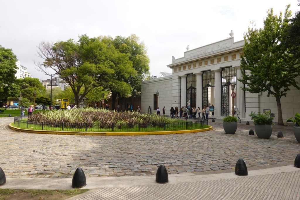 We walked back to the hotel taking more pictures of the beautiful pink flowers and large green fruit of the Silk Floss Tree – locally known as Palo Borracho (Ceiba speciosa). We just had enough time to charge the cameras and phones a bit more before we went downstairs to wait to be picked up for our tour. Gisela was our tour guide and we travelled in a small commuter bus and there were only 5 including us, a couple from Peru and a younger guy from Brazil. The tour was very informative and Gisela was very passionate and fluently switched between Spanish and English to explain all the sites and history. We stopped 6 times including at a large sculpture of a flower (Florales Genérica) made of 18 tons of steel which used to open and close but the mechanism is broken and can’t be fixed – so the flower is stuck half open. We stopped at the famous La Recoleta cementary and at the Basilica Nuestra Senora del Pilar. The next stop was at the plaza de Mayo with the cathedral and the pink Parliament House. We had time to walk around and go inside the cathedral where the mausoleum of the Argentinian father of the Nation, General José de San Martin, is guarded by two National guard grenadiers. Then we visited the La Boca part of town which is known for the colourful painted houses made of whatever material was available from the ship yard. The next stop was at a wine tasting place, followed by a stop in La Boca where all houses are colourful and put together from whatever was available from the nearby shipyards. It is also a place of street art, colourful murals honouring firefighters and lots of football paraphernalia and statues of Diego Maradona, Eva Perón, a famous tango dancer, Carlos Gardel, and the Argentinien pope Francis – an interesting combination 😂😉