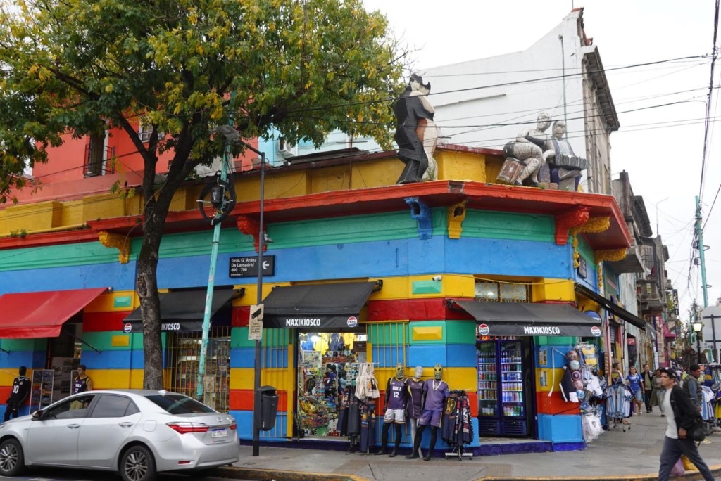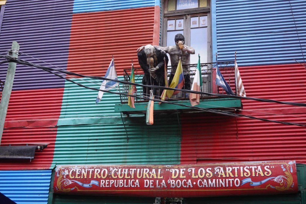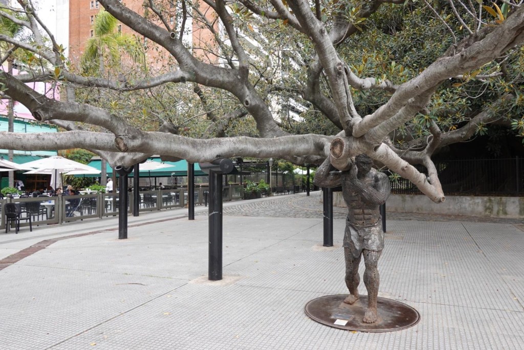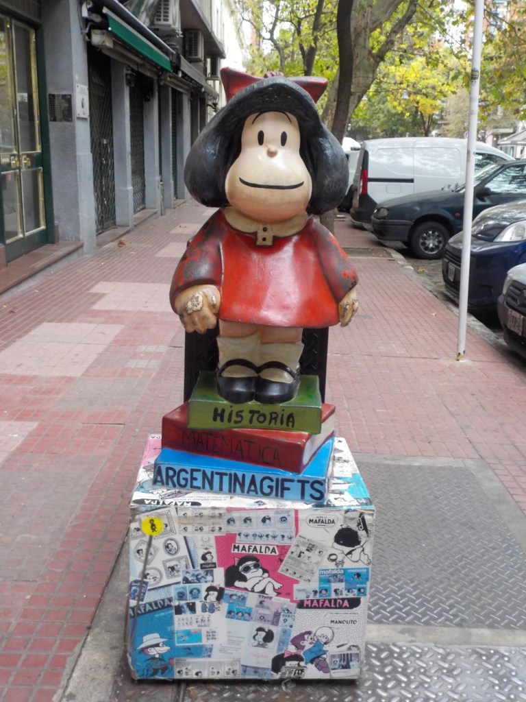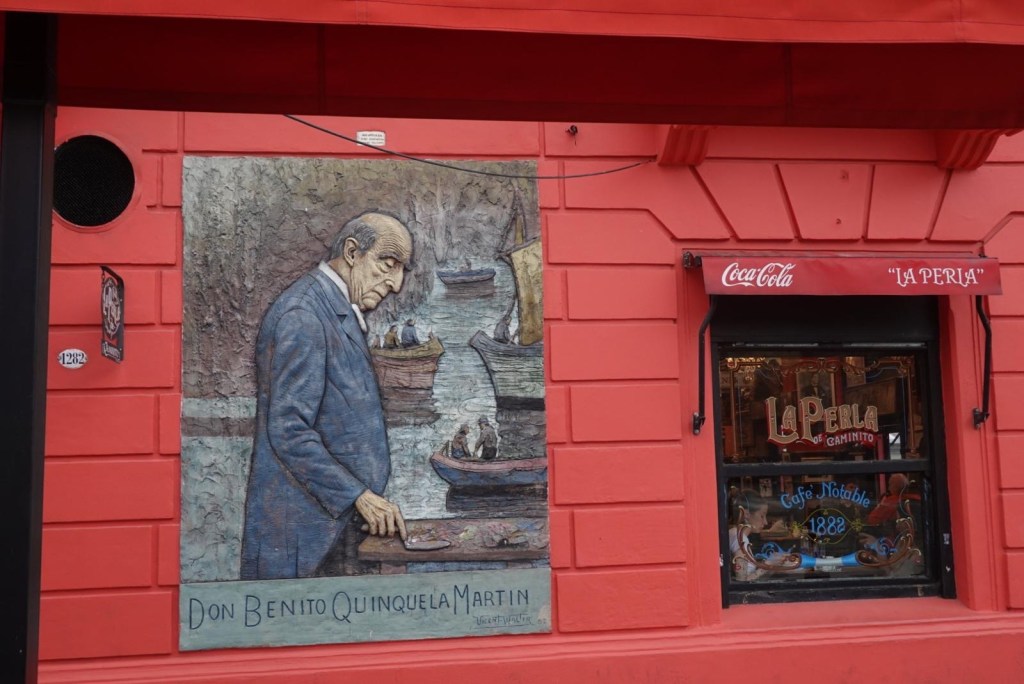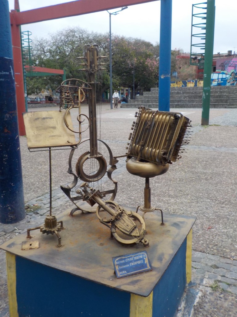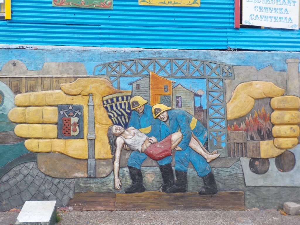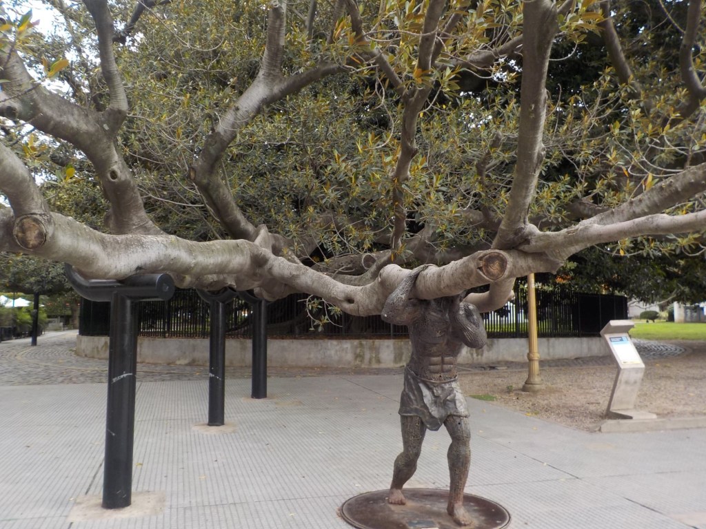 We walked back to the hotel taking more pictures of the beautiful pink flowers and large green fruit of the Silk Floss Tree – locally known as Palo Borracho (Ceiba speciosa). We just had enough time to charge the cameras and phones a bit more before we went downstairs to wait to be picked up for our tour. Gisela was our tour guide and we travelled in a small commuter bus and there were only 5 including us, a couple from Peru and a younger guy from Brazil. The tour was very informative and Gisela was very passionate and fluently switched between Spanish and English to explain all the sites and history. We stopped 6 times including at a large sculpture of a flower (Florales Genérica) made of 18 tons of steel which used to open and close but the mechanism is broken and can’t be fixed – so the flower is stuck half open. We stopped at the famous La Recoleta cementary and at the Basilica Nuestra Senora del Pilar. The next stop was at the plaza de Mayo with the cathedral and the pink Parliament House. We had time to walk around and go inside the cathedral where the mausoleum of the Argentinian father of the Nation, General José de San Martin, is guarded by two National guard grenadiers. Then we visited the La Boca part of town which is known for the colourful painted houses made of whatever material was available from the ship yard. The next stop was at a wine tasting place, followed by a stop in La Boca where all houses are colourful and put together from whatever was available from the nearby shipyards. It is also a place of street art, colourful murals honouring firefighters and lots of football paraphernalia and statues of Diego Maradona, Eva Perón, a famous tango dancer, Carlos Gardel, and the Argentinien pope Francis – an interesting combination 😂😉