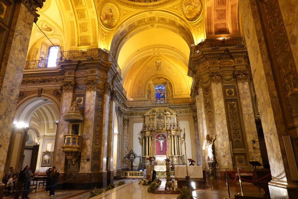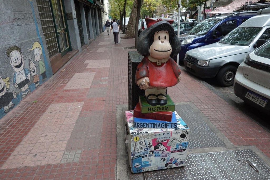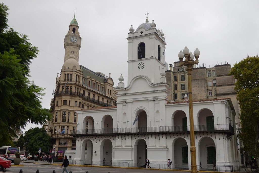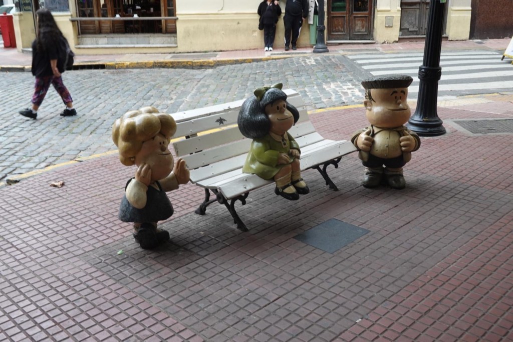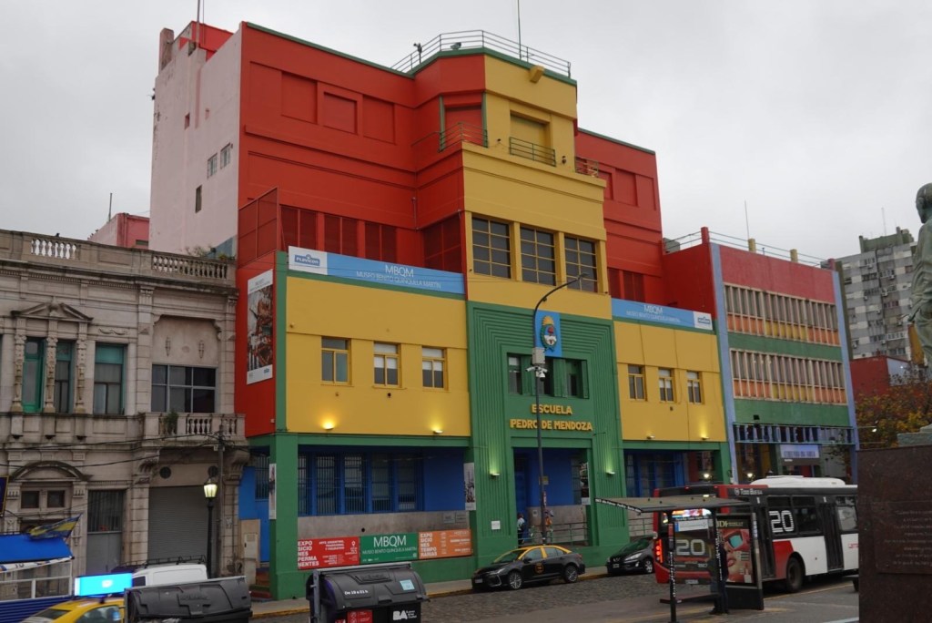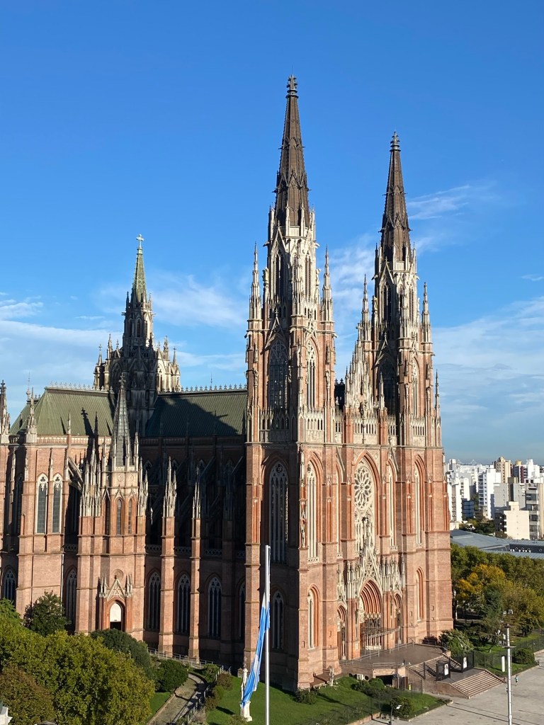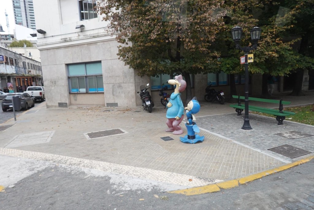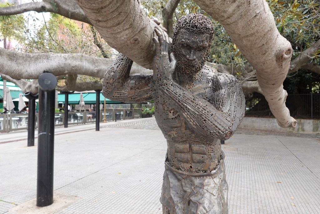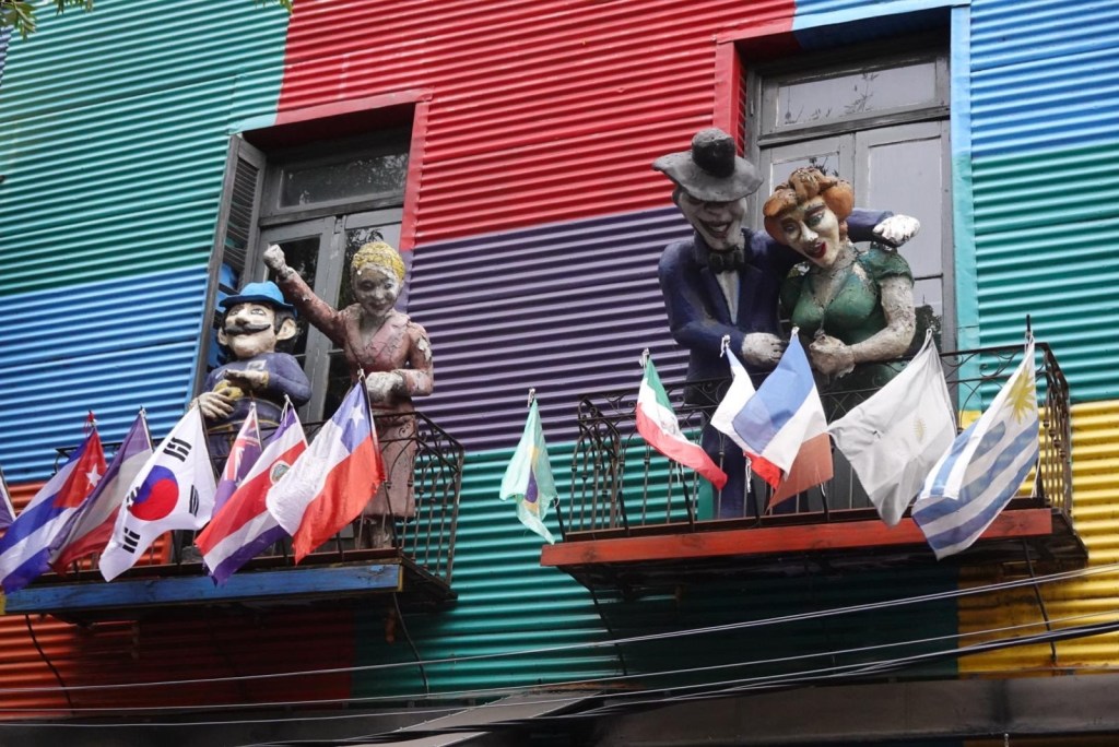 We walked back to the hotel taking more pictures of the beautiful pink flowers and large green fruit of the Silk Floss Tree – locally known as Palo Borracho (Ceiba speciosa). We just had enough time to charge the cameras and phones a bit more before we went downstairs to wait to be picked up for our tour. Gisela was our tour guide and we travelled in a small commuter bus and there were only 5 including us, a couple from Peru and a younger guy from Brazil. The tour was very informative and Gisela was very passionate and fluently switched between Spanish and English to explain all the sites and history. We stopped 6 times including at a large sculpture of a flower (Florales Genérica) made of 18 tons of steel which used to open and close but the mechanism is broken and can’t be fixed – so the flower is stuck half open. We stopped at the famous La Recoleta cementary and at the Basilica Nuestra Senora del Pilar. The next stop was at the plaza de Mayo with the cathedral and the pink Parliament House. We had time to walk around and go inside the cathedral where the mausoleum of the Argentinian father of the Nation, General José de San Martin, is guarded by two National guard grenadiers. Then we visited the La Boca part of town which is known for the colourful painted houses made of whatever material was available from the ship yard. The next stop was at a wine tasting place, followed by a stop in La Boca where all houses are colourful and put together from whatever was available from the nearby shipyards. It is also a place of street art, colourful murals honouring firefighters and lots of football paraphernalia and statues of Diego Maradona, Eva Perón, a famous tango dancer, Carlos Gardel, and the Argentinien pope Francis – an interesting combination 😂😉