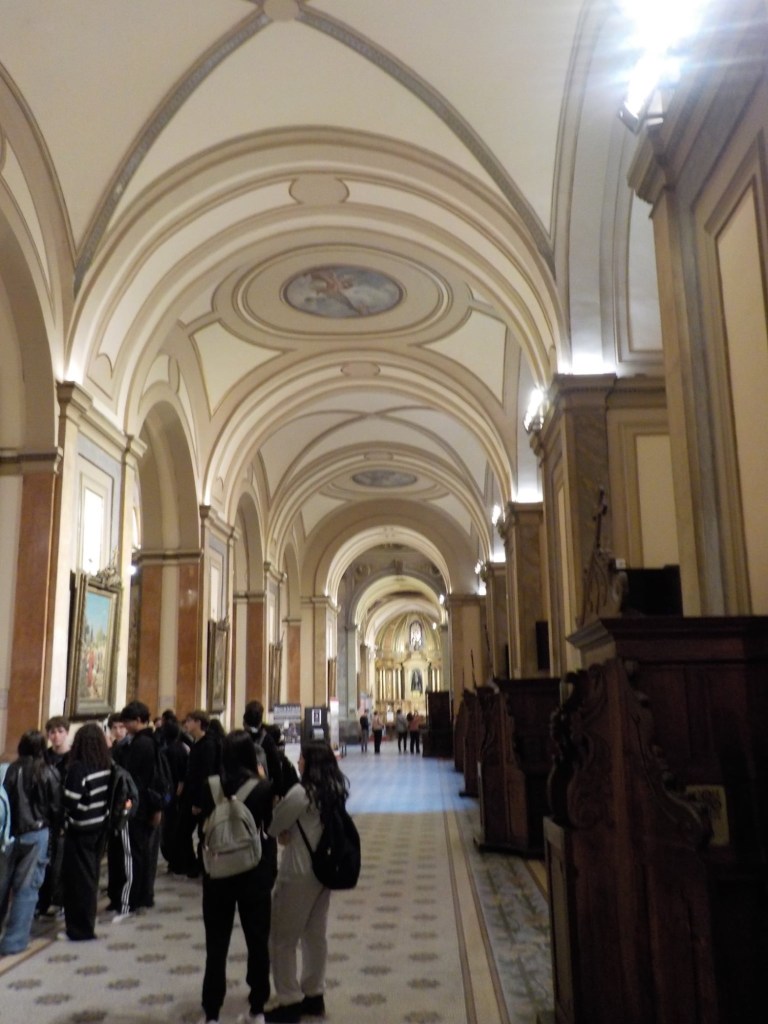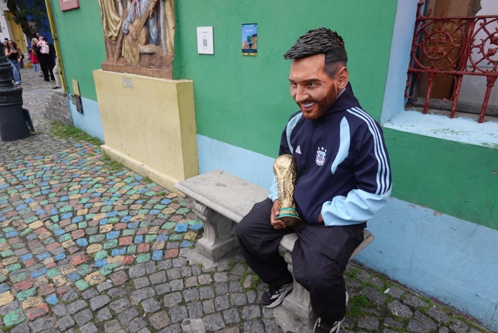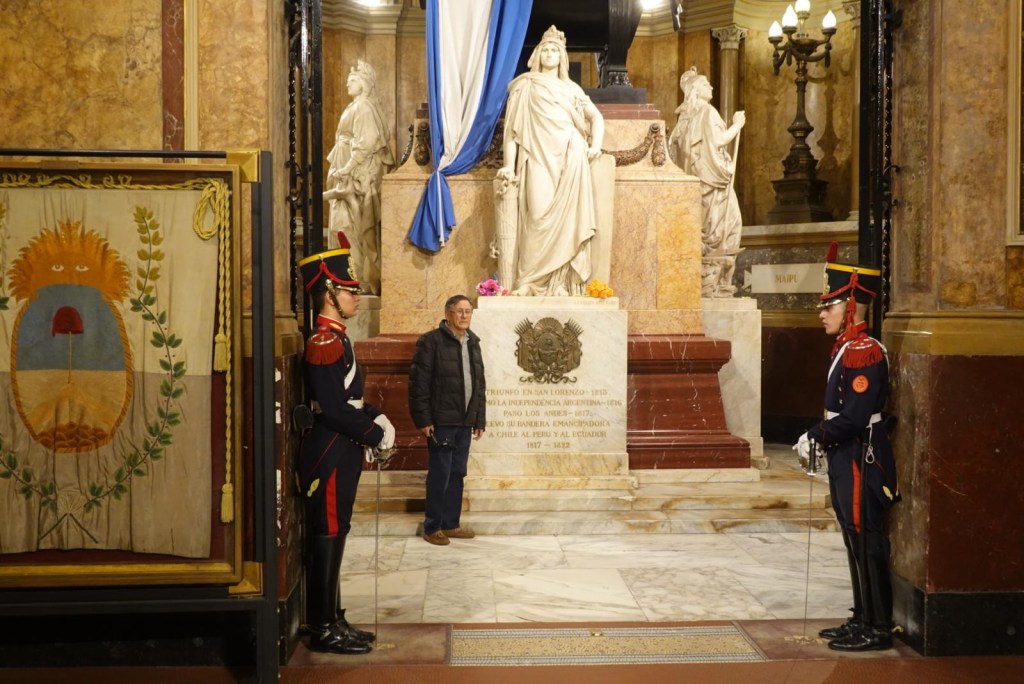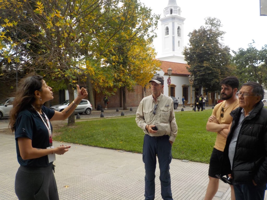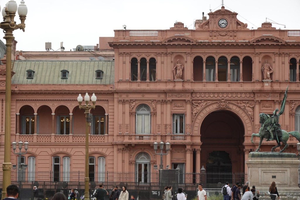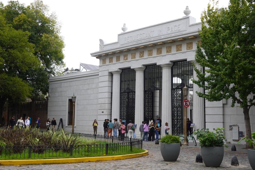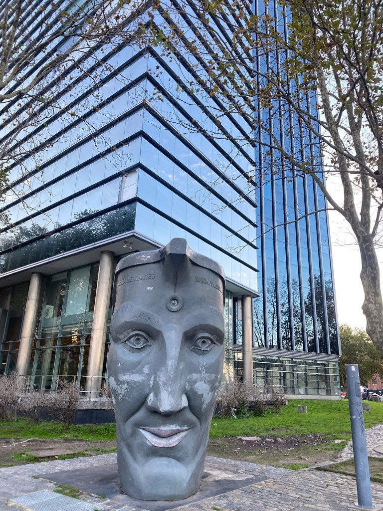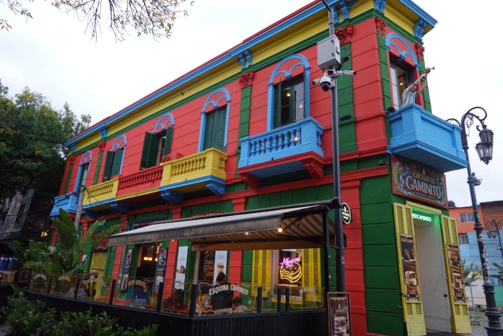 We walked back to the hotel taking more pictures of the beautiful pink flowers and large green fruit of the Silk Floss Tree – locally known as Palo Borracho (Ceiba speciosa). We just had enough time to charge the cameras and phones a bit more before we went downstairs to wait to be picked up for our tour. Gisela was our tour guide and we travelled in a small commuter bus and there were only 5 including us, a couple from Peru and a younger guy from Brazil. The tour was very informative and Gisela was very passionate and fluently switched between Spanish and English to explain all the sites and history. We stopped 6 times including at a large sculpture of a flower (Florales Genérica) made of 18 tons of steel which used to open and close but the mechanism is broken and can’t be fixed – so the flower is stuck half open. We stopped at the famous La Recoleta cementary and at the Basilica Nuestra Senora del Pilar. The next stop was at the plaza de Mayo with the cathedral and the pink Parliament House. We had time to walk around and go inside the cathedral where the mausoleum of the Argentinian father of the Nation, General José de San Martin, is guarded by two National guard grenadiers. Then we visited the La Boca part of town which is known for the colourful painted houses made of whatever material was available from the ship yard. The next stop was at a wine tasting place, followed by a stop in La Boca where all houses are colourful and put together from whatever was available from the nearby shipyards. It is also a place of street art, colourful murals honouring firefighters and lots of football paraphernalia and statues of Diego Maradona, Eva Perón, a famous tango dancer, Carlos Gardel, and the Argentinien pope Francis – an interesting combination 😂😉