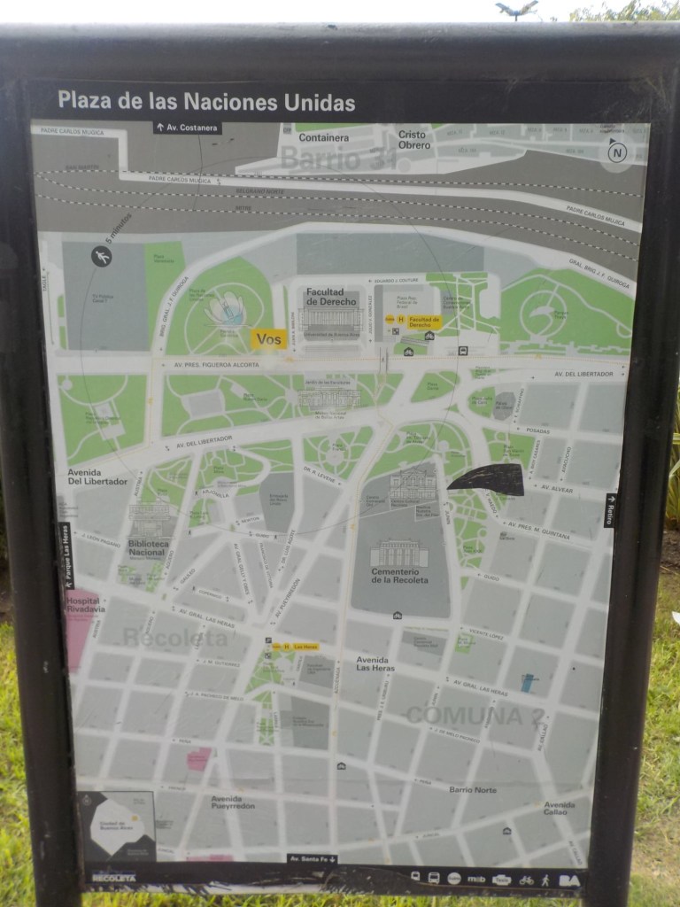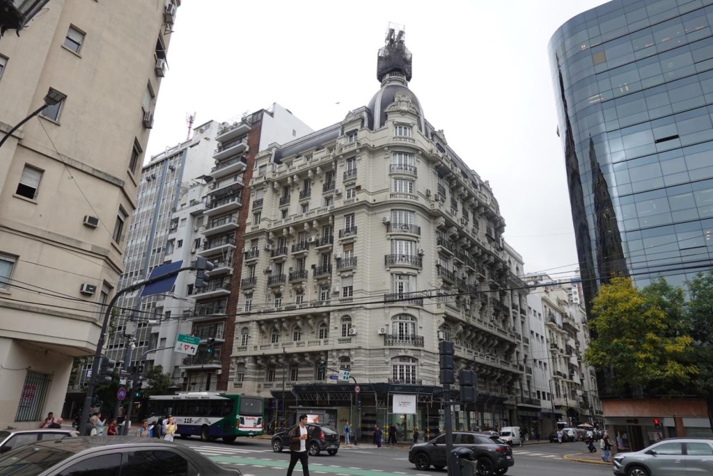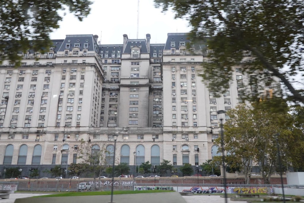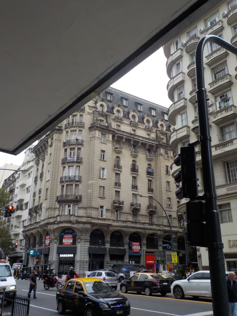 We left at 2:30pm and took the toll road motorway number 1 into Buenos Aires. It was quick and safe (we had been warned not to enter on the backroads from the South) but we did see some very poor neighbourhoods with just shacks near the freeway. We arrived from the water front and rode past some beautiful buildings and through narrow roads to where Google maps said to park and walk to the hotel as it was in a pedestrian zone. Luckily we arrived on a Sunday as the streets were very quiet compared to the busy weekdays. Andrew stayed with the bikes and I walked to the hotel – they told us to ride through the pedestrian zone and into the parking garage. We parked right next to the elevator and then checked in – we got a room on the 7th floor and unloaded the bikes and then booked a guided 4 hour city tour for the next day at reception. We also got a 10% discount voucher for dinner at a restaurant down the street. We walked to the waterfront and to the buquebus terminal where a ferry had just arrived and was being loaded – we asked a few people to work out where we would have to go on Tuesday when we are booked in on the ferry to Montevideo. After we had a better idea of the layout and procedure of check in and customs clearance, we returned to the hotel and ate at the recommended restaurant which had German dishes and several code of arms of German districts on the wall. Andrew ate Schnitzel and Apple strudel for desert 🙂