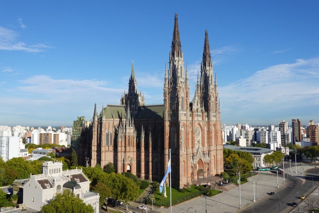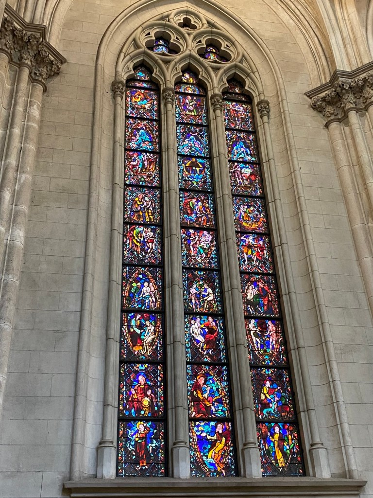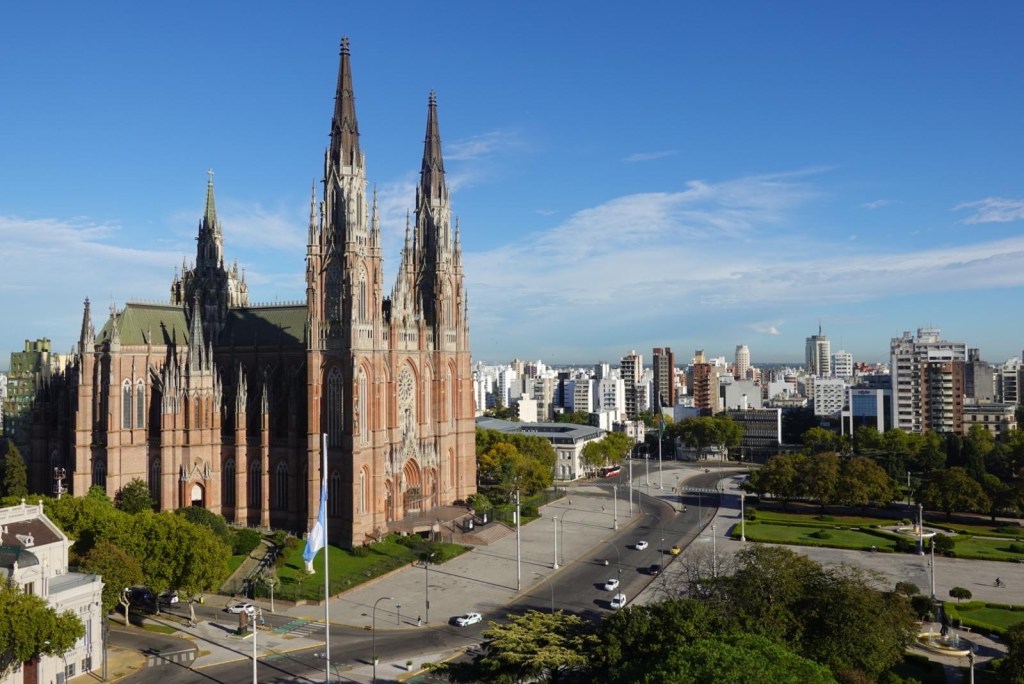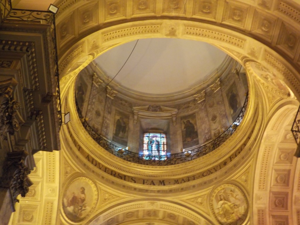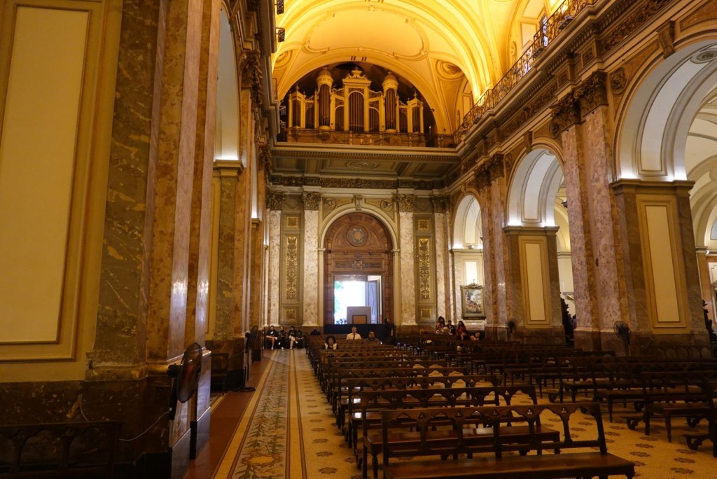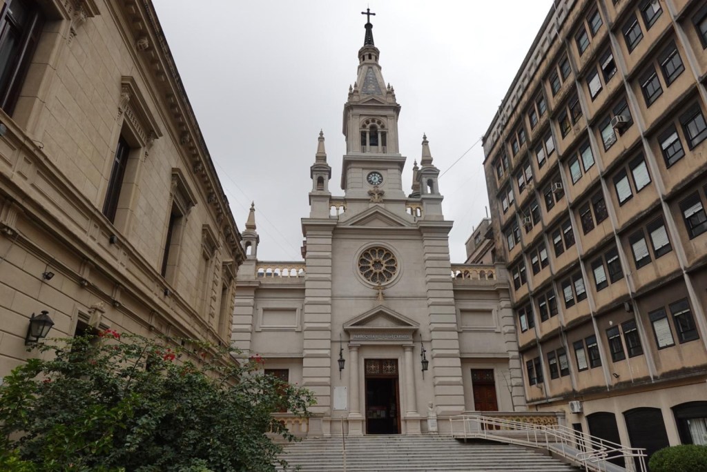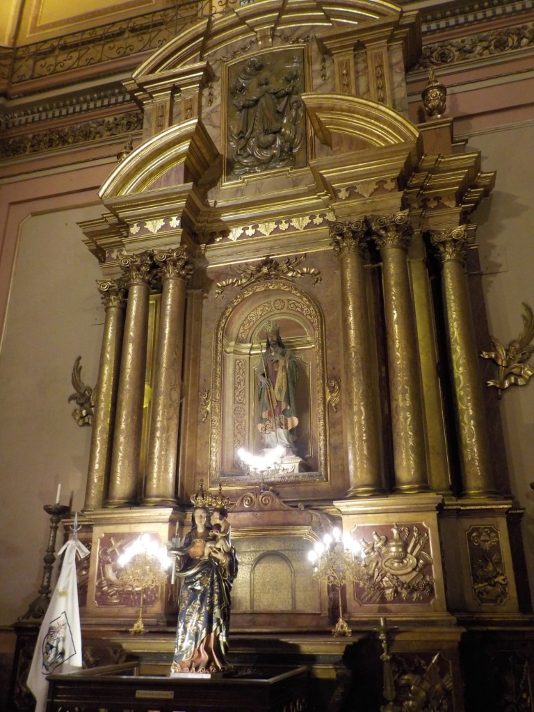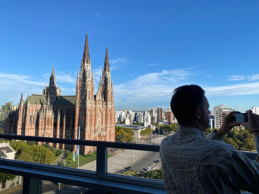 We had breakfast on the roof top terrace and the cathedral and plaza looked even more impressive in daylight. We went to the front desk to confirm that we could have a late checkout at noon but it was a different person at the desk and he said we had to be out by 11:00am – so we had 45 minutes to quickly dash across the road and go inside the cathedral which had been locked in the evening the day before to take some pictures as we had noted at breakfast that the gates were open. When we entered the church, Sunday mass was in progress and we stayed until after communion before returning to the hotel – we could not get any pictures during mass from the inside of the church except of one of the glass stained windows on our way out. We hurried back to the hotel and checked out and loaded our bikes and headed to the beach at Punta Lara.