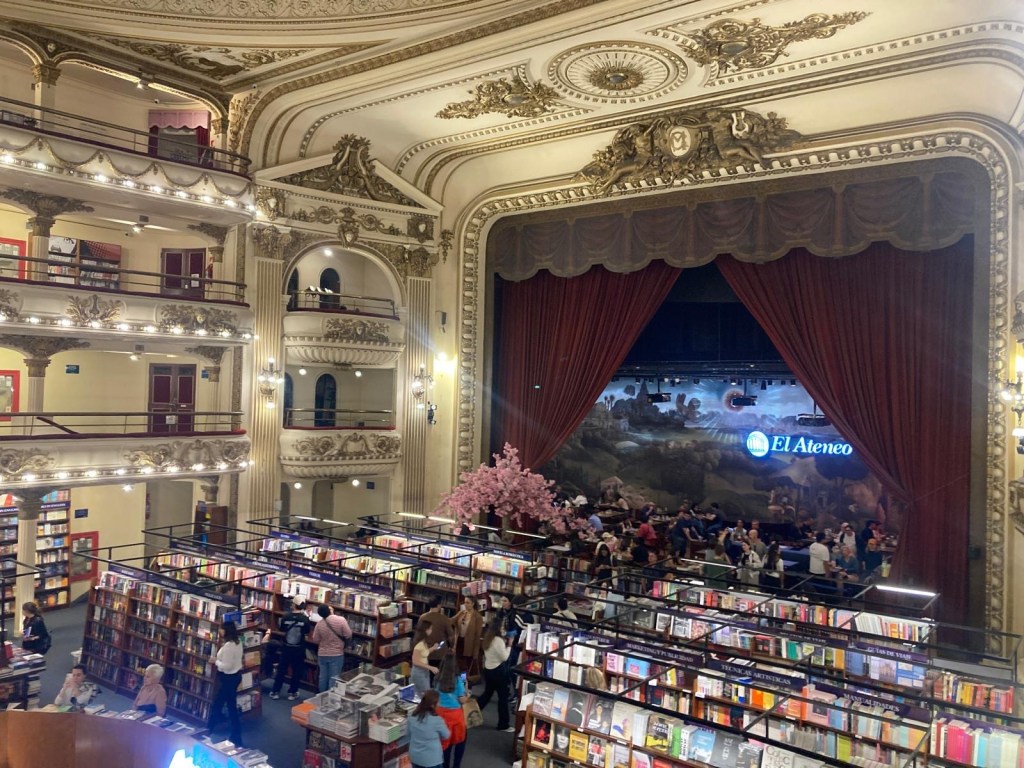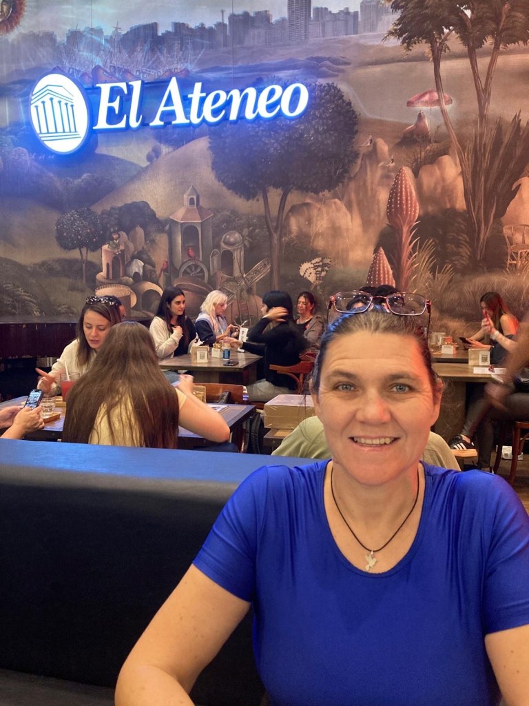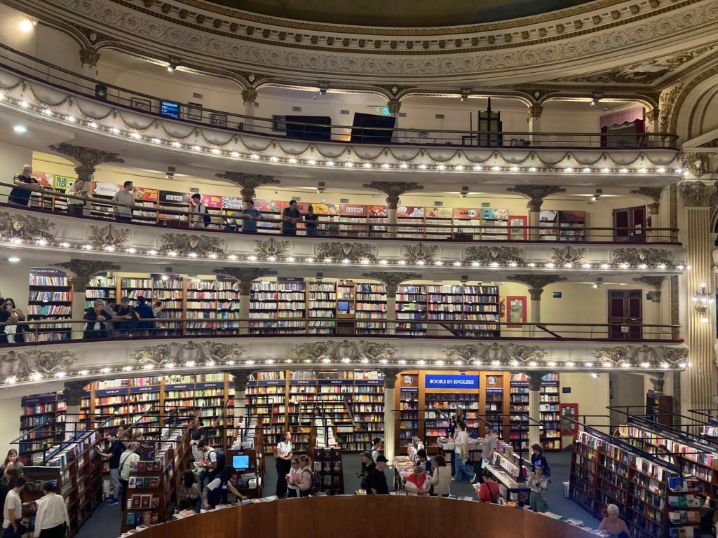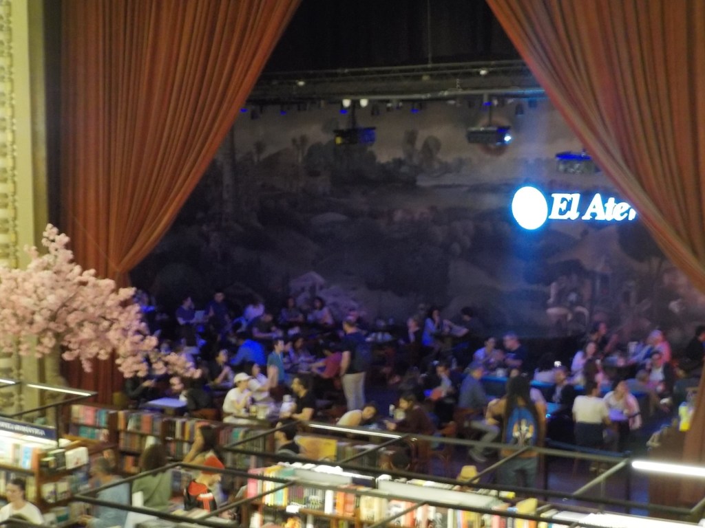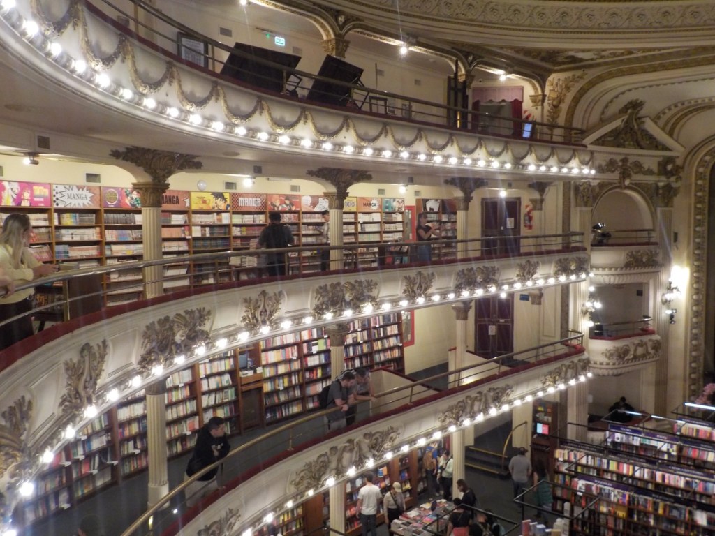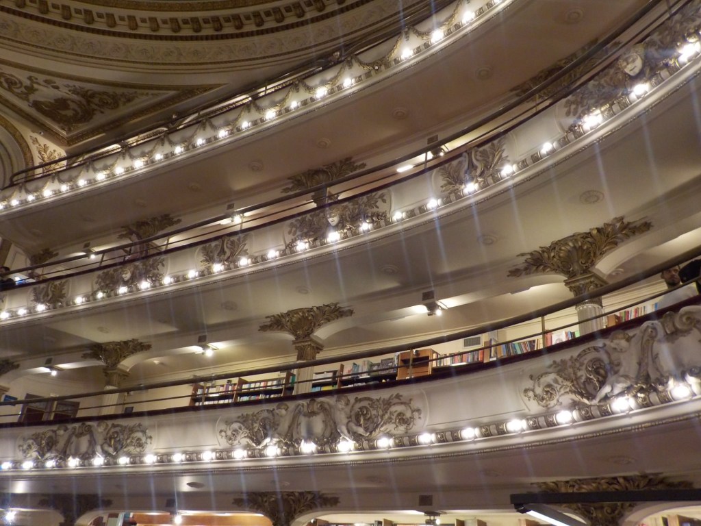 The next morning we had fabulous breakfast at the hotel and then we walked 2.4km through town and many nice parks to El Ateneo Grand Splendid which is an old theatre converted to a bookstore – it is magnificent inside and the stage is a coffee shop where we had very nice coffee and hot chocolate and lemon merengue cake. We bought some maps of South America and of Montevideo.