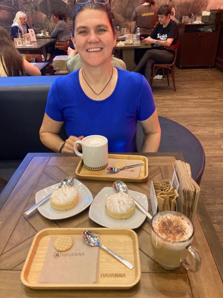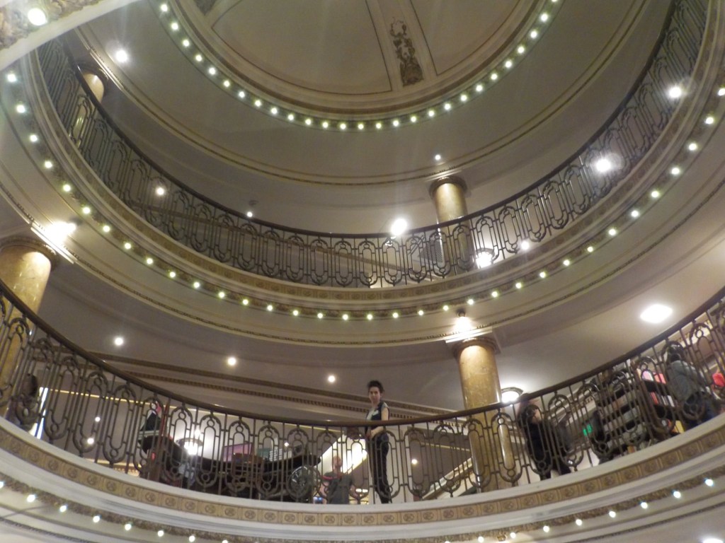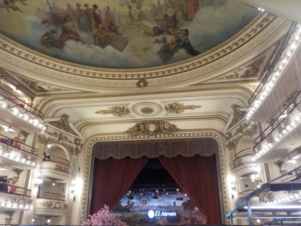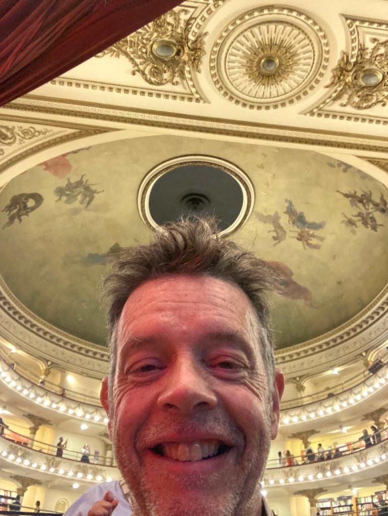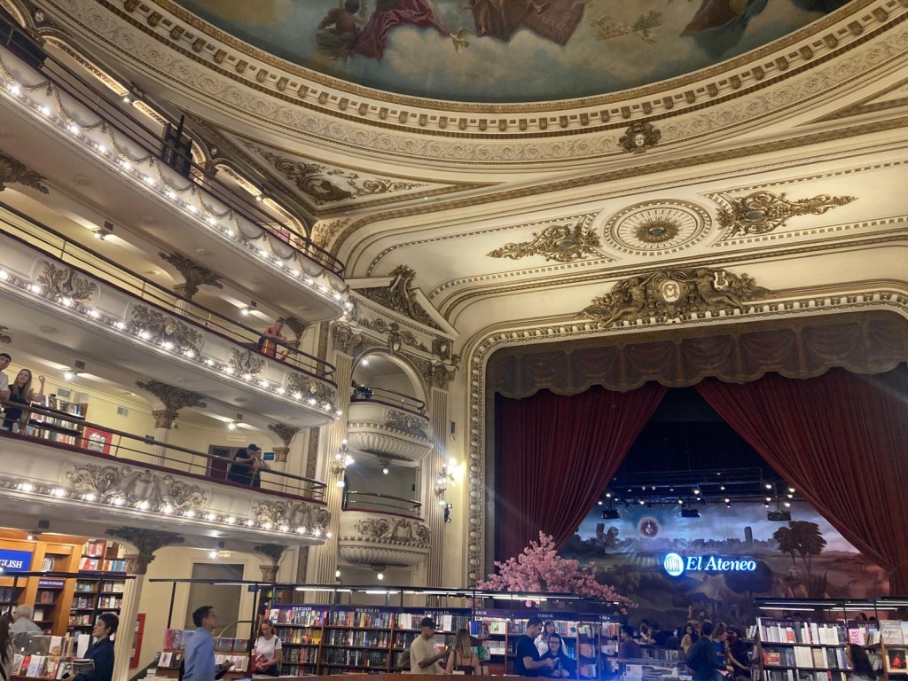 The next morning we had fabulous breakfast at the hotel and then we walked 2.4km through town and many nice parks to El Ateneo Grand Splendid which is an old theatre converted to a bookstore – it is magnificent inside and the stage is a coffee shop where we had very nice coffee and hot chocolate and lemon merengue cake. We bought some maps of South America and of Montevideo.