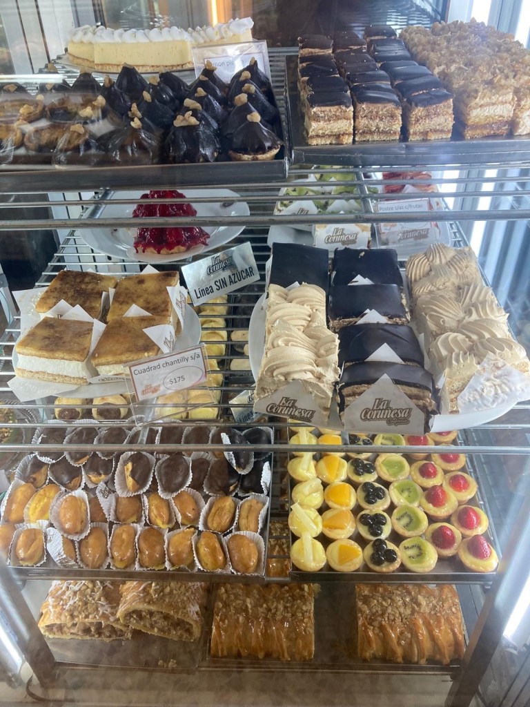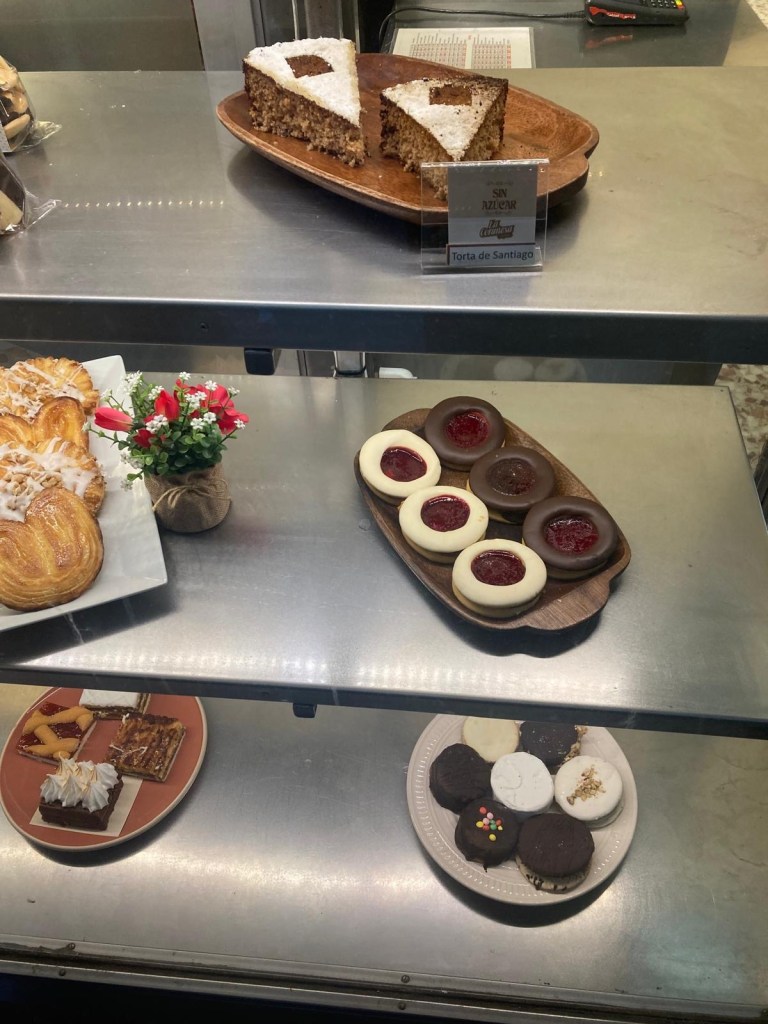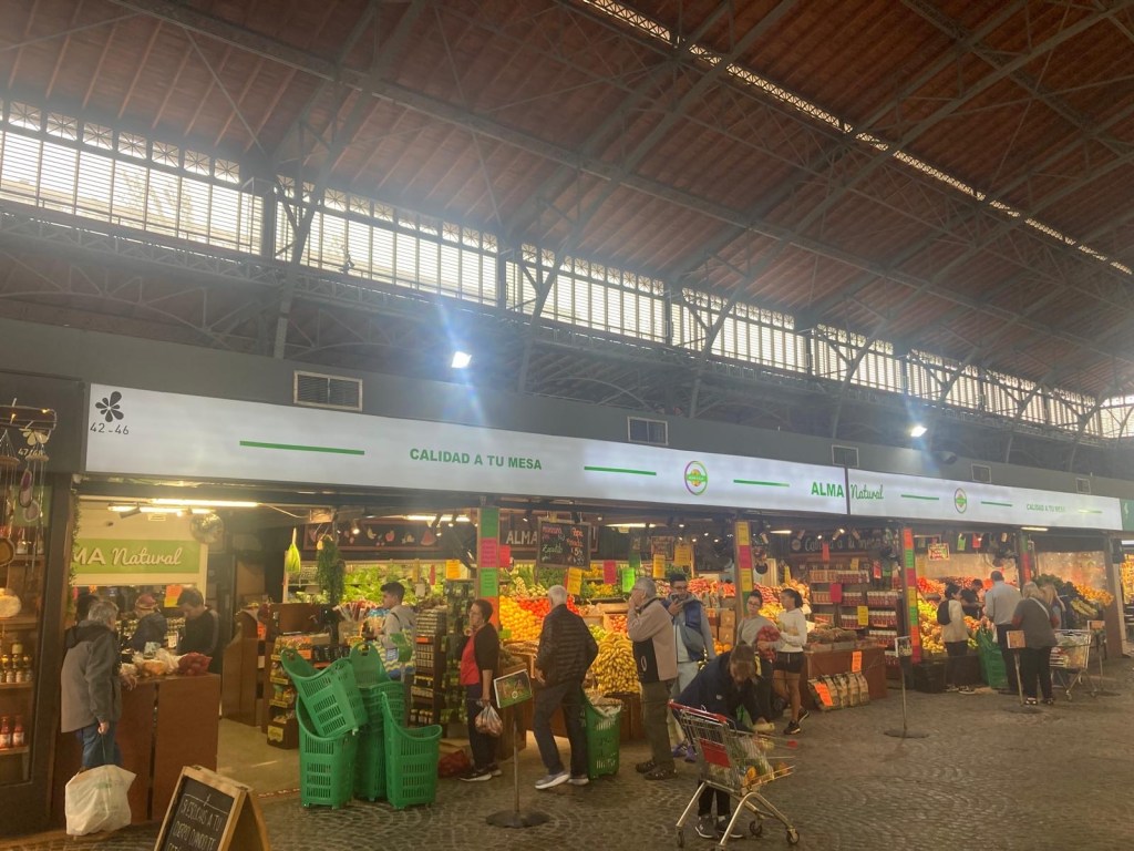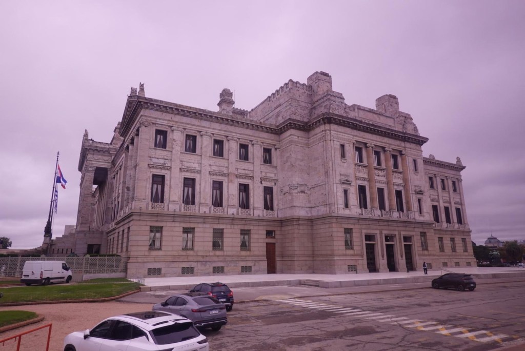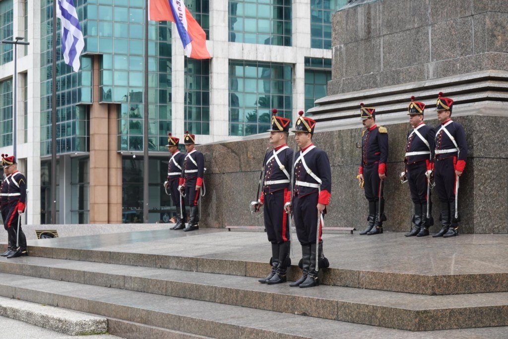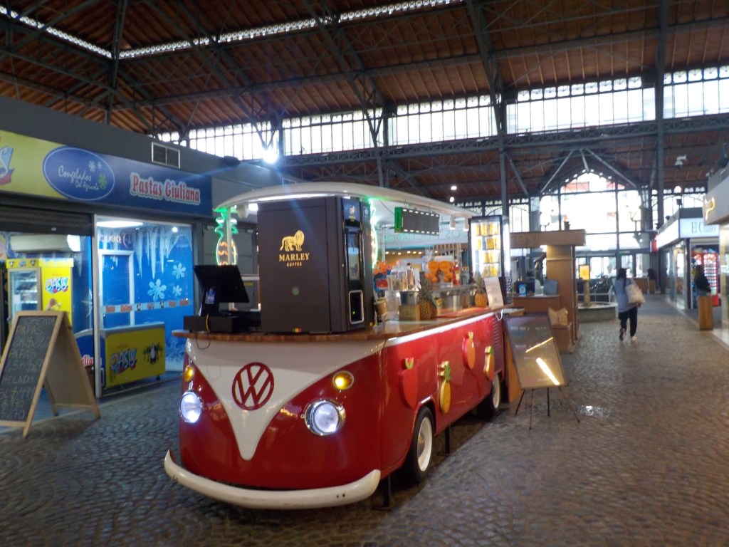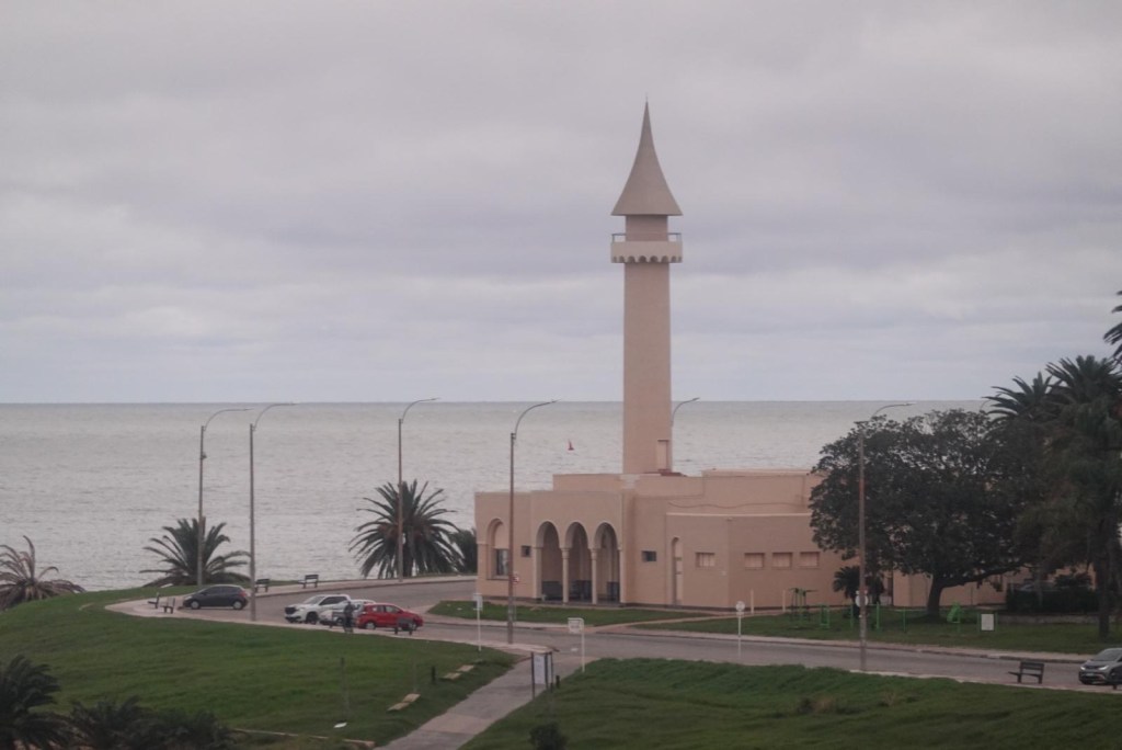It was an overcast gray cloudy day and we walked to the ferry terminal where we were shown to our tour bus – a big Scania tourist coach with wifi on the bus – and our tour guide told us to scan a QR code and choose our 3 courses for lunch while waiting for the other 18 guests to arrive. They were a tour group from Serbia with their own tour guide who translated everything the guide said into Serbian – most of which I understood from my childhood days holidaying in former Yugoslavia – and then repeated it in better English than our Uruguayan tour guide. We took off and our first stop was the main plaza (Plaza Independencia) with the iconic building (Palacio Salvo) designed by the Italian immigrant Mario Palanti) which is the main landmark of Montevideo – it nowadays has offices and apartments and apparently the famous tango “La cumparsita” was first performed in a cafe on the corner in that building. On the Plaza Independencia is a statue of the Uruguayan hero, Josė Artigas, on horse and in front of it were the ceremonial guard was practising walking and taking stairs synchronised. The surrounding buildings on the plaza are a mix of modern glass fronts, older European style buildings with ornate facades and some very run down concrete high risers – very stark contrasts right at the main square and as we noticed everywhere else too. Our second stop was a market to go shopping – apparently most people come across from Argentina on the ferry to go shopping tax free and return on the same day. When we stopped, the building I saw looked like an abandoned place and I wondered whether that was the most worthwhile things to show off on a city tour 🤔 but the actual market place we were ushered into was on the opposite side of the street in a renovated market hall. We had quite some time to walk around and ended up buying another packet of cereal in a health store and coloured marker pens to start tracing our trip on a map. From there we returned back to the ferry terminal for lunch in the cafe del puerto canteen which turned out to be a very nice place and the food was delicious with 3 courses each with manageable portions and not too big.
