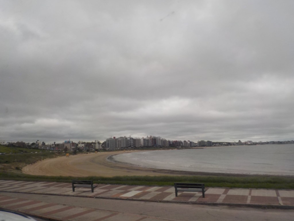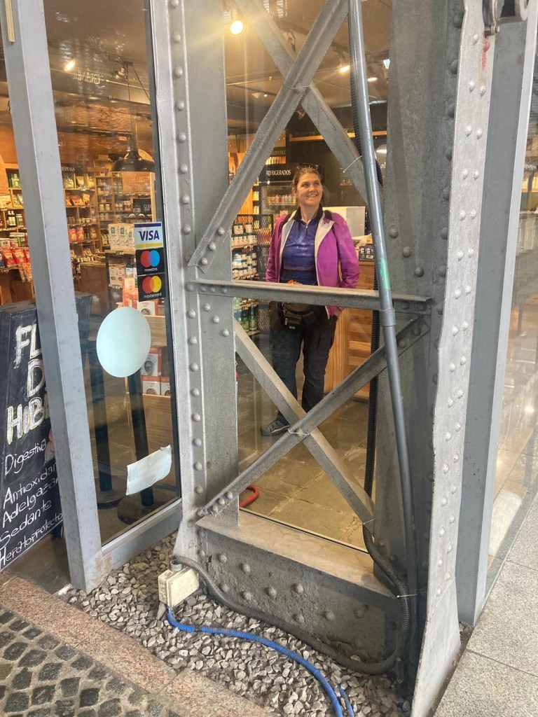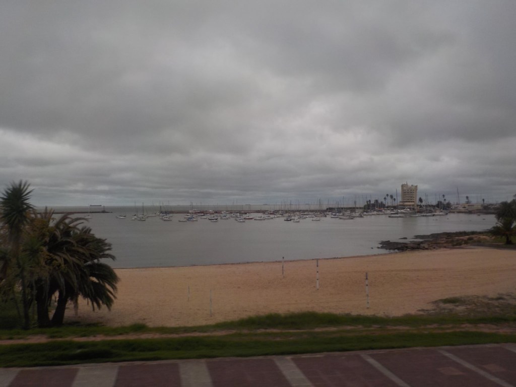 I messaged our host that we would be at the apartments in 10 minutes and was told that Helen would meet us there to show us in. We rode on very wet roads and had to do a sharp right turn at an intersection where the road was flooded – I moved slowly and had to find the shallowest section to ride through safely when a taxi passed me on the right side (even though I had my right indicator on which was working 👍) just as I was about to turn right and he sprayed me with water that I was totally saturated up to my hip – thanks for the wet welcome to Montevideo 😂😳 but at least I did not get taken out by him while turning. A few minutes later we arrived at the apartments and a young girl let us into the parking garage. She then showed us to our apartment on the 4th floor and explained all the keys and she said we could pay the next day.