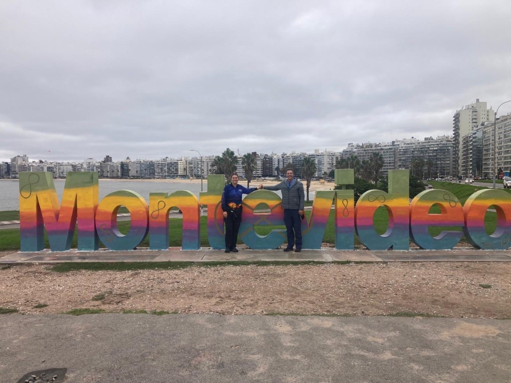 Next stop was the Carrera Monument, a bronze sculpture of a traditional cart pulled by oxen. After that we rode along the foreshore to the colourful Montevideo sign and took pictures there. There is a row of tall high rise buildings including some very expensive ones and some looked really run down – the stark contrasts again. According to our tour guide though only 10% of the population of Uruguay is living in poverty, 10% is wealthy and 80% are middle class 🤔
