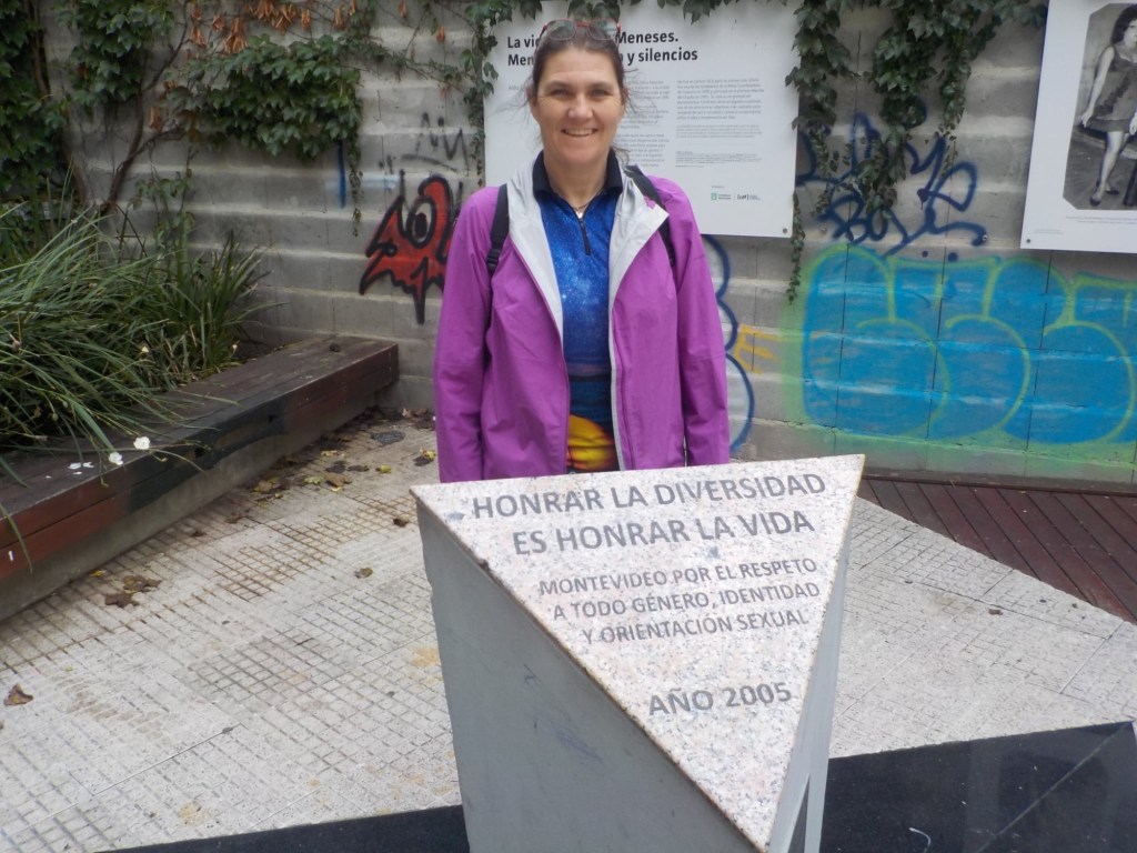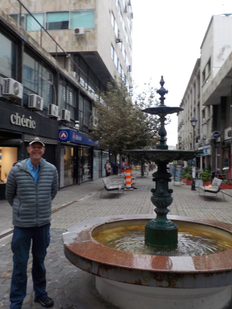 We then had a stop in the Hilton hotel for coffee and were then supposed to have 1.5 hours for shopping at a shopping mall. The Serbian group did not want to go shopping and we were asked if we were ok with going to the main plaza and strolling around the old part of town instead which we also preferred so we went and stopped at the main theatre ( Teatro solid) and then walked through the old part of town and stopped in a book shop, where I bought a new sudoku book and looked at an art gallery where Andrew liked an oil painting of a gaucho on his horse with sheep and a cattle dog that reminded Andrew of Australia. We also found a back street with a little place celebrating and honouring sexual diversity.